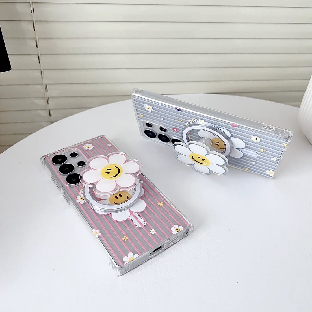 Bring a touch of happiness wherever you go with the Striped Sunshine Daisy Case! Featuring a playful pastel stripe design and an adorable 3D smiley daisy pop socket, this case is the perfect mix of cute, cheerful, and protective. Whether you choose blush pink or sky blue, it’s sure to brighten your day and your phone!