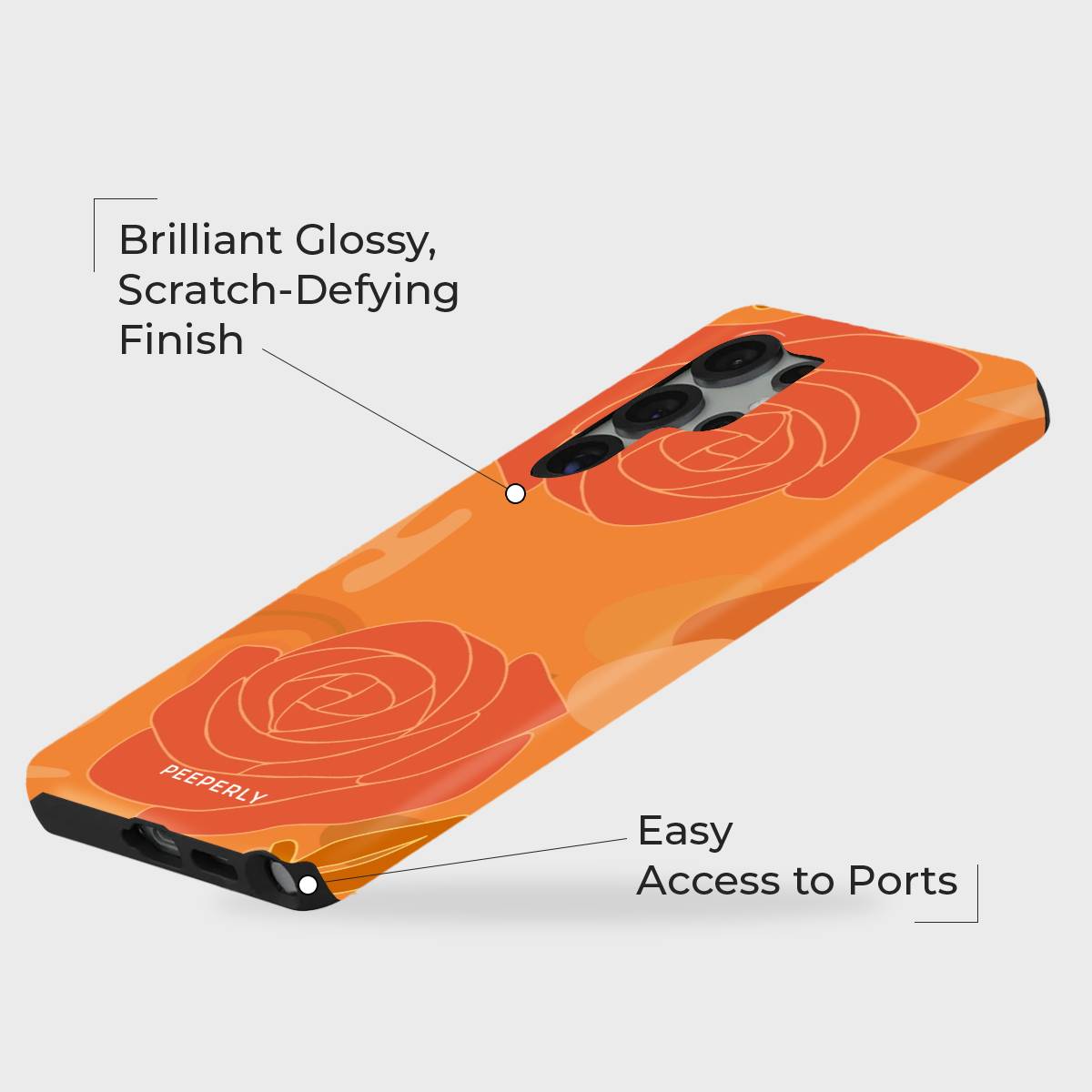 Soft, radiant, and effortlessly charming — Sunkissed Rose is where floral elegance meets golden warmth. With delicate rose outlines blooming across a rich orange backdrop, this case captures the glow of petals bathed in afternoon sunlight.