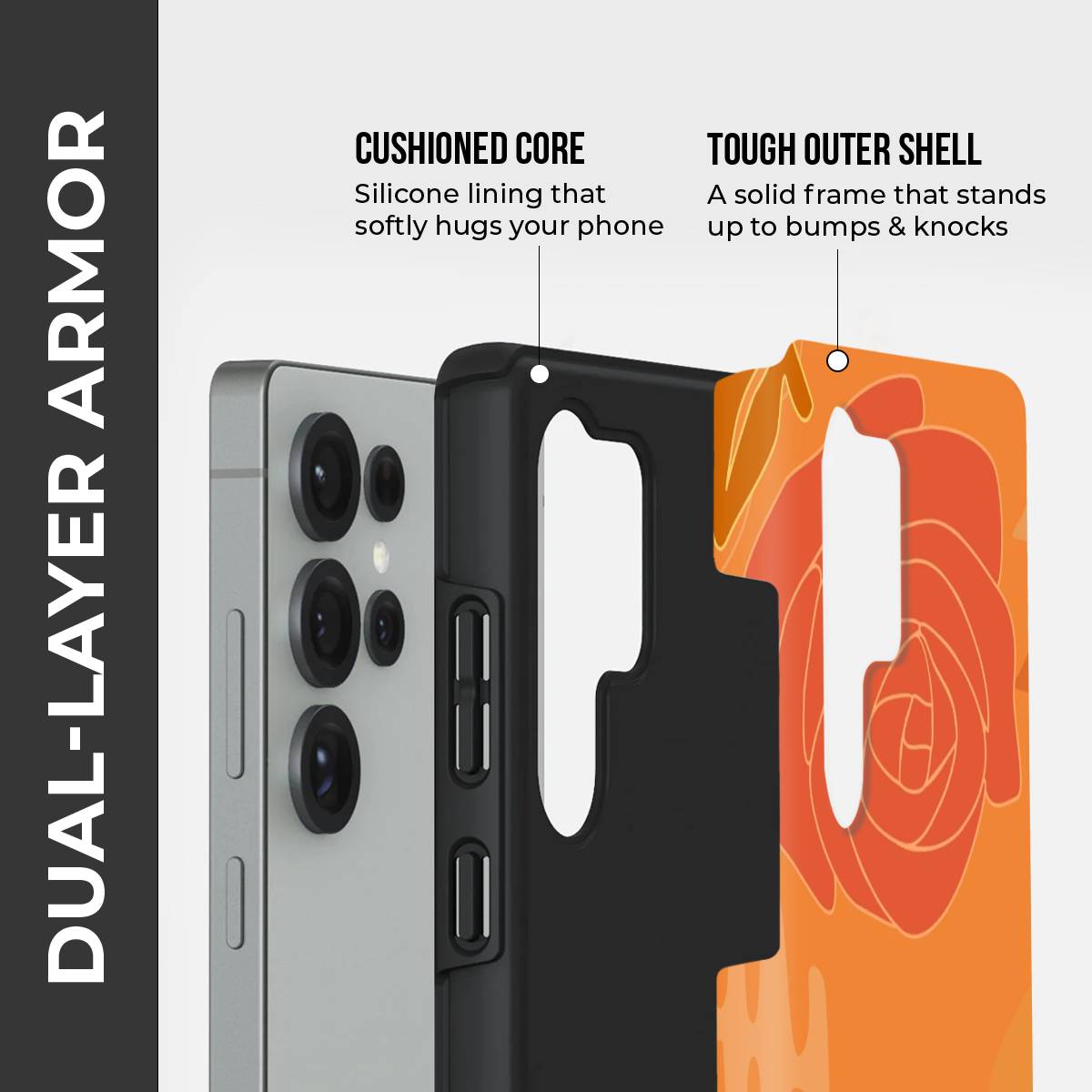 • Double-Layer Protection: Silicon interior cushions impacts + rigid PC exterior shields against drops and scratches.