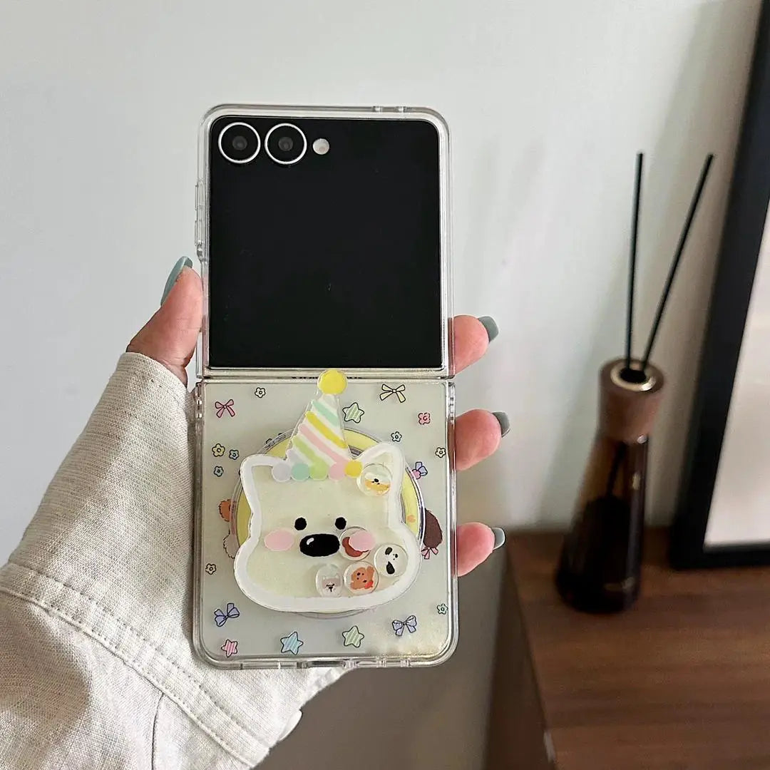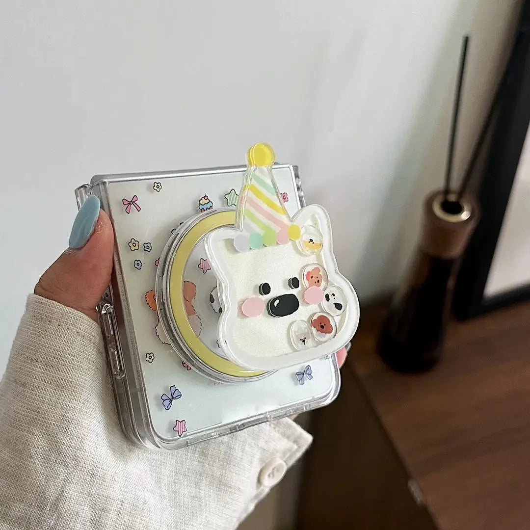 - Adorable 3D Design: Features a cute bear wearing a pastel party hat surrounded by playful doodles — perfect for adding personality to your phone.