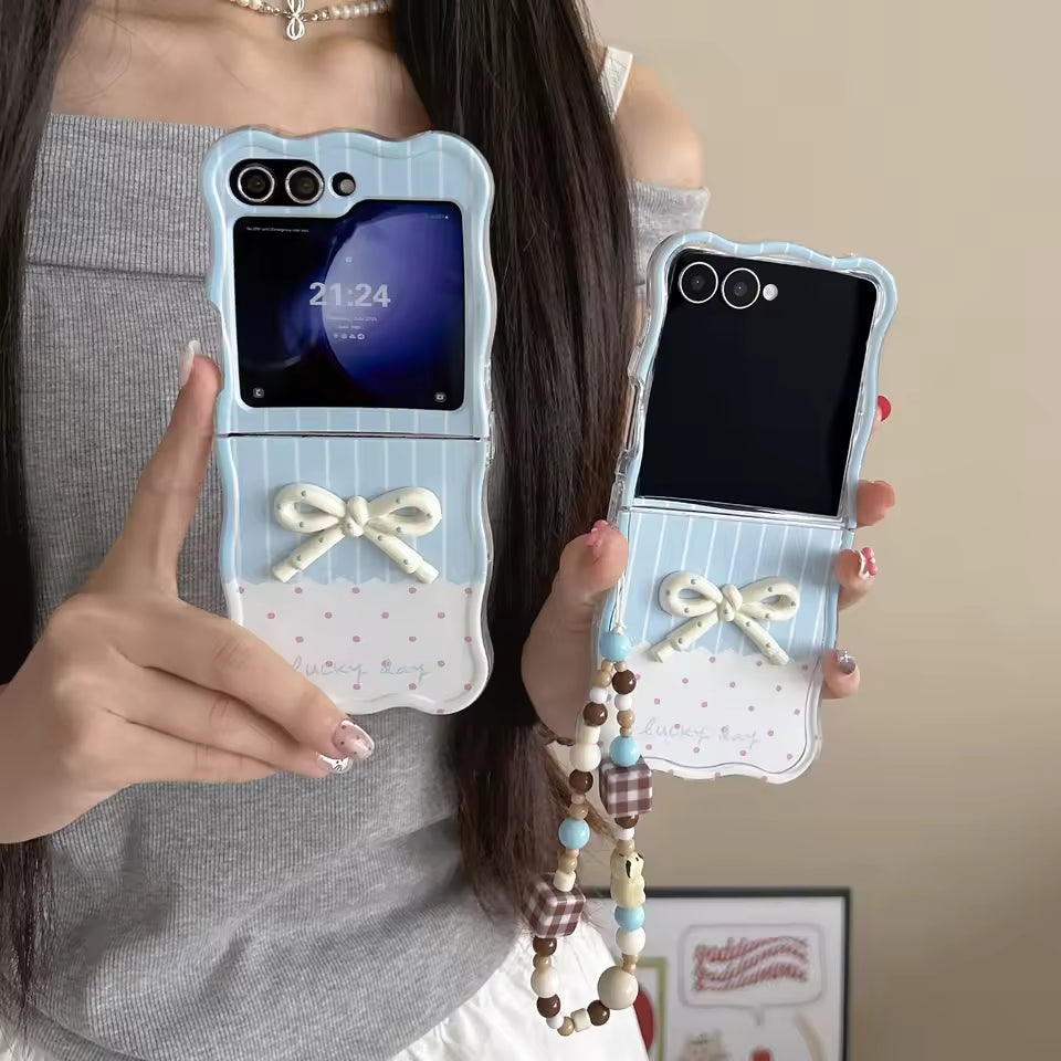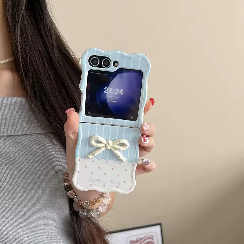 - Charming Design: Features a pastel blue striped pattern with a 3D bow accent — sweet, elegant, and perfectly feminine.