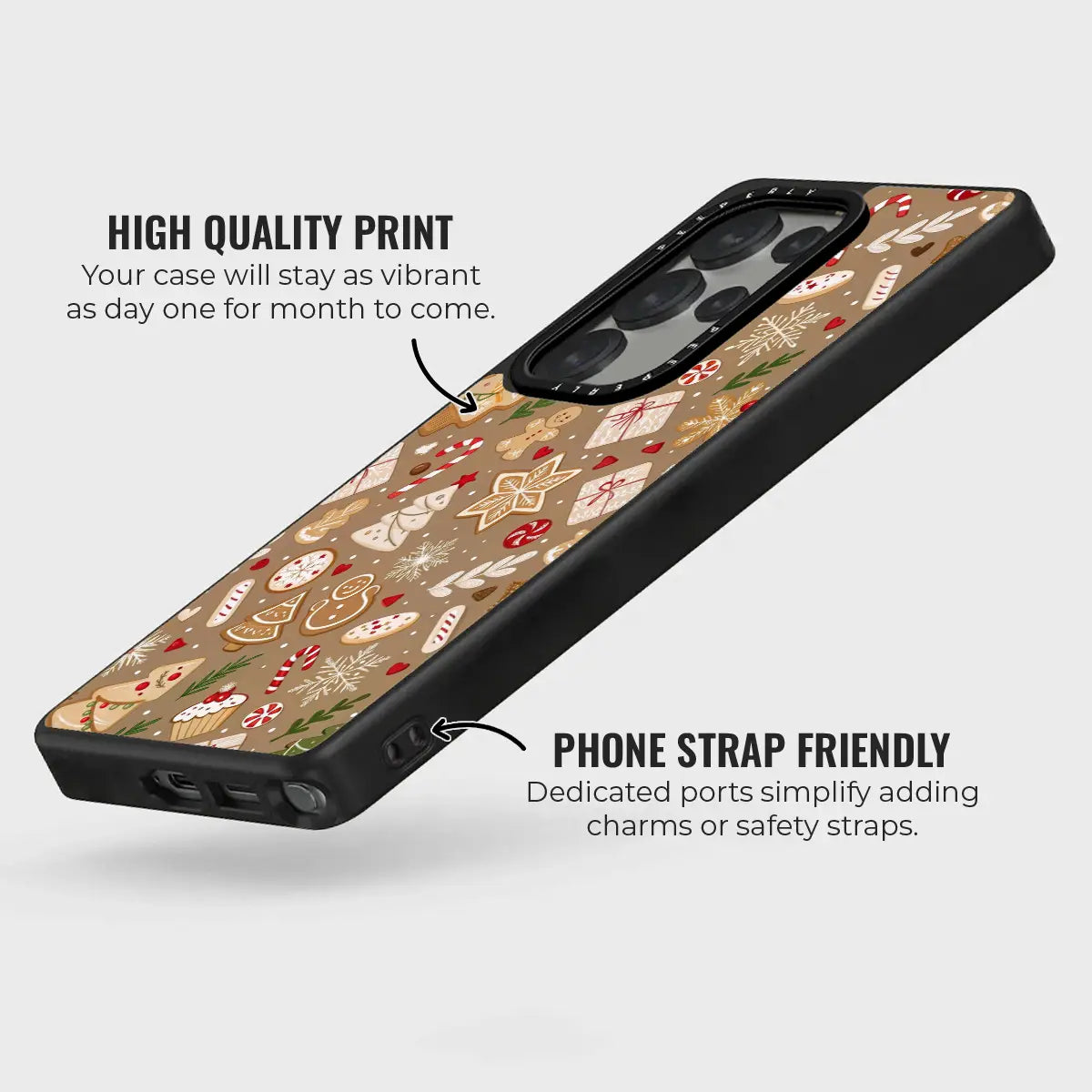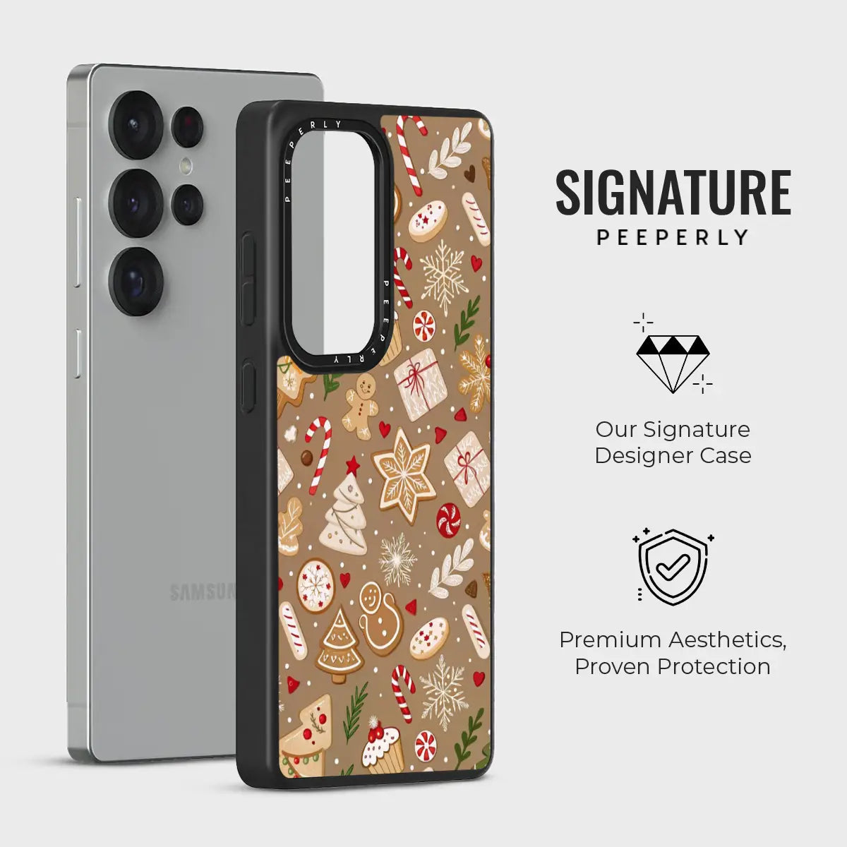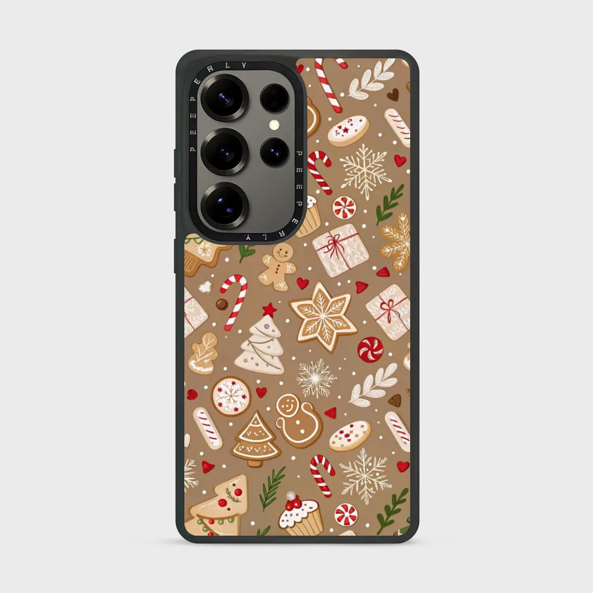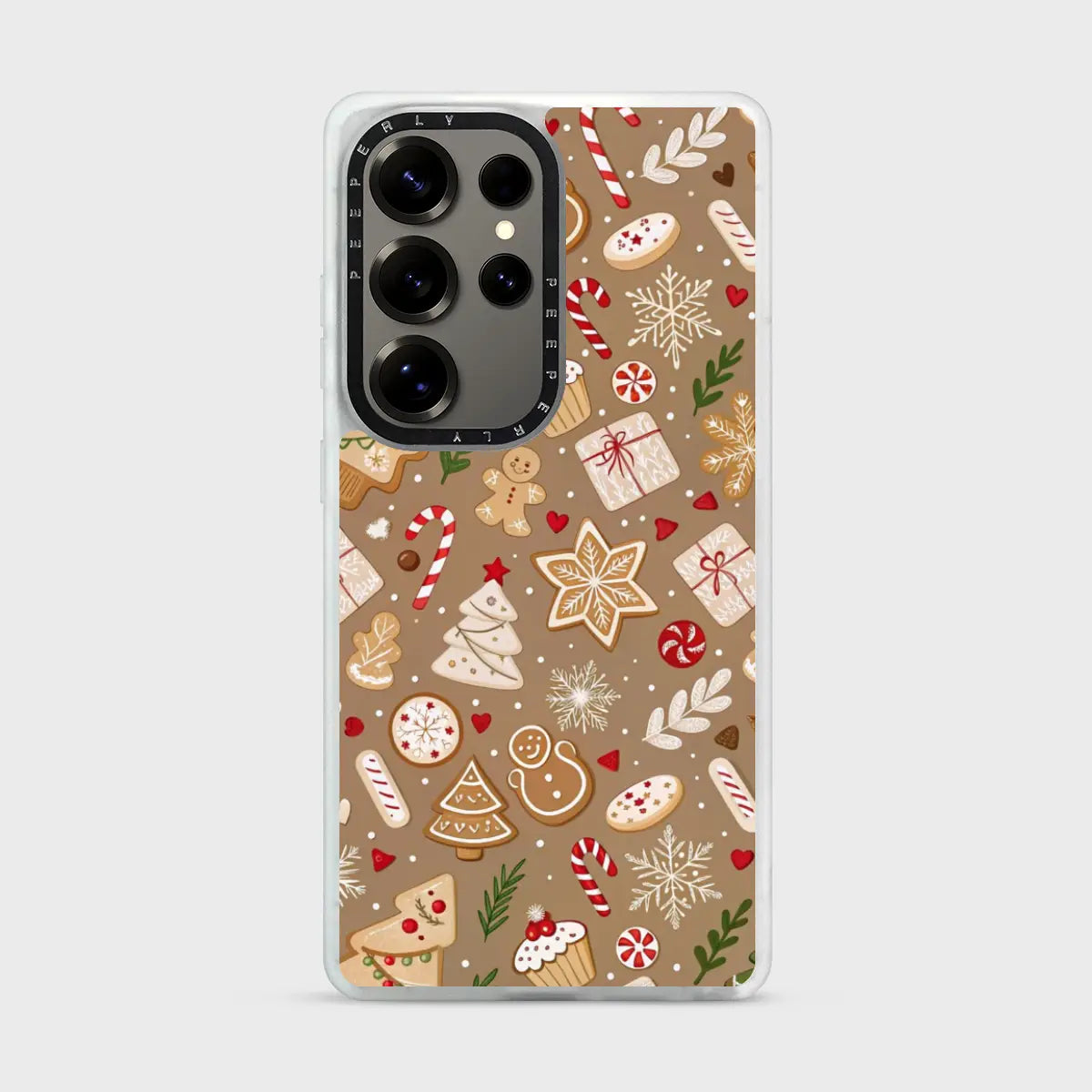 The soft, warm brown background adds a comforting, homemade feel—like fresh cookies straight from the oven. Protective, playful, and delightfully festive, Baked Cheer is perfect for anyone who loves cozy winter days, holiday treats, and whimsical Christmas designs.