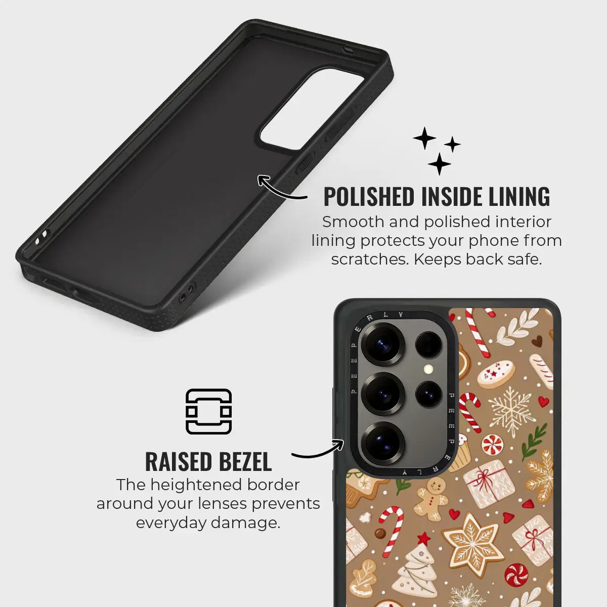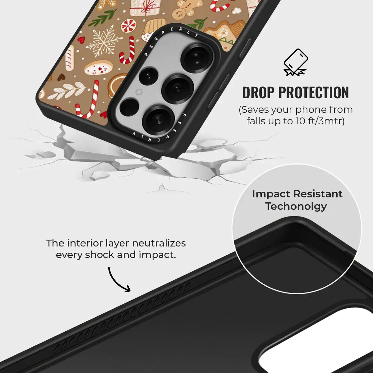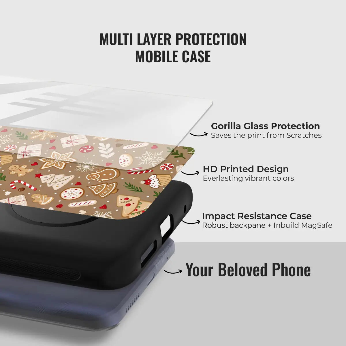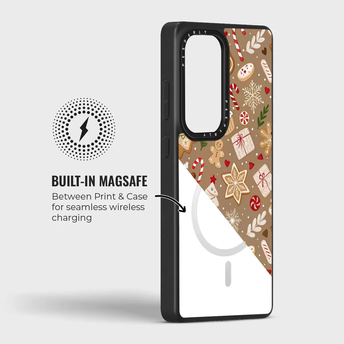 The soft, warm brown background adds a comforting, homemade feel—like fresh cookies straight from the oven. Protective, playful, and delightfully festive, Baked Cheer is perfect for anyone who loves cozy winter days, holiday treats, and whimsical Christmas designs.