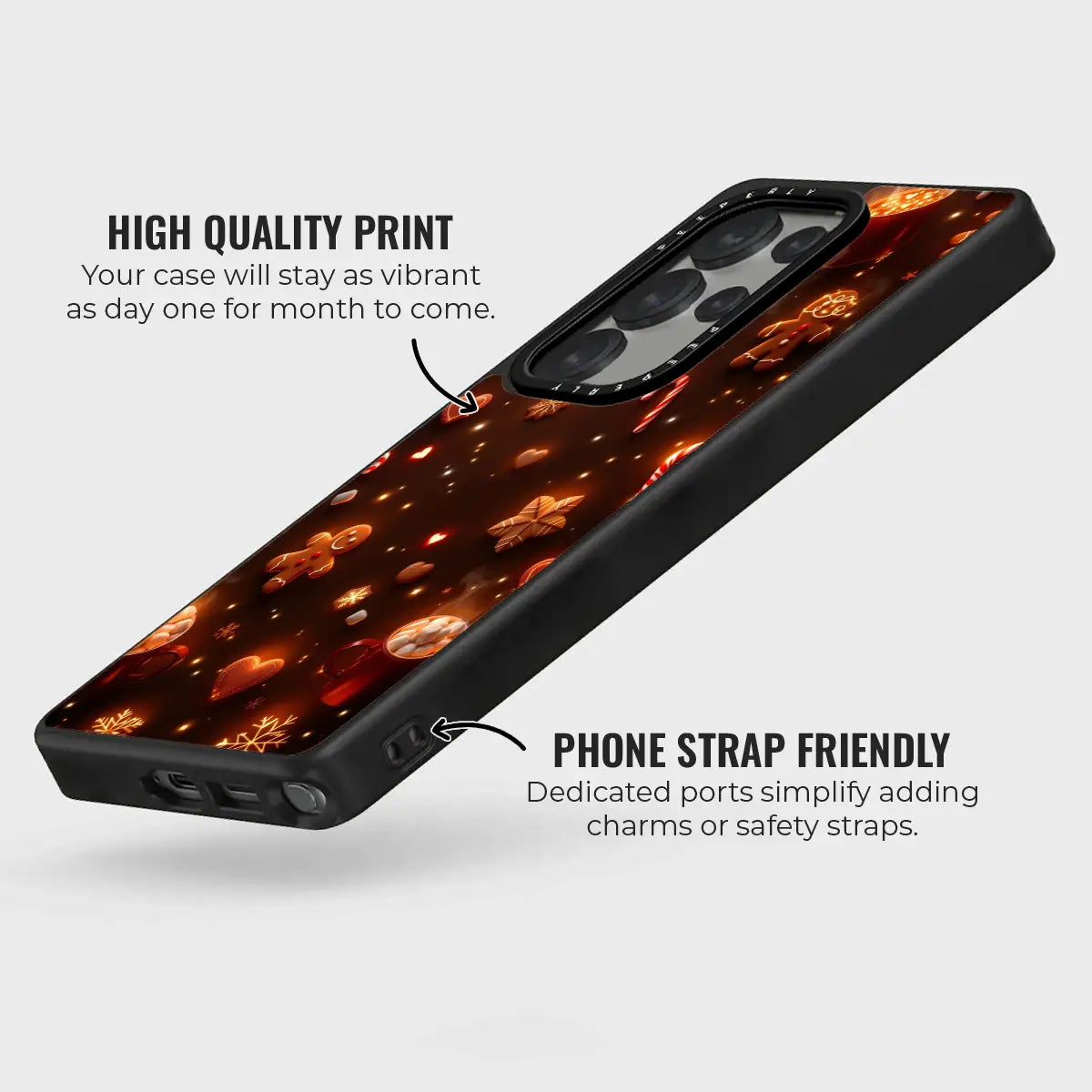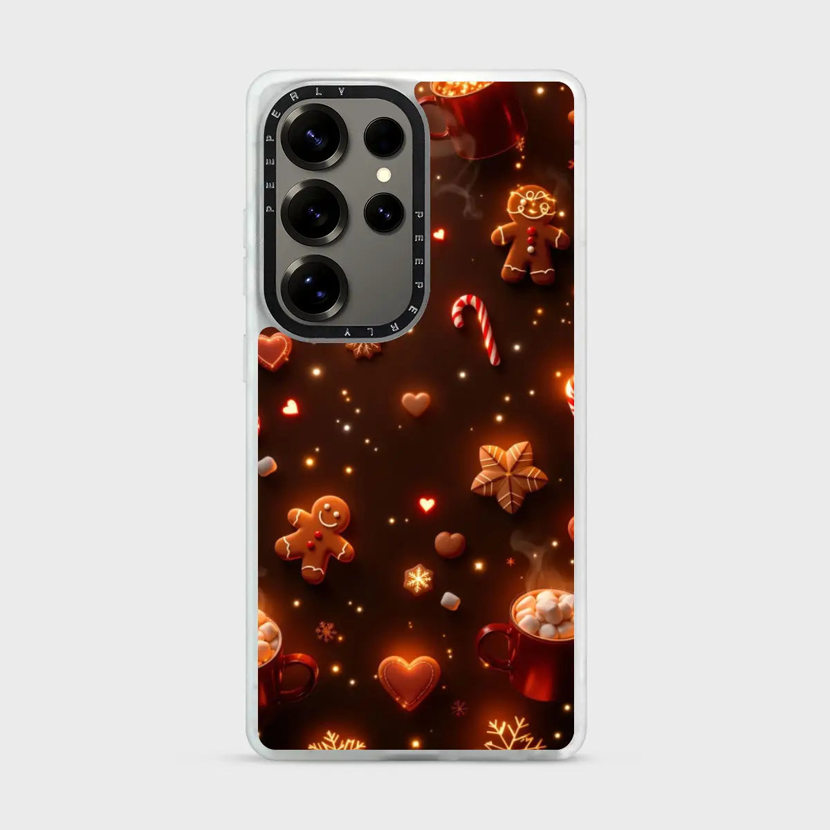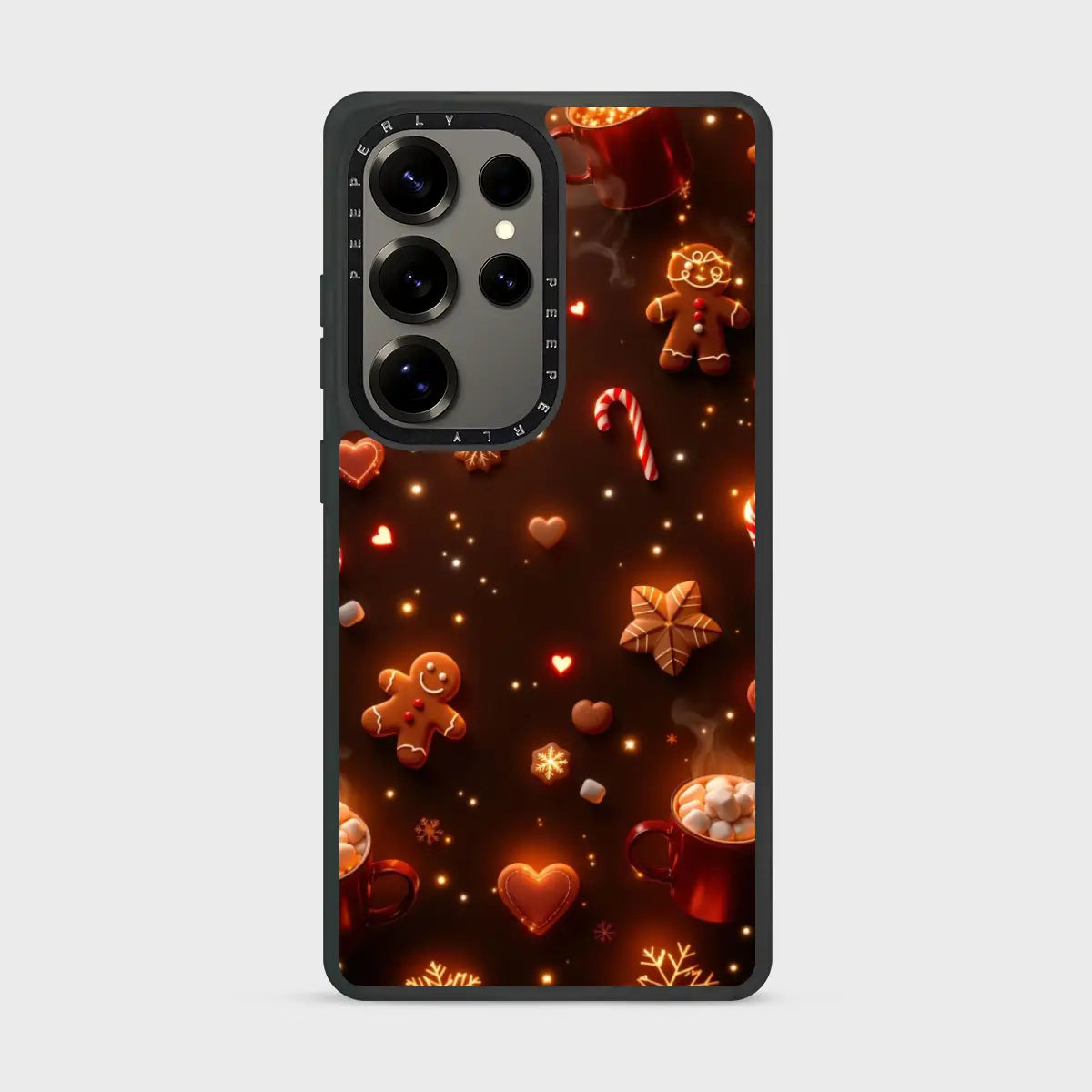 Wrap your phone in the comforting warmth of the holidays with this rich, chocolate-themed case. Glowing with tiny festive lights, gingerbread cookies, candy canes, marshmallows, and sparkling snowflakes, it captures the magical feeling of sipping hot cocoa on a winter night.