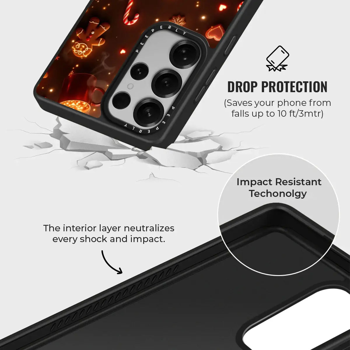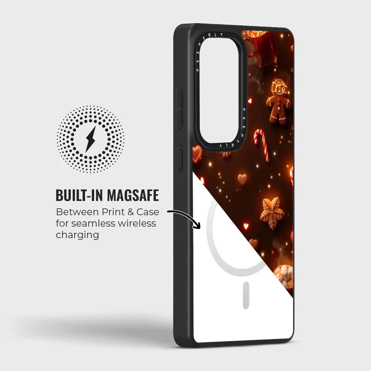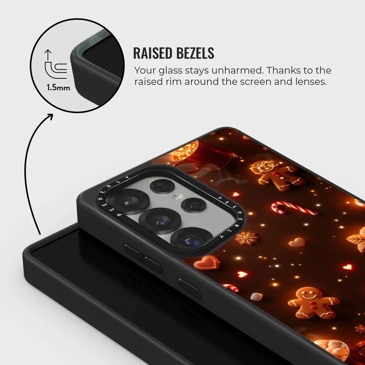 Wrap your phone in the comforting warmth of the holidays with this rich, chocolate-themed case. Glowing with tiny festive lights, gingerbread cookies, candy canes, marshmallows, and sparkling snowflakes, it captures the magical feeling of sipping hot cocoa on a winter night.
