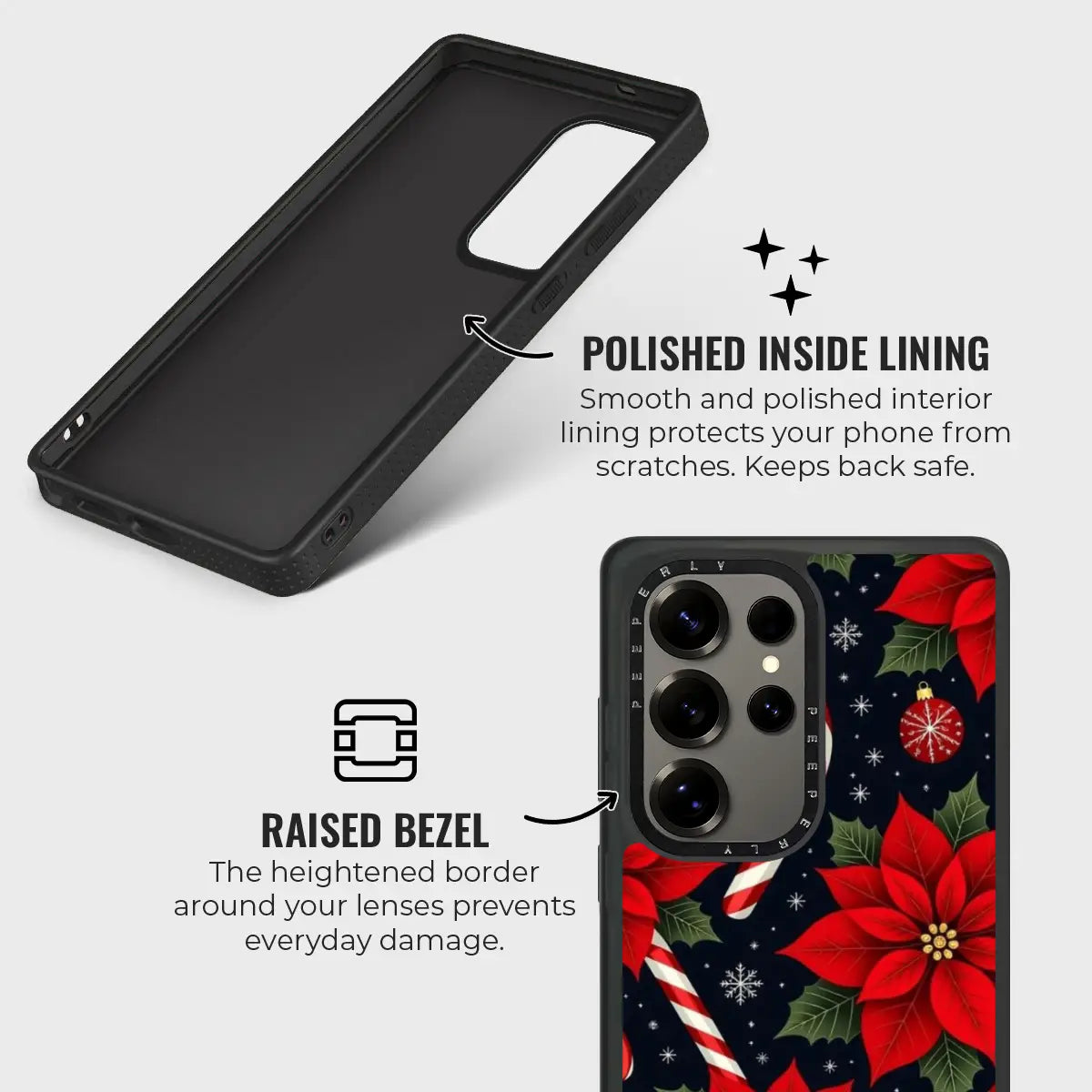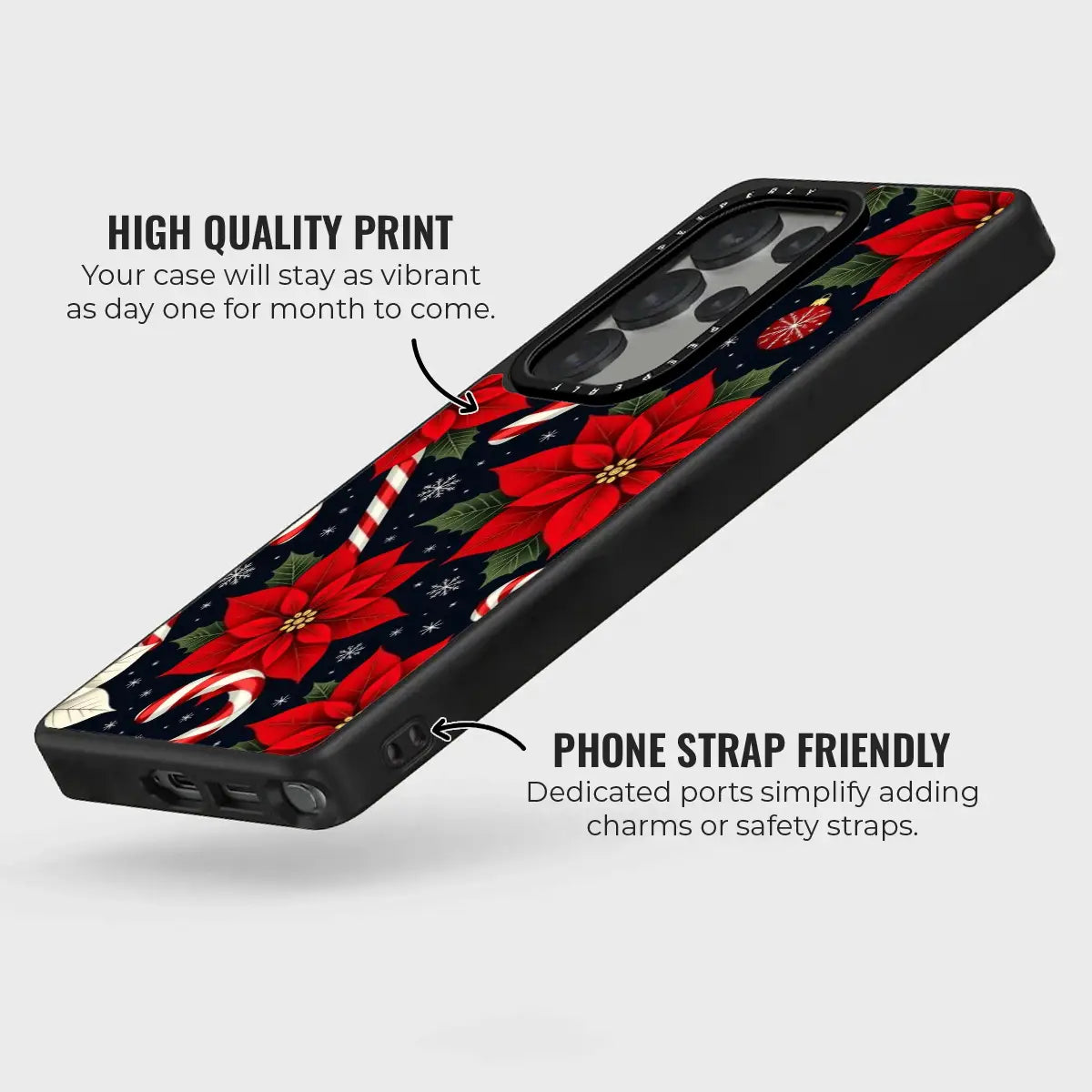 Celebrate the beauty of the season with this striking holiday phone case adorned with vibrant red poinsettias, classic candy canes, and delicate snowflakes. Stylish, protective, and full of seasonal elegance, Poinsettia Magic is perfect for anyone who loves timeless holiday florals and a touch of winter enchantment in their everyday style.