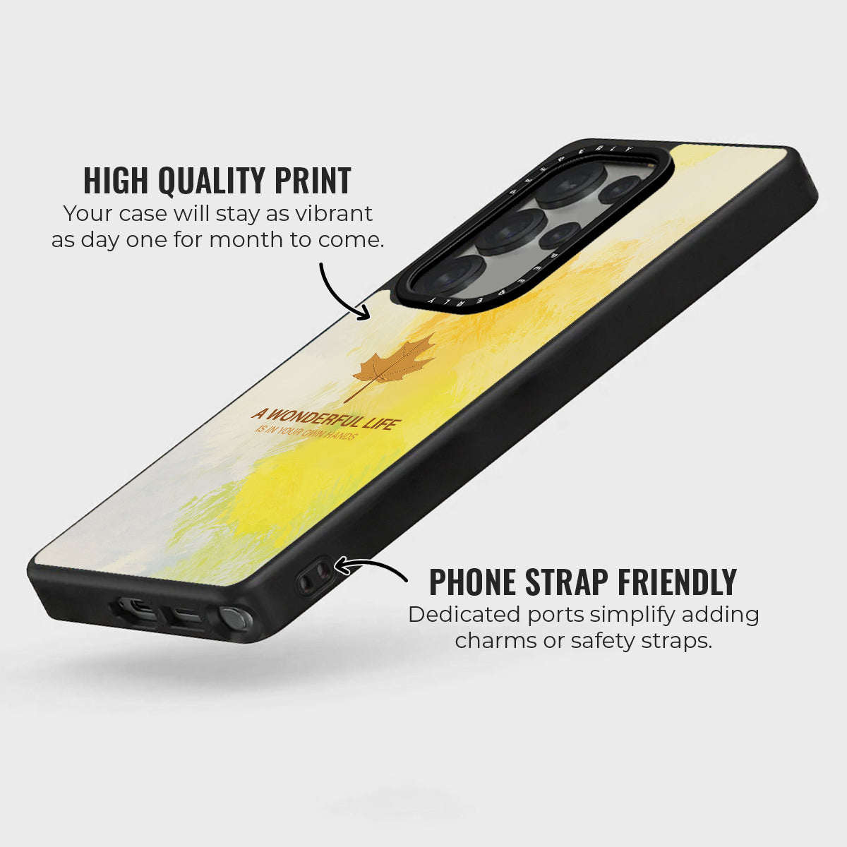 Unleash your potential with the Maple Leaf Case — a perfect fusion of elegance and empowerment. Featuring a soothing watercolor blend of lavender, blush, and sky tones, accented with a minimalist maple leaf, this case inspires calm confidence every time you hold your phone. The central message, “A Wonderful Life Is In Your Own Hands,” serves as a daily nudge toward intentional living, self-belief, and purpose.