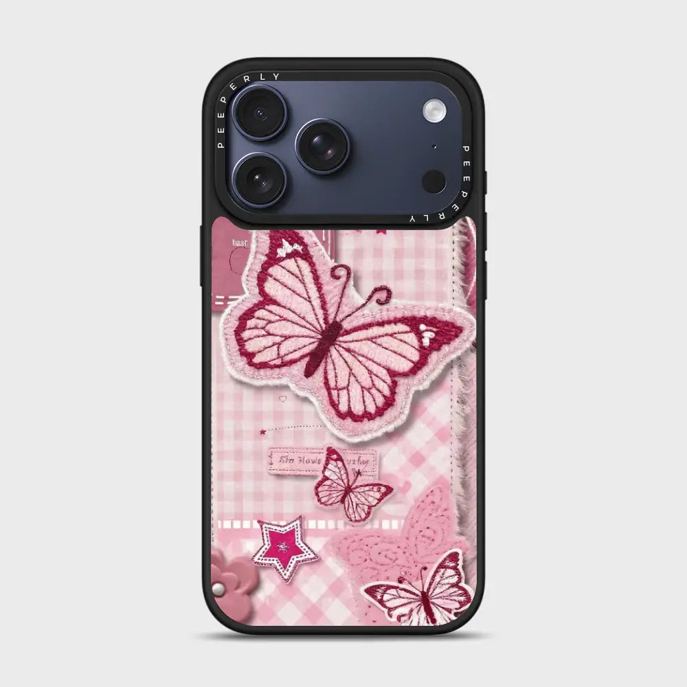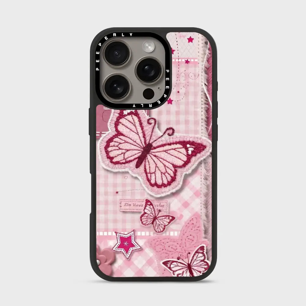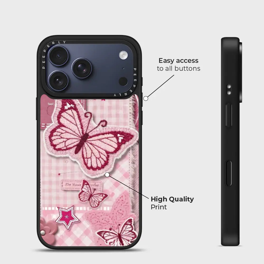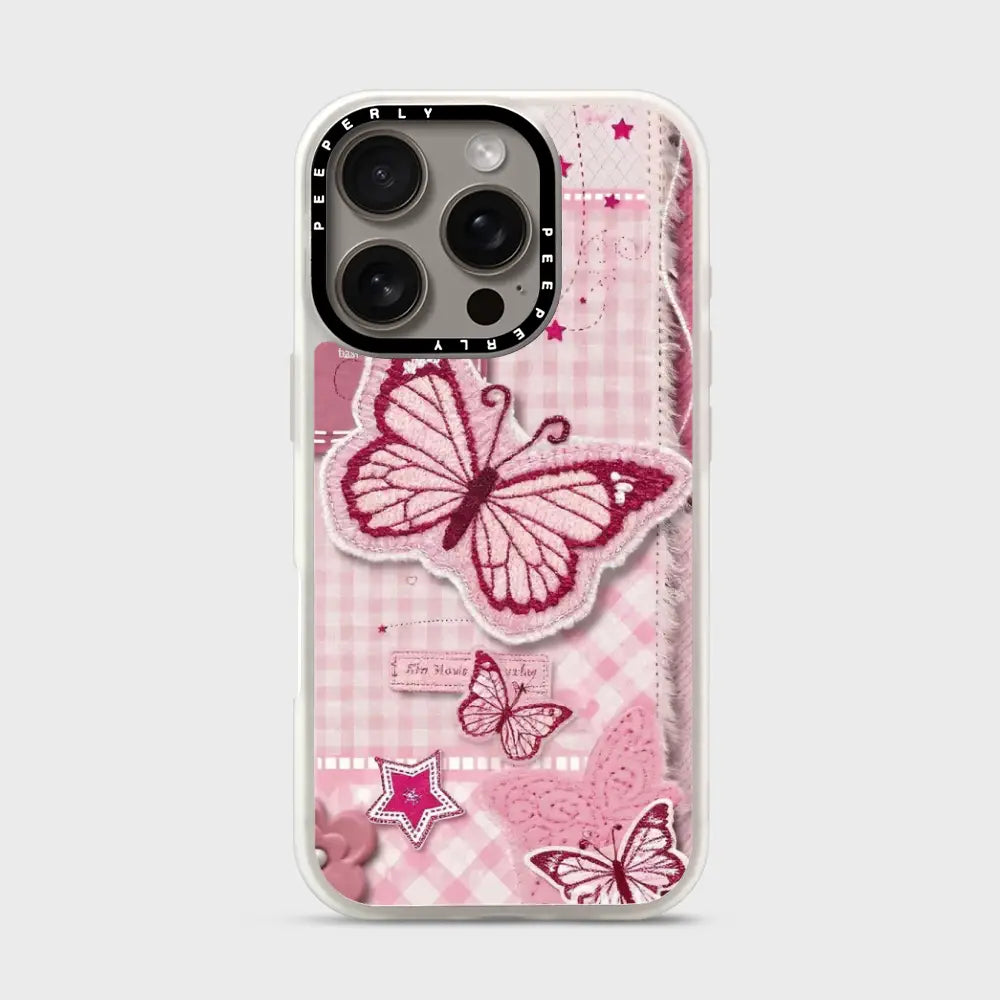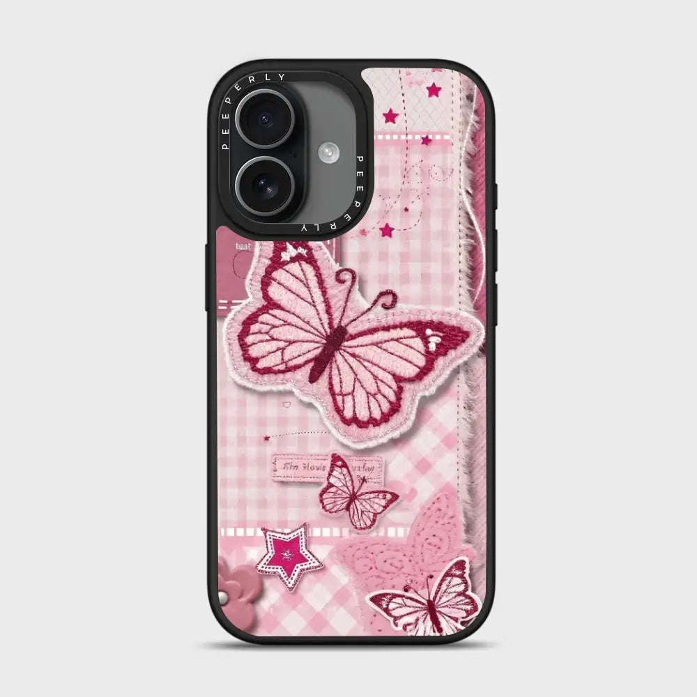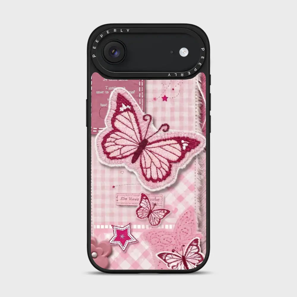 A soft pastel design featuring delicate pink butterflies in mid-flutter, layered over a gentle blush backdrop. Subtle textures and dreamy tones create a light, romantic aesthetic that feels calm, graceful, and effortlessly charming—perfect for adding a touch of elegance to your everyday style.