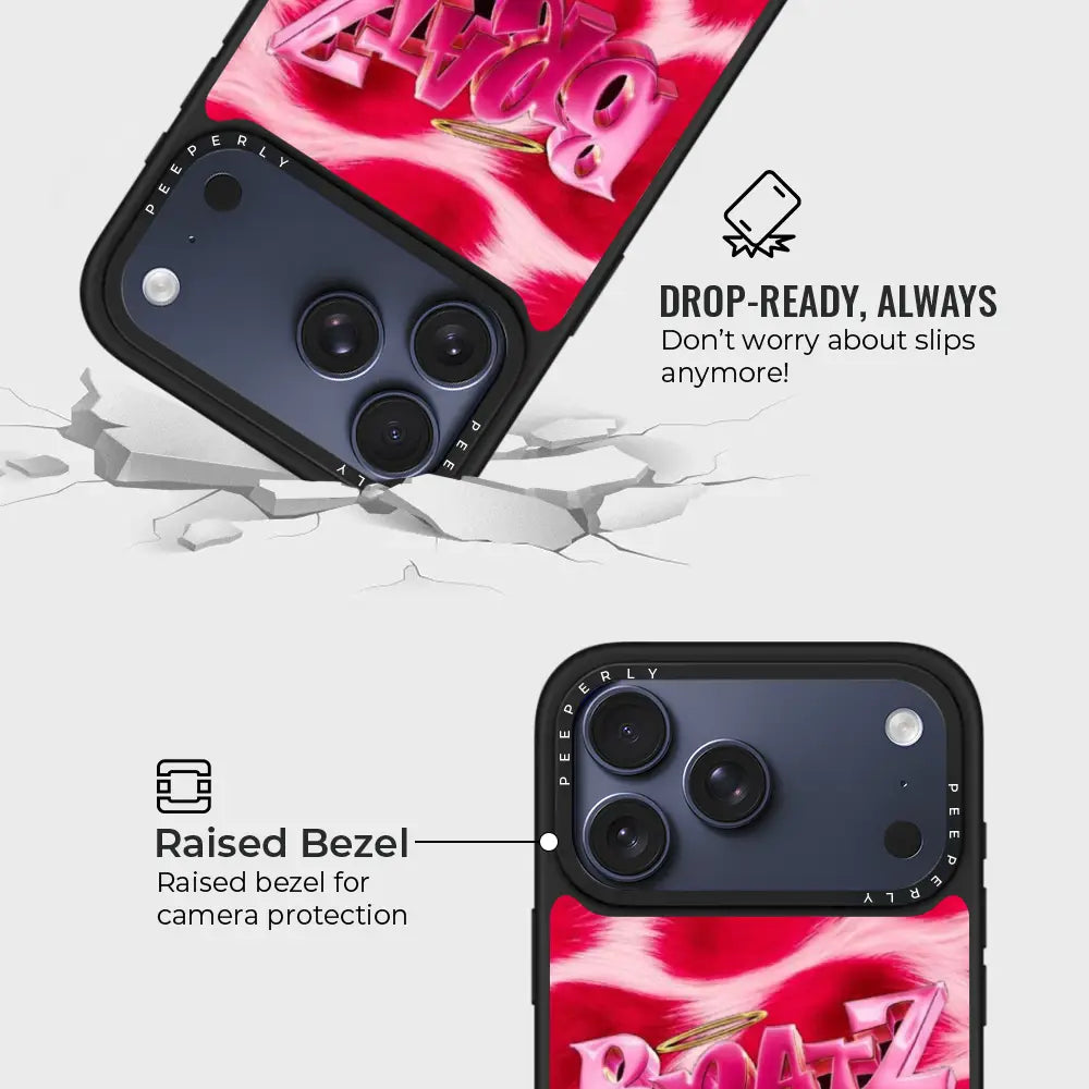 Furry Love is a bold, eye-catching phone case featuring plush, heart-inspired textures in vibrant pink tones with playful angelic accents. The fuzzy-look design adds a fun, Y2K-inspired edge while still feeling sweet and expressive.