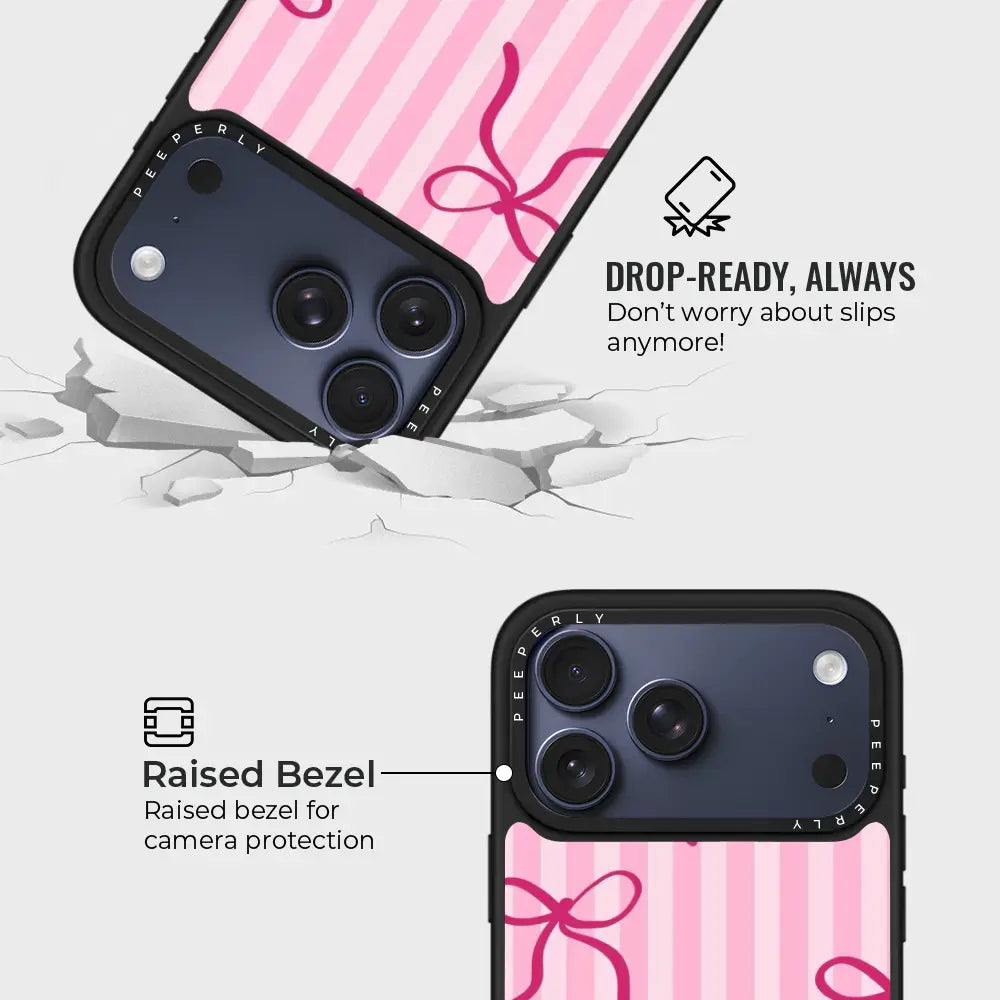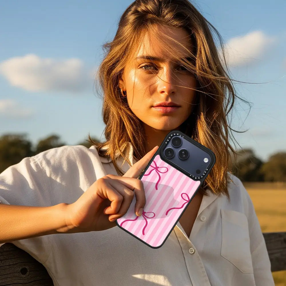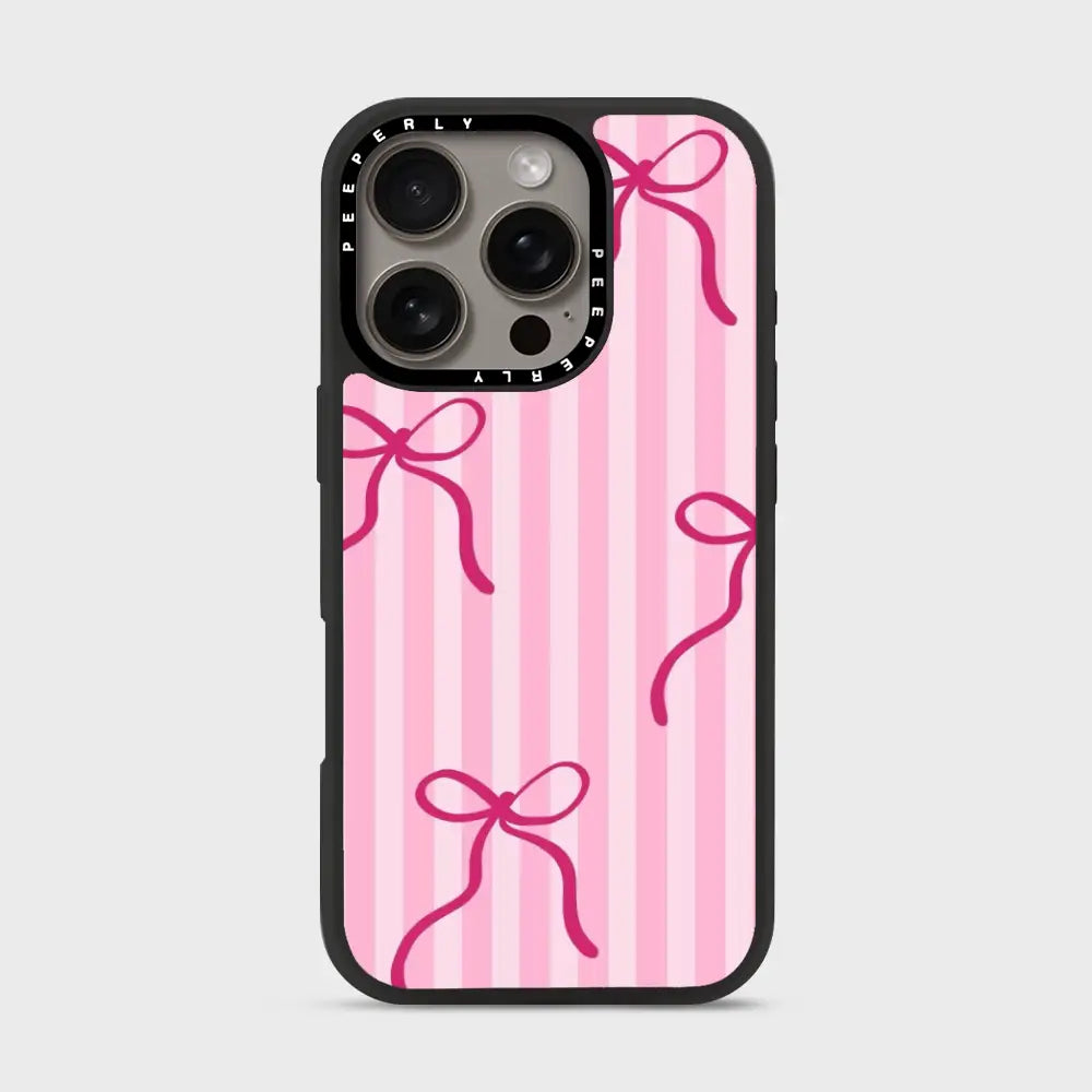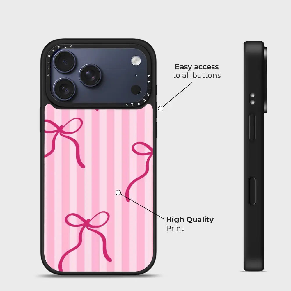 Girly Stripes is a sweet and playful phone case featuring soft pink stripes accented with delicate bow details. The charming design brings a light, feminine vibe that’s both cute and stylish. Finished with a smooth, protective build, Girly Stripes is perfect for adding a touch of fun, coquette-inspired charm to your everyday look.