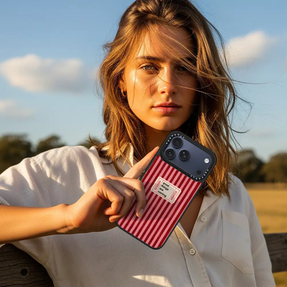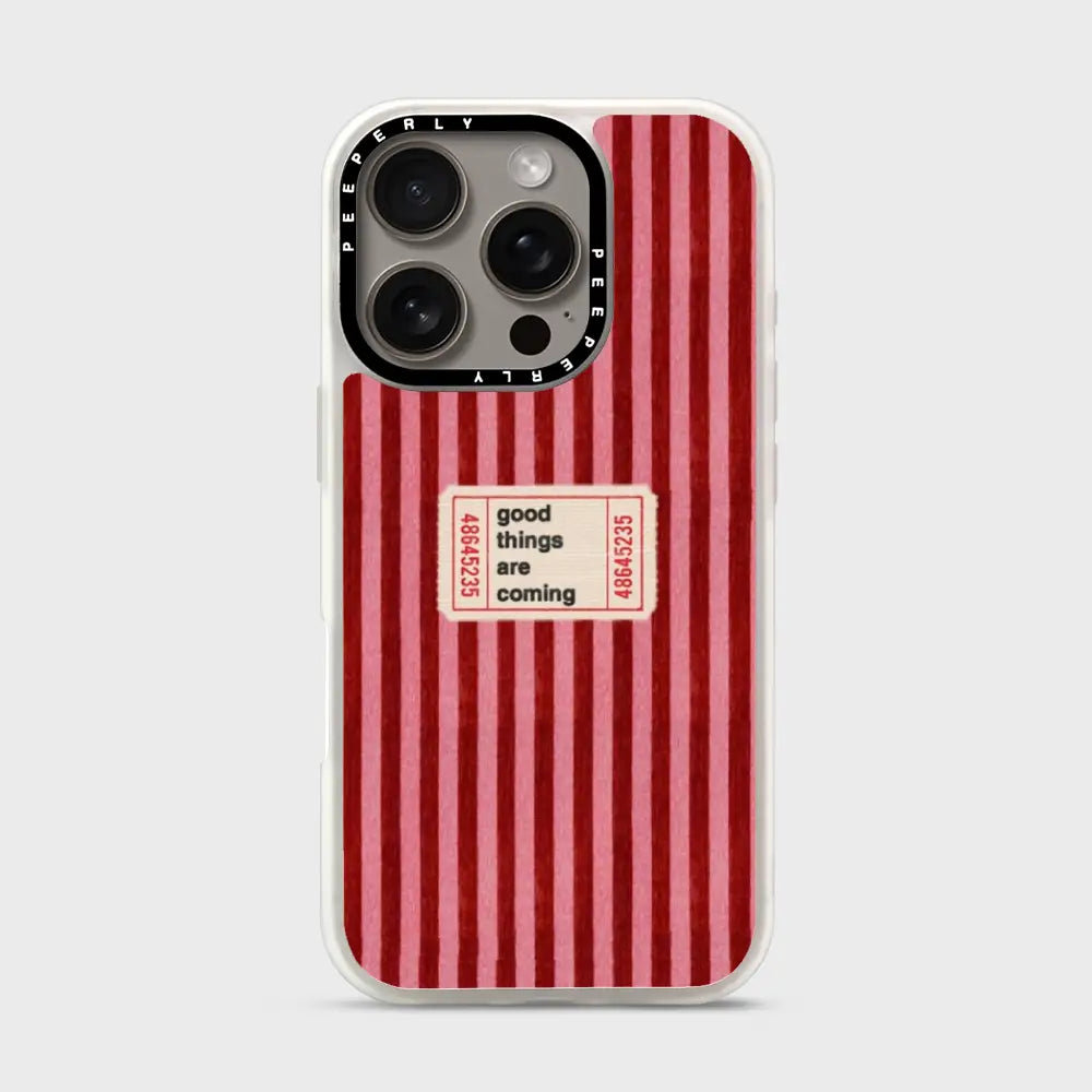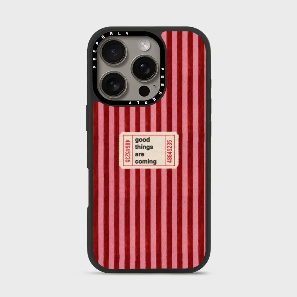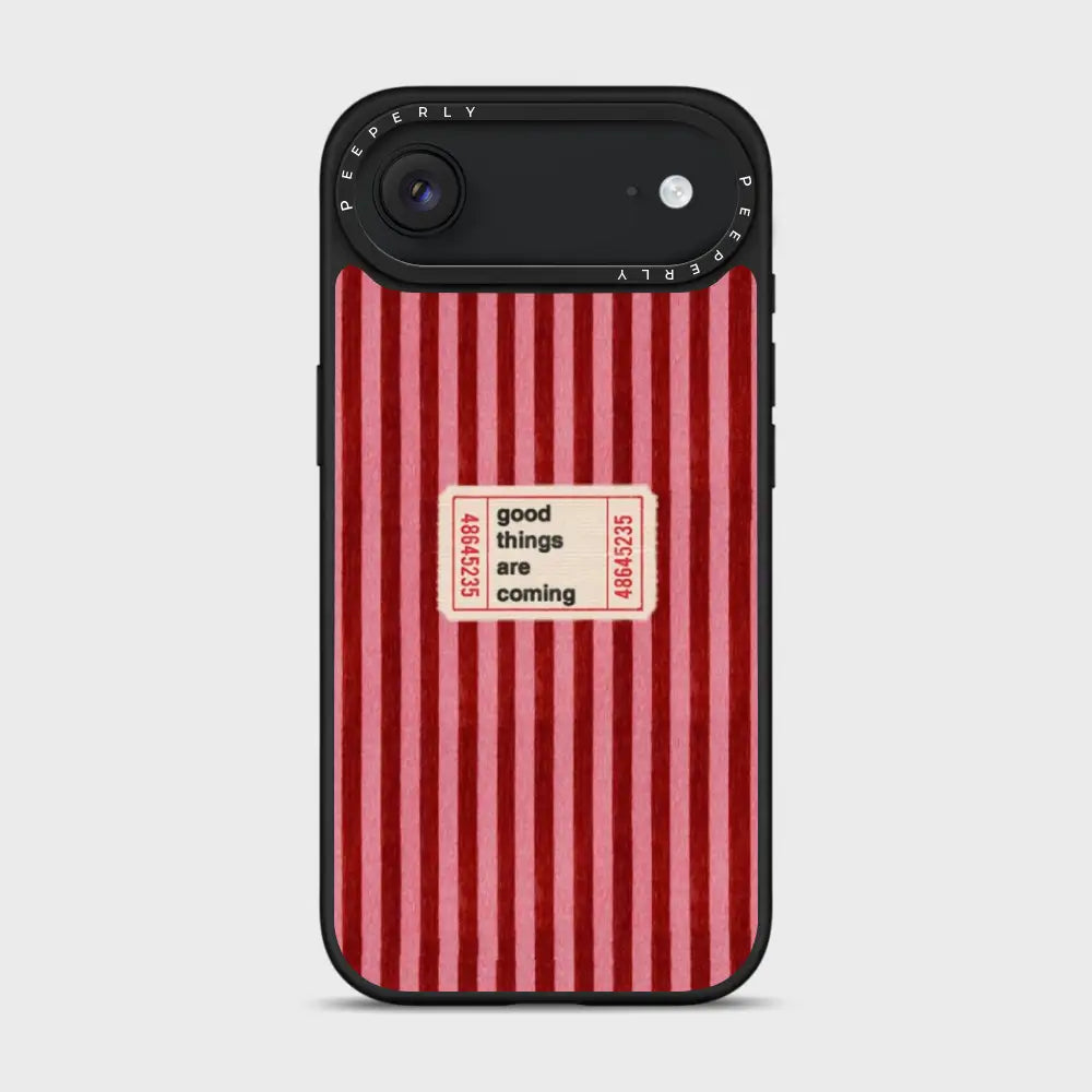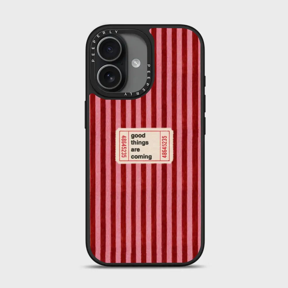The Kind Forecast case is a gentle reminder that brighter days are on the way. Featuring a warm red striped backdrop with a charming vintage-style ticket that reads “good things are coming,” this design radiates optimism, comfort, and quiet confidence. Subtle heart details add a touch of affection, making the case feel like a small note of encouragement you carry with you every day.