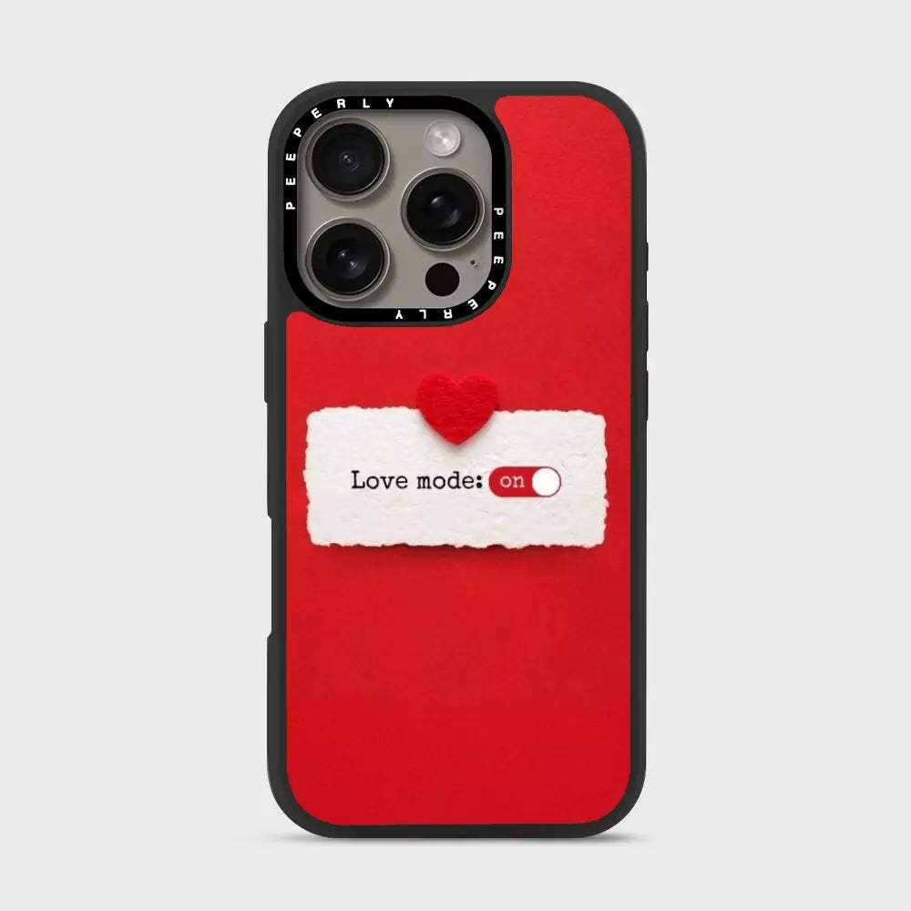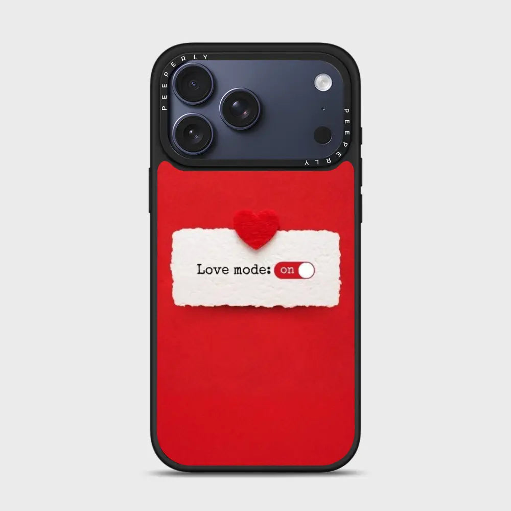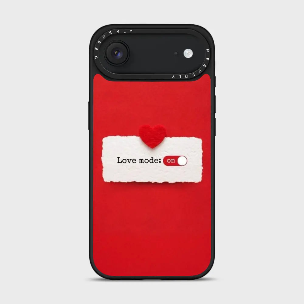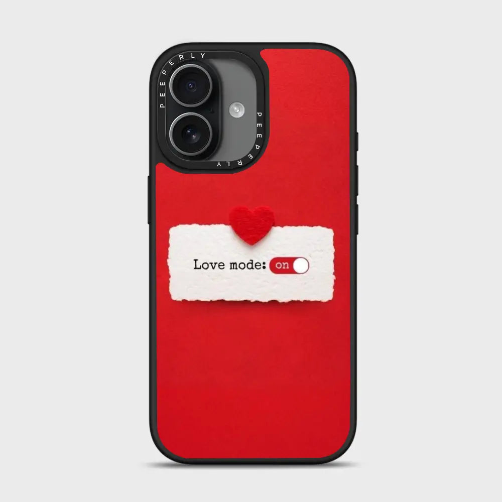 Bold, romantic, and effortlessly modern, the Love Mode On case makes a statement with its vibrant red finish and playful toggle-inspired graphic. Designed to capture the feeling of affection turned all the way up, this case blends sleek metallic edges with a smooth glossy back for a premium look.
