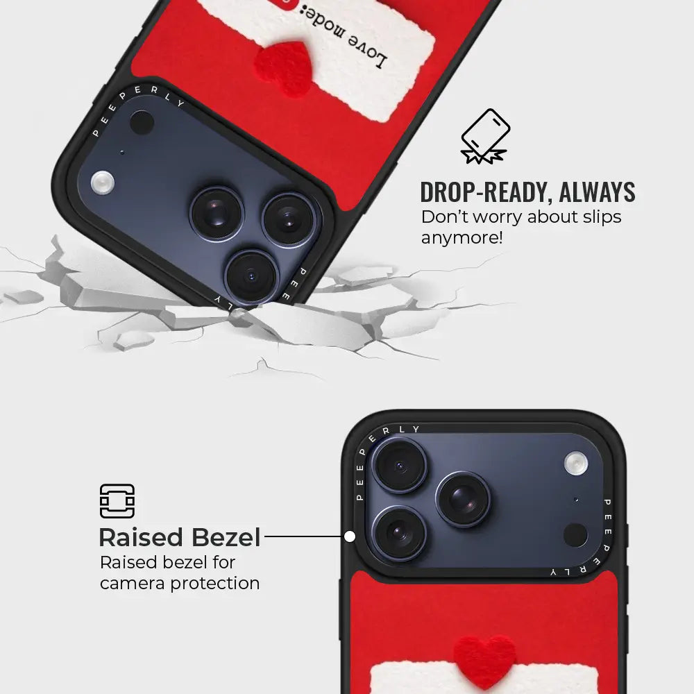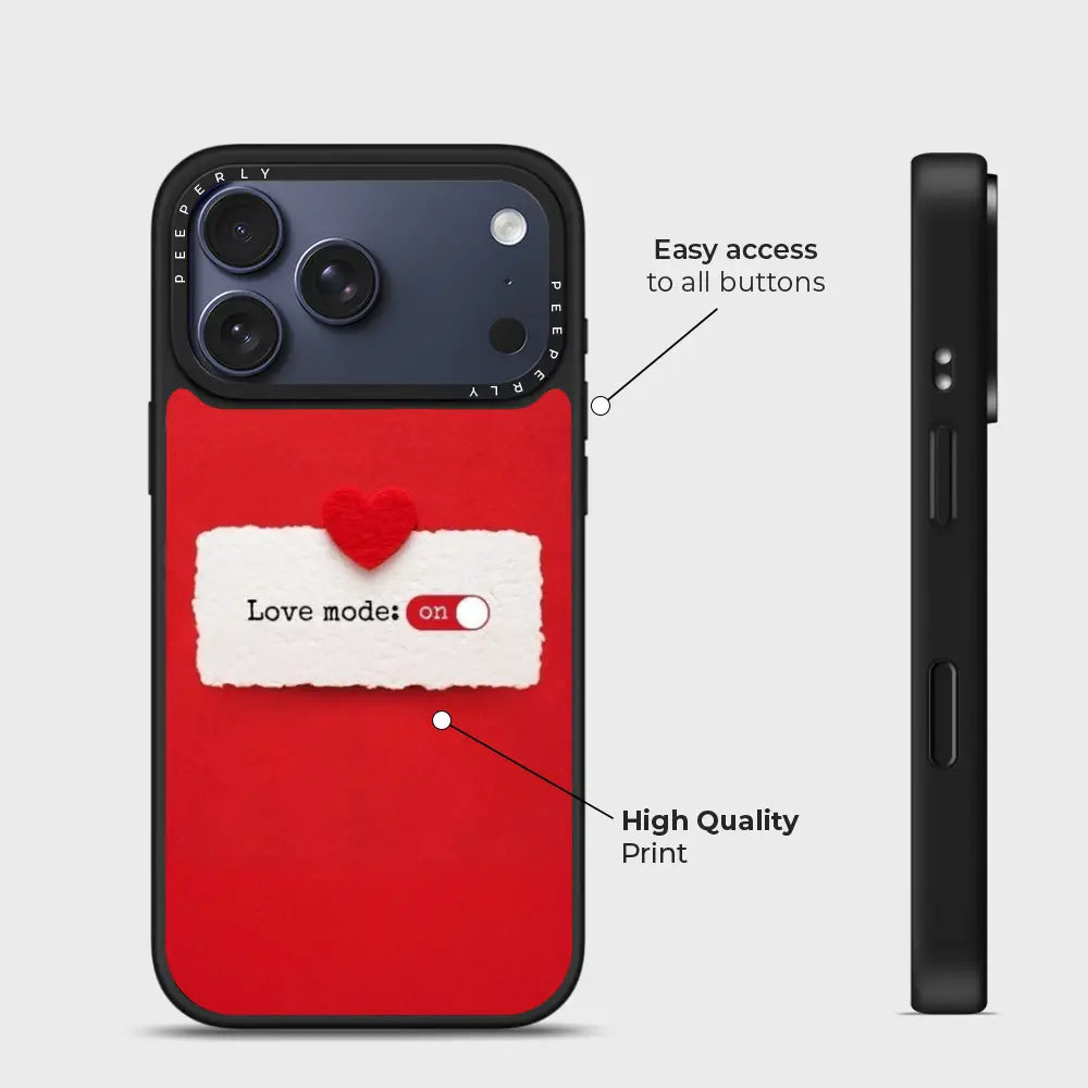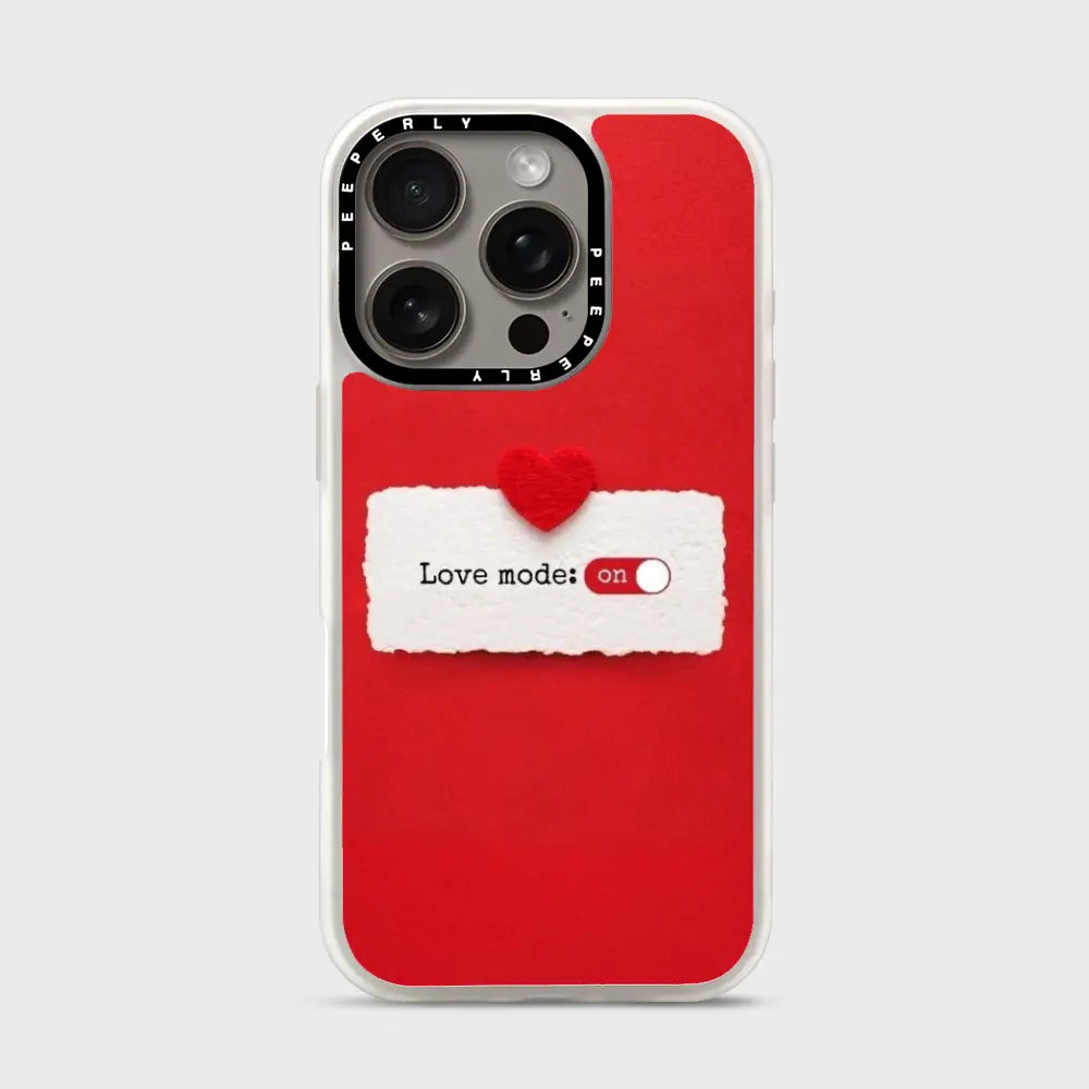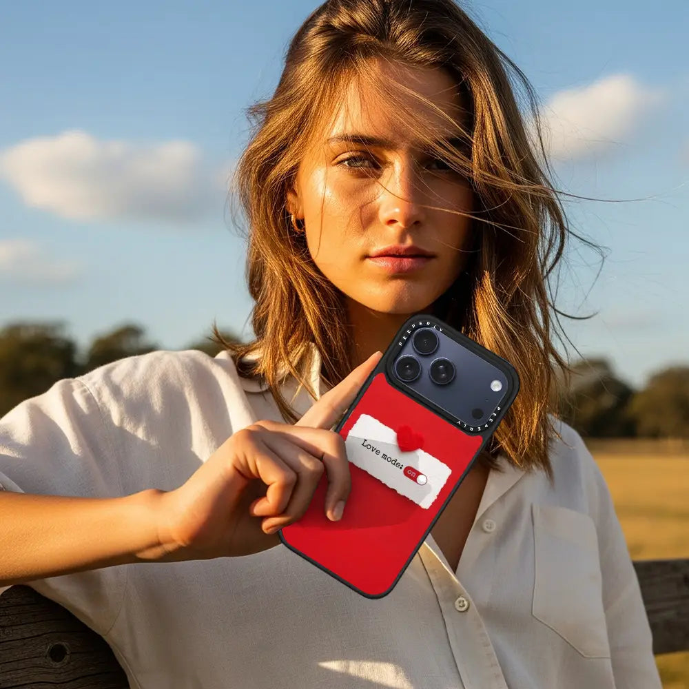 Bold, romantic, and effortlessly modern, the Love Mode On case makes a statement with its vibrant red finish and playful toggle-inspired graphic. Designed to capture the feeling of affection turned all the way up, this case blends sleek metallic edges with a smooth glossy back for a premium look.