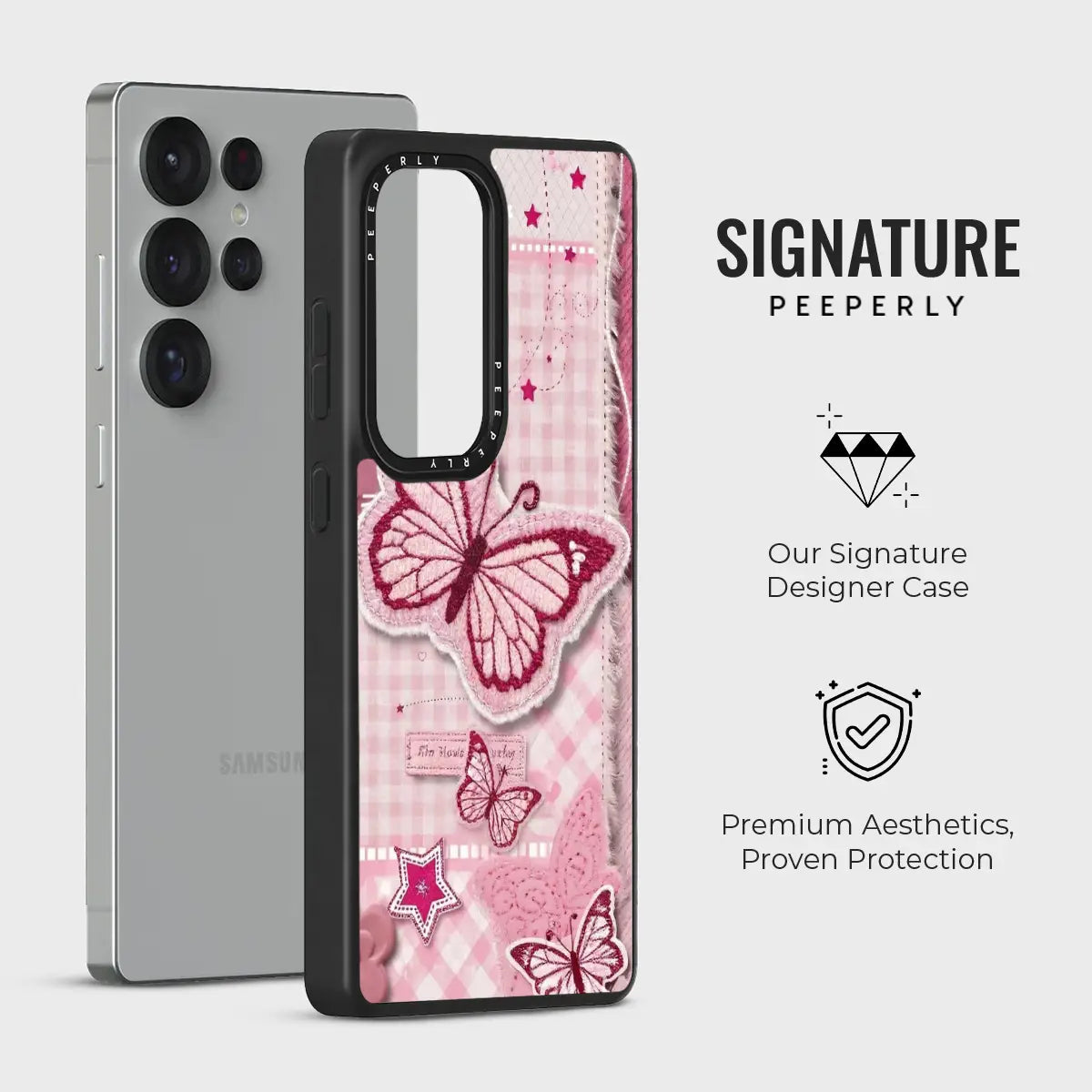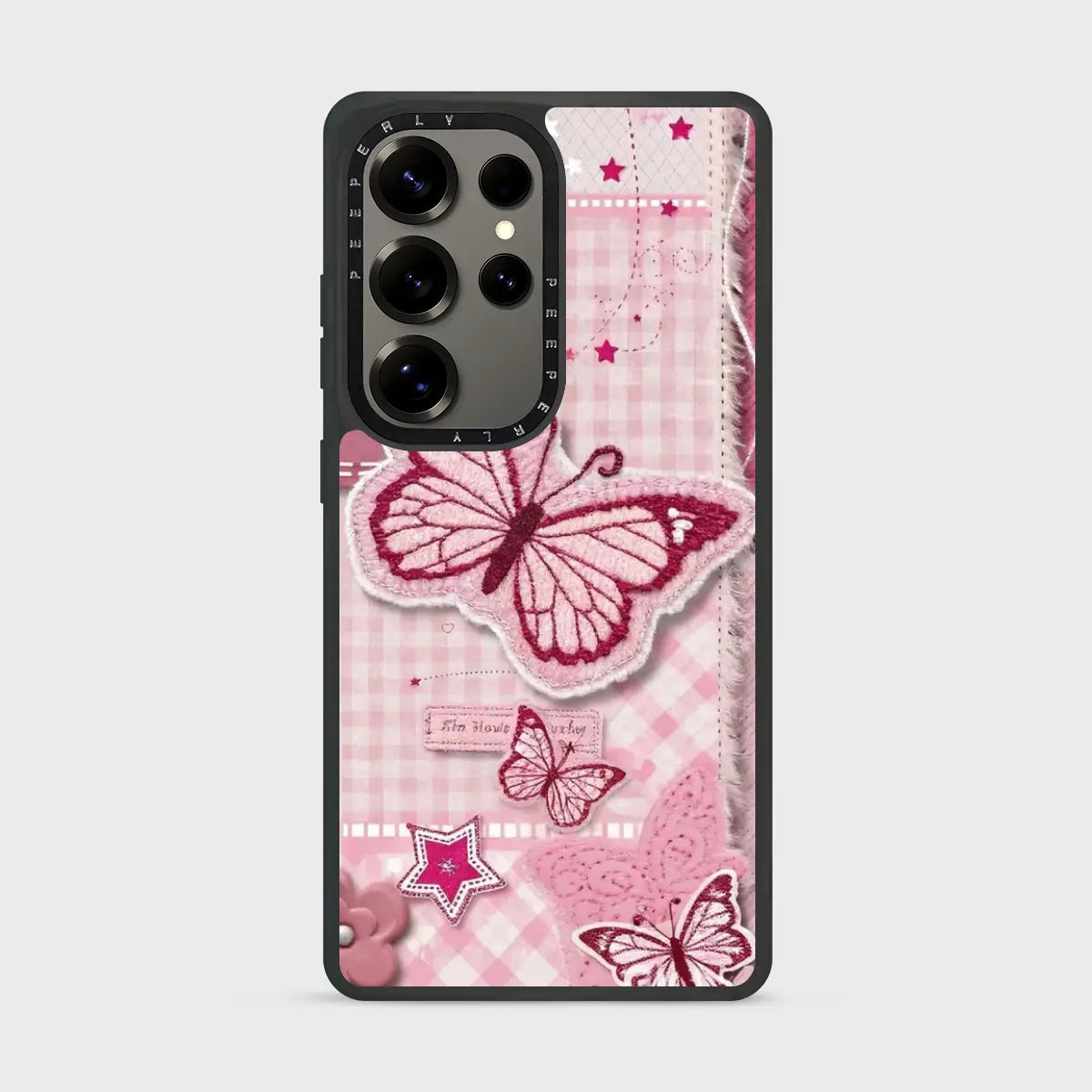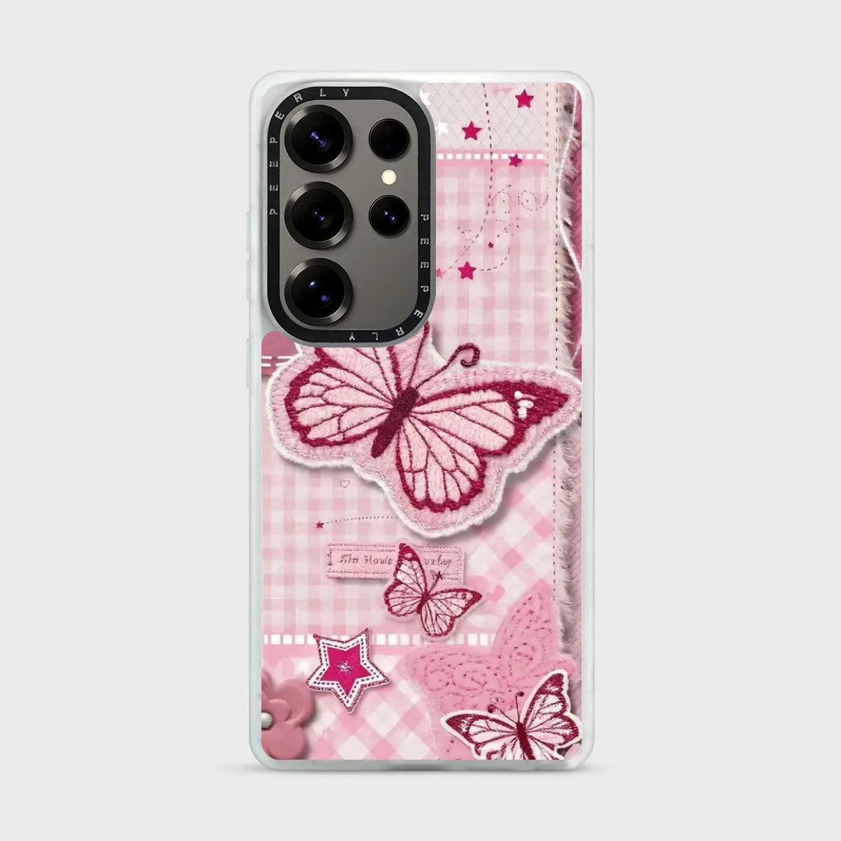 A soft pastel design featuring delicate pink butterflies in mid-flutter, layered over a gentle blush backdrop. Subtle textures and dreamy tones create a light, romantic aesthetic that feels calm, graceful, and effortlessly charming—perfect for adding a touch of elegance to your everyday style.