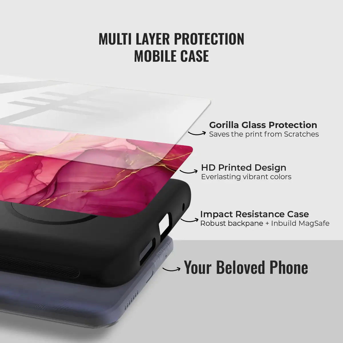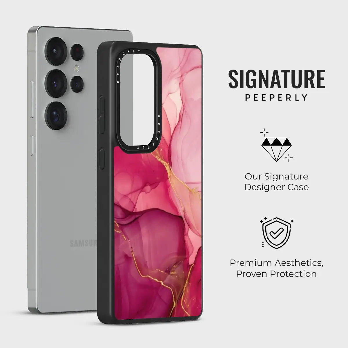 Rose Ember is a striking phone case inspired by flowing pink marble fused with delicate gold-vein accents. The rich rose tones and glowing metallic details create a warm, luxurious feel that’s both bold and elegant.