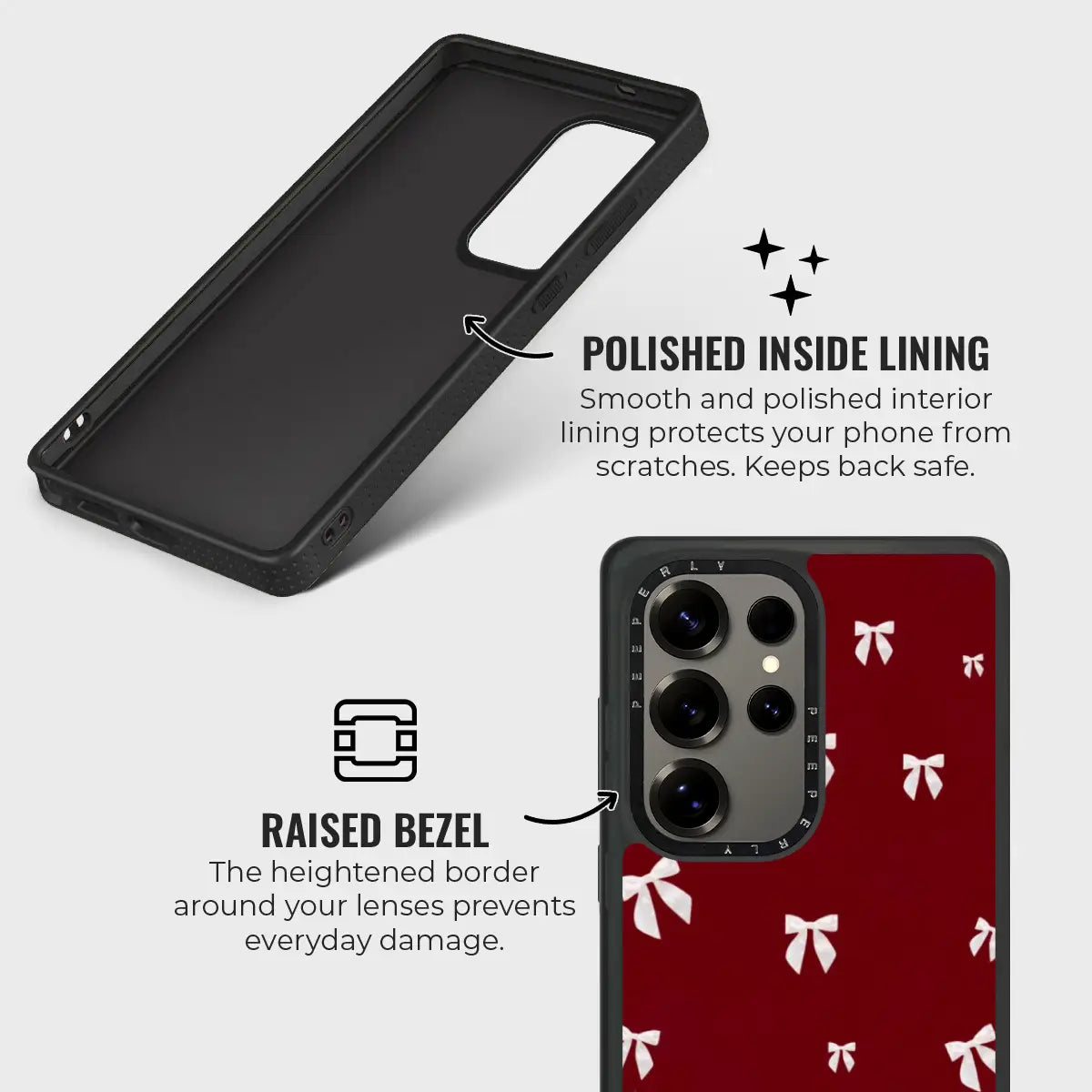 - Polished Inner Lining: Smooth lining shields the phone’s back from scratches.