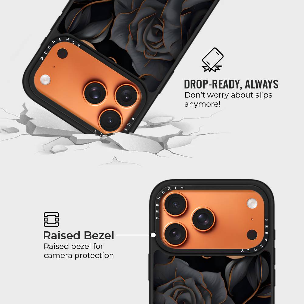 The Ashen Roses Case captures the quiet beauty of contrast—soft, petal-like forms drifting across a deep charcoal backdrop, touched with warm ember tones. Elegant and moody, this design feels both modern and timeless, perfect for those who appreciate subtle drama and refined aesthetics. It’s a statement of calm confidence, where floral artistry meets everyday protection.