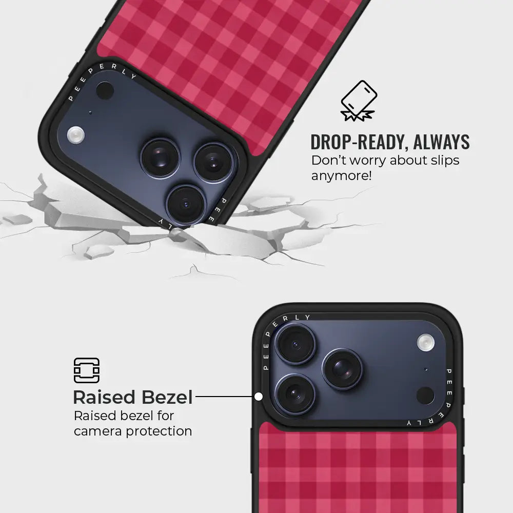 Sweet meets sophisticated with the Berry Gingham Case. Designed in a rich berry-red tone with a classic gingham pattern, this case adds timeless charm to your everyday style. The soft matte finish feels smooth in hand while the precise fit keeps your phone protected without adding bulk.