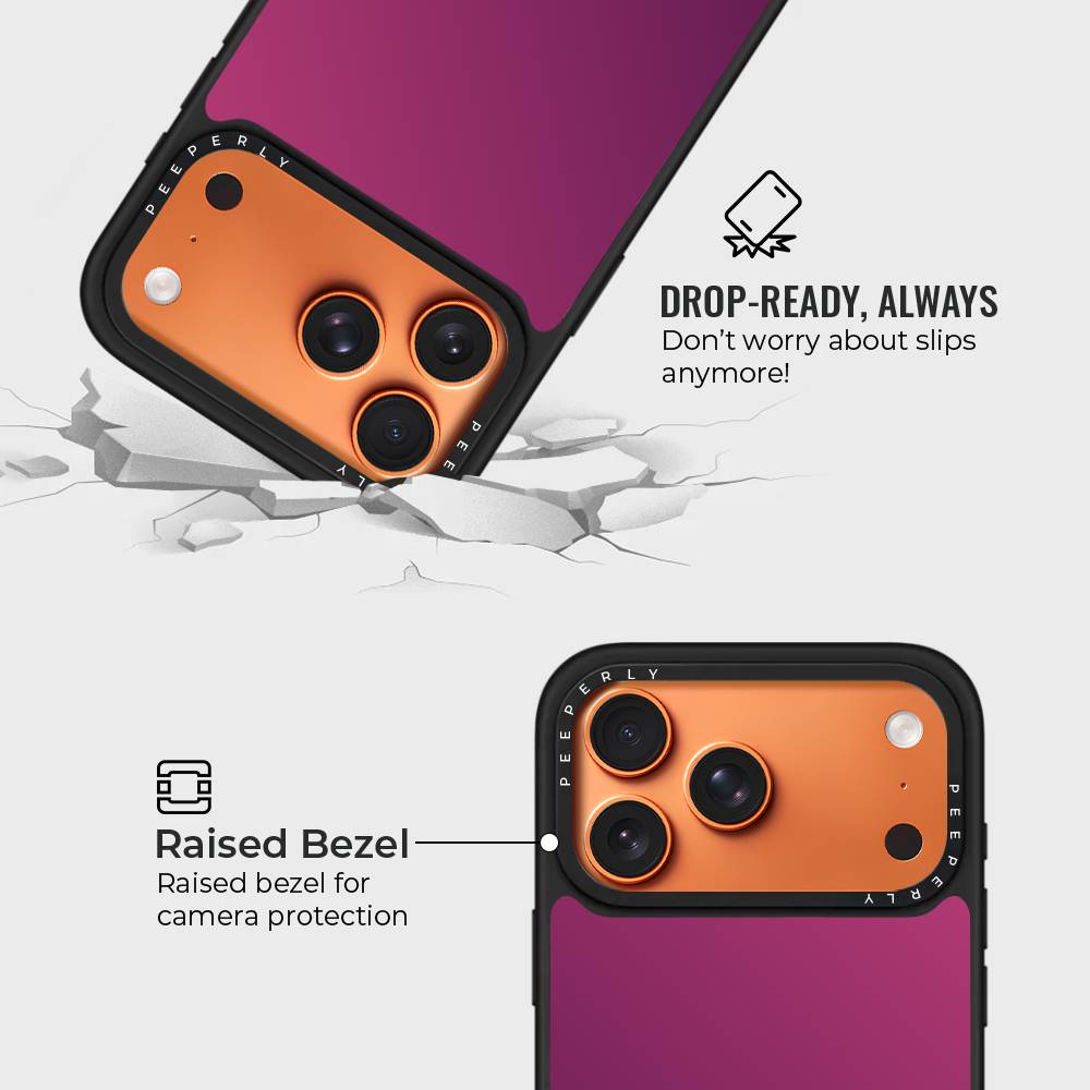Plum Ember is a sleek, modern phone case defined by a rich plum gradient and a warm copper-toned camera accent. Minimal yet striking, it blends deep, moody color with a subtle glow, creating a look that feels bold, refined, and contemporary.