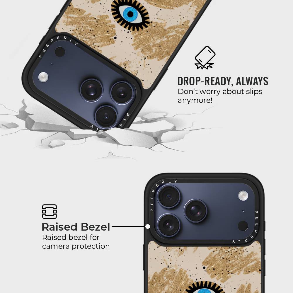 Unleash your inner mystic with the Spellsight case — where ancient symbolism meets modern elegance. At the heart lies a piercing blue eye, surrounded by bold golden textures that shimmer with every move, casting a protective aura and bold style statement.