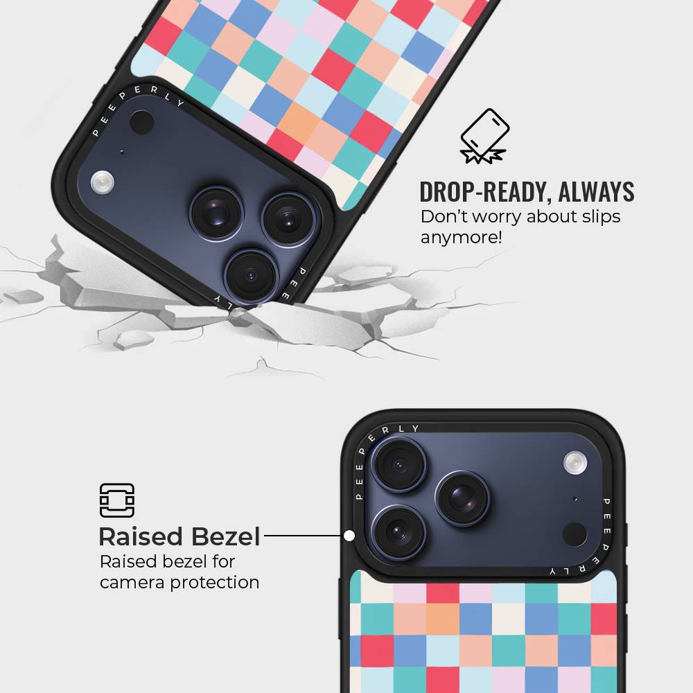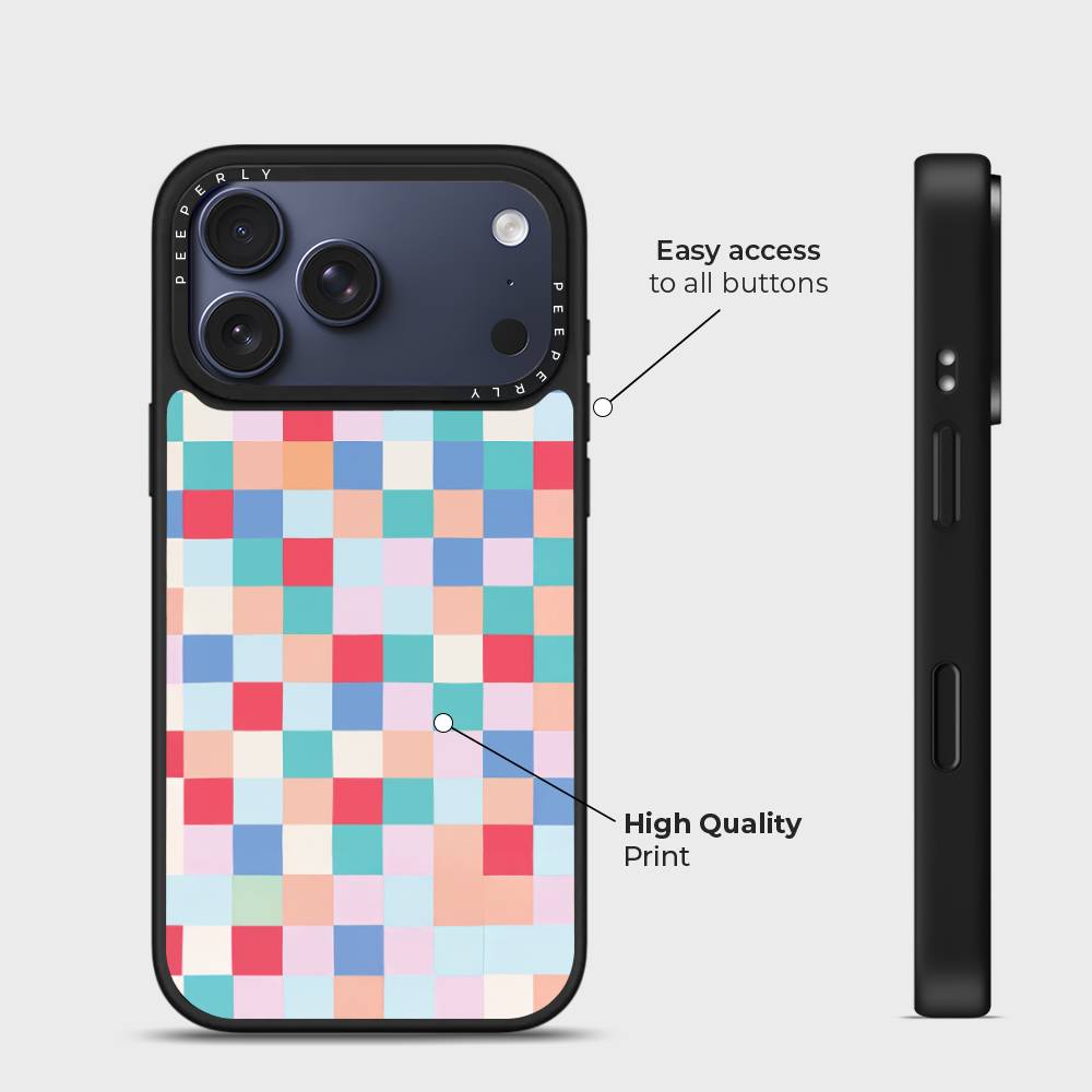 Say hello to joy in grid form. Tutti Frutti is a playful explosion of candy-colored squares, designed to brighten your day and your phone. With a blend of pastel pinks, zesty reds, mint greens, and juicy blues, this case is a cheerful nod to retro aesthetics and Gen Z flair.