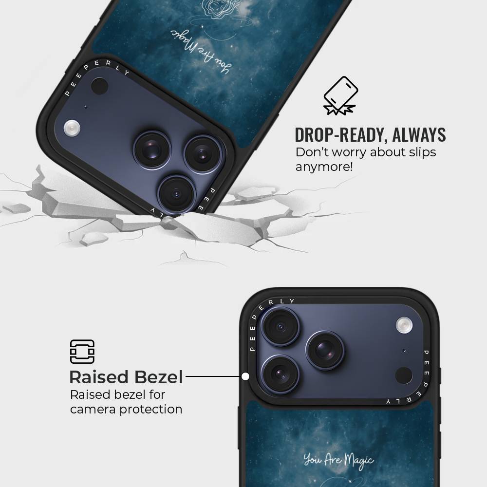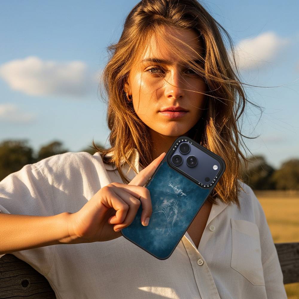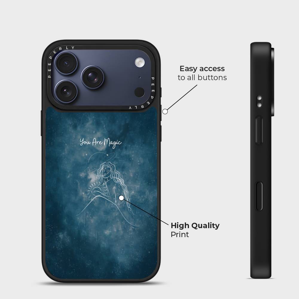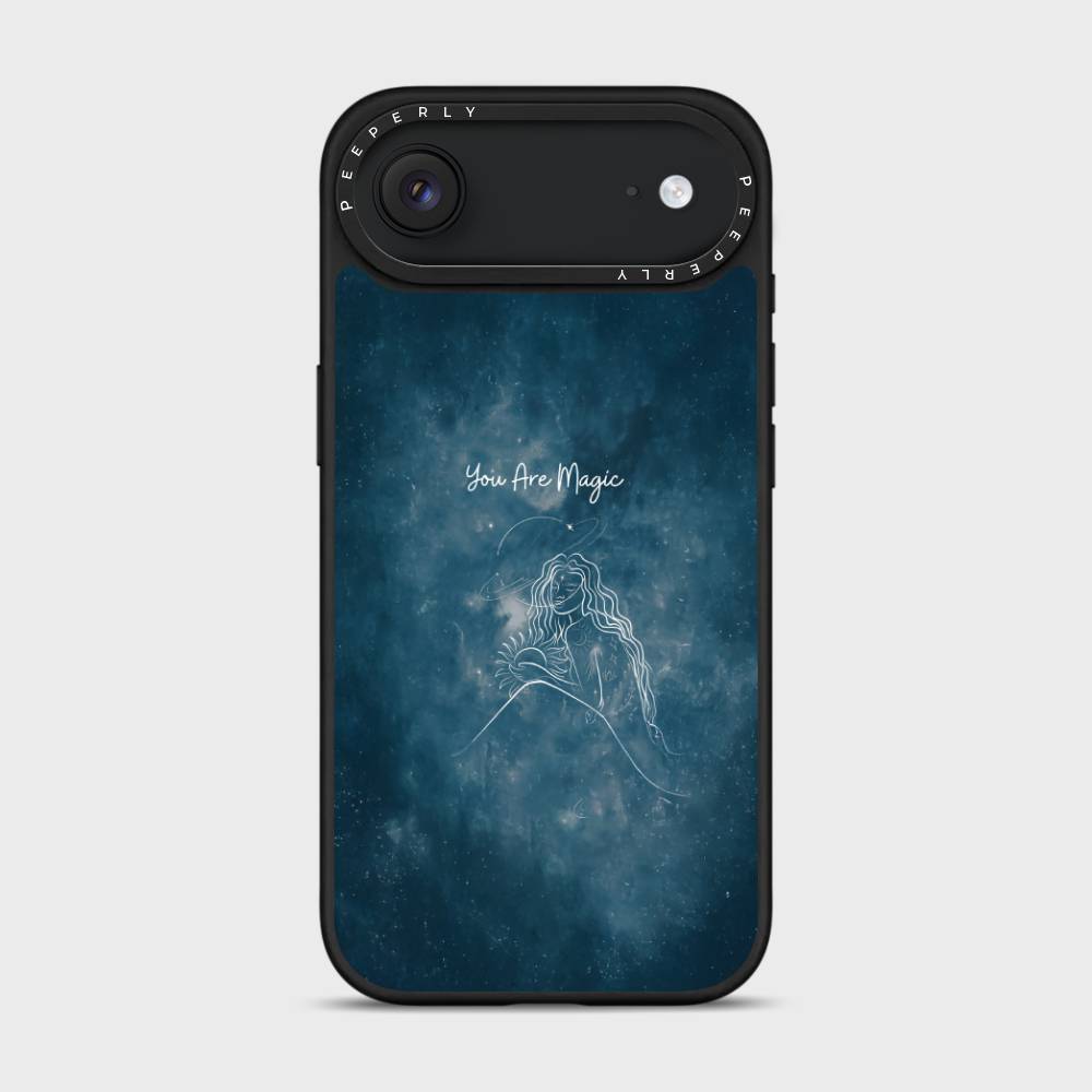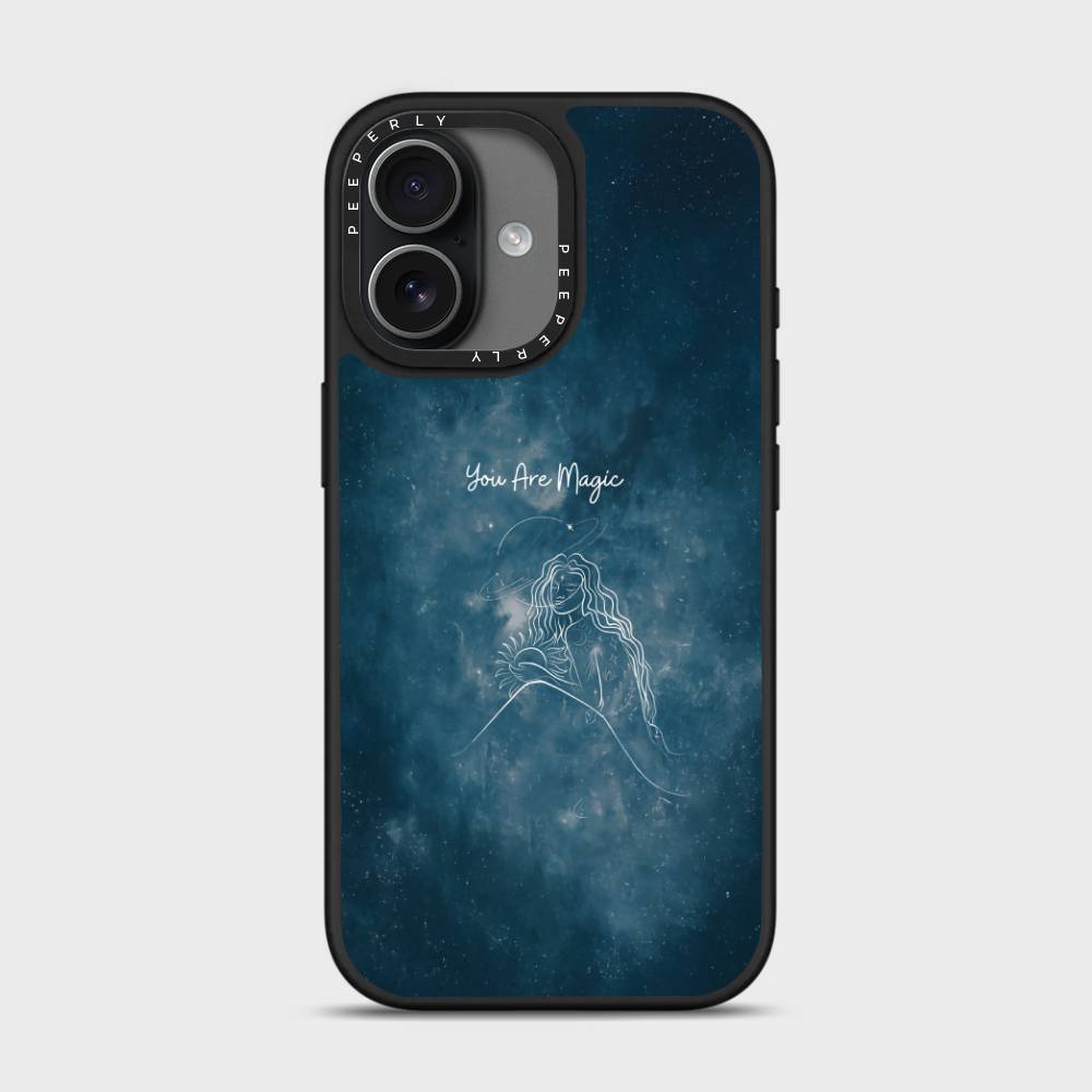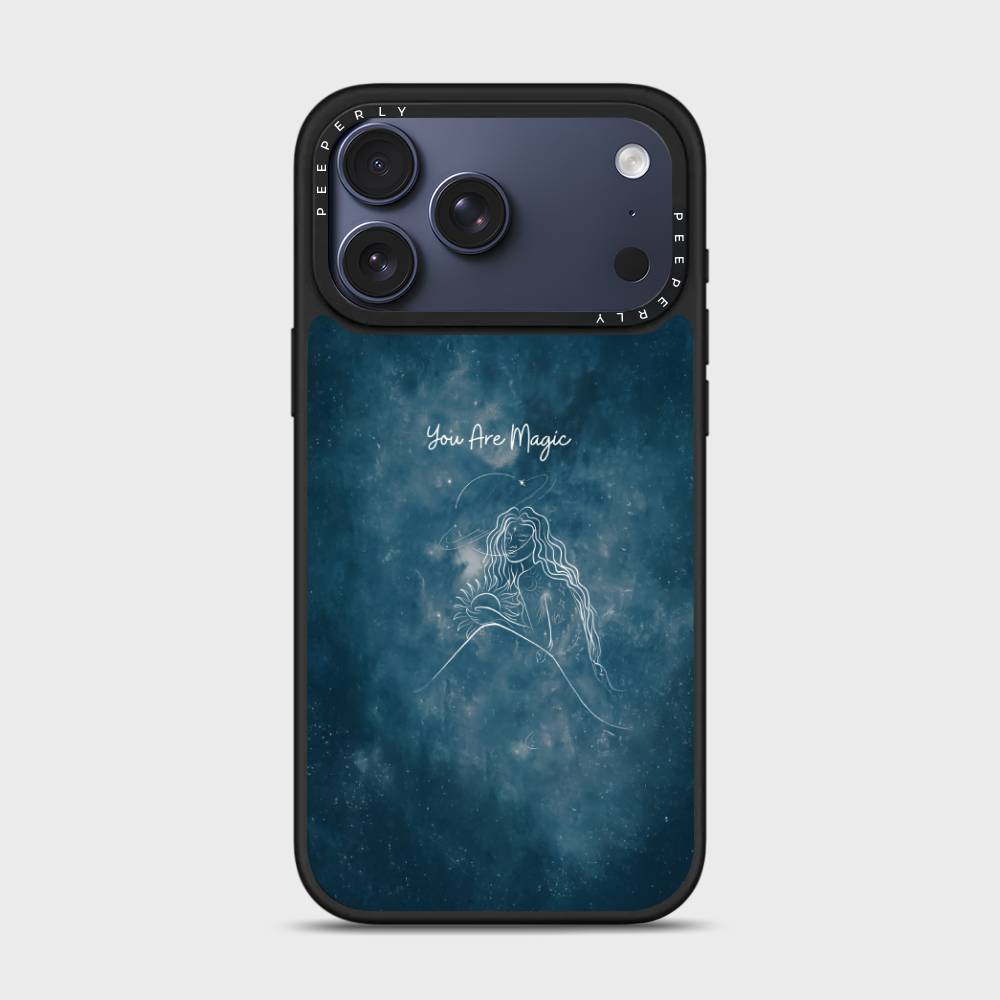 Let your phone reflect the magic you hold inside with the You Are Magic case — a celestial design that celebrates inner light, cosmic beauty, and quiet strength. Set against a deep galaxy-blue background, this case features a delicate white line illustration of a serene celestial woman surrounded by stars, planets, and a glowing sun — a reminder that you are both grounded and infinite.