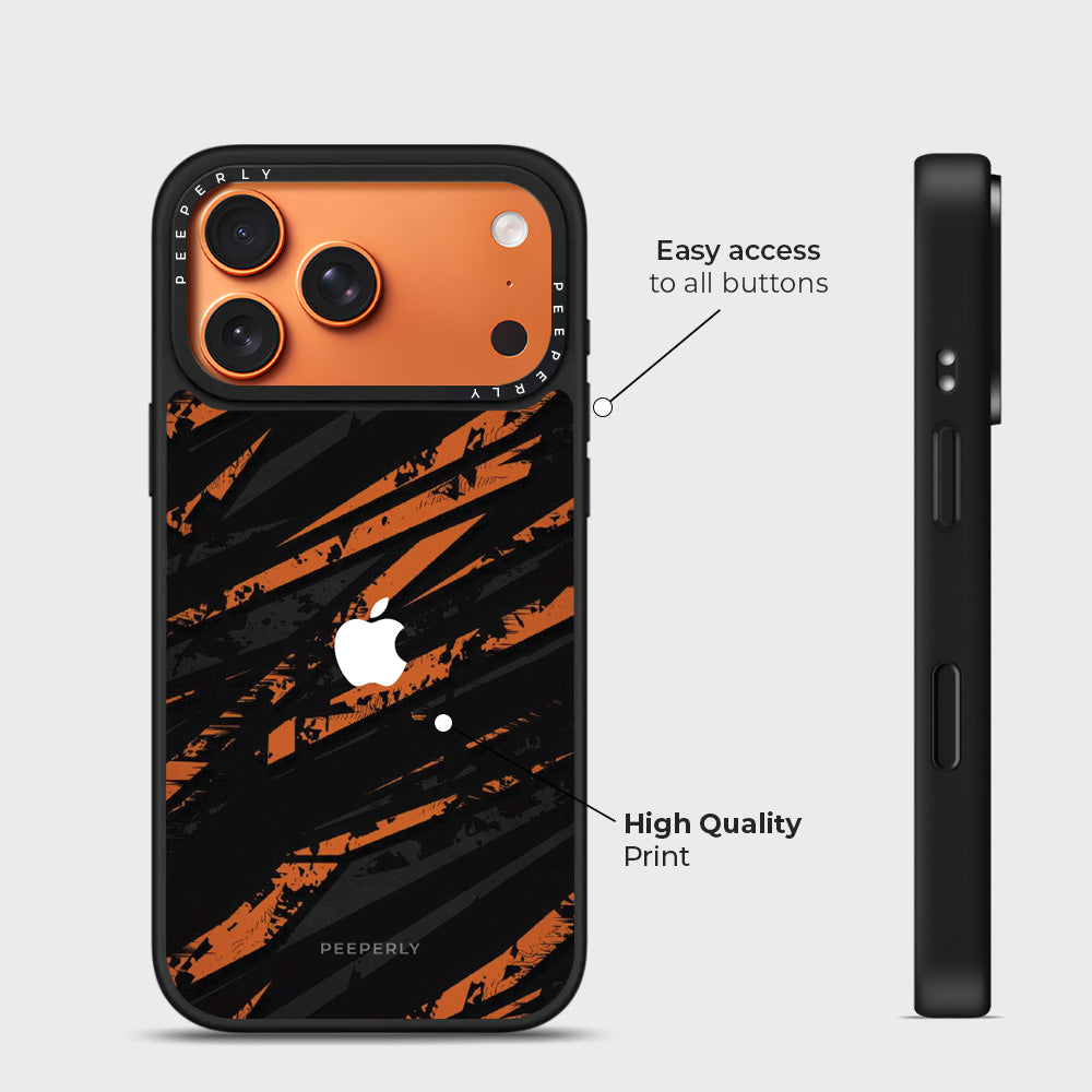 Unleash raw energy with Blaze Strike — a phone case designed for those who thrive on boldness and intensity. Its dynamic black-and-orange streaks capture the essence of motion and power, resembling fiery trails cutting through the night.