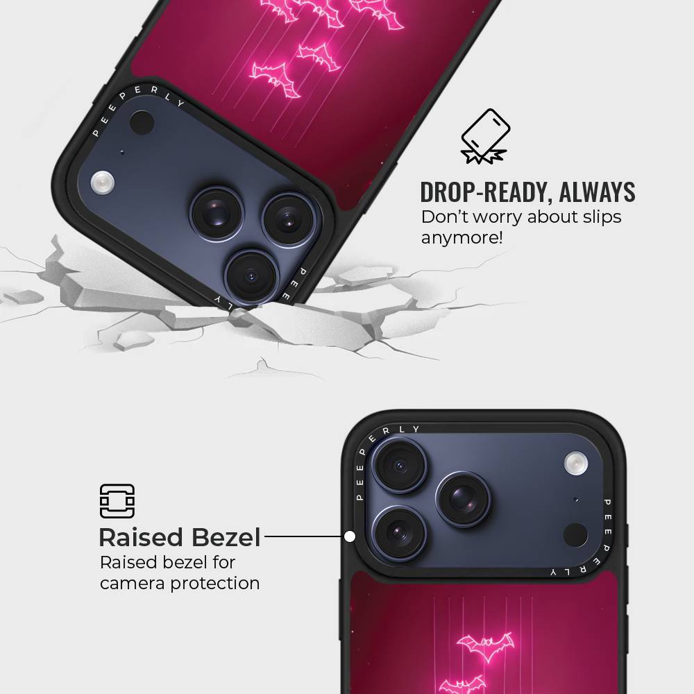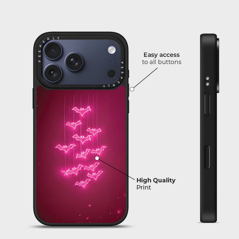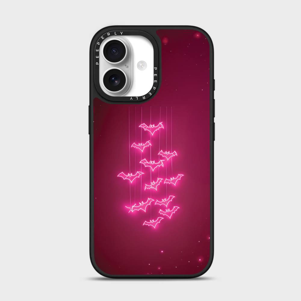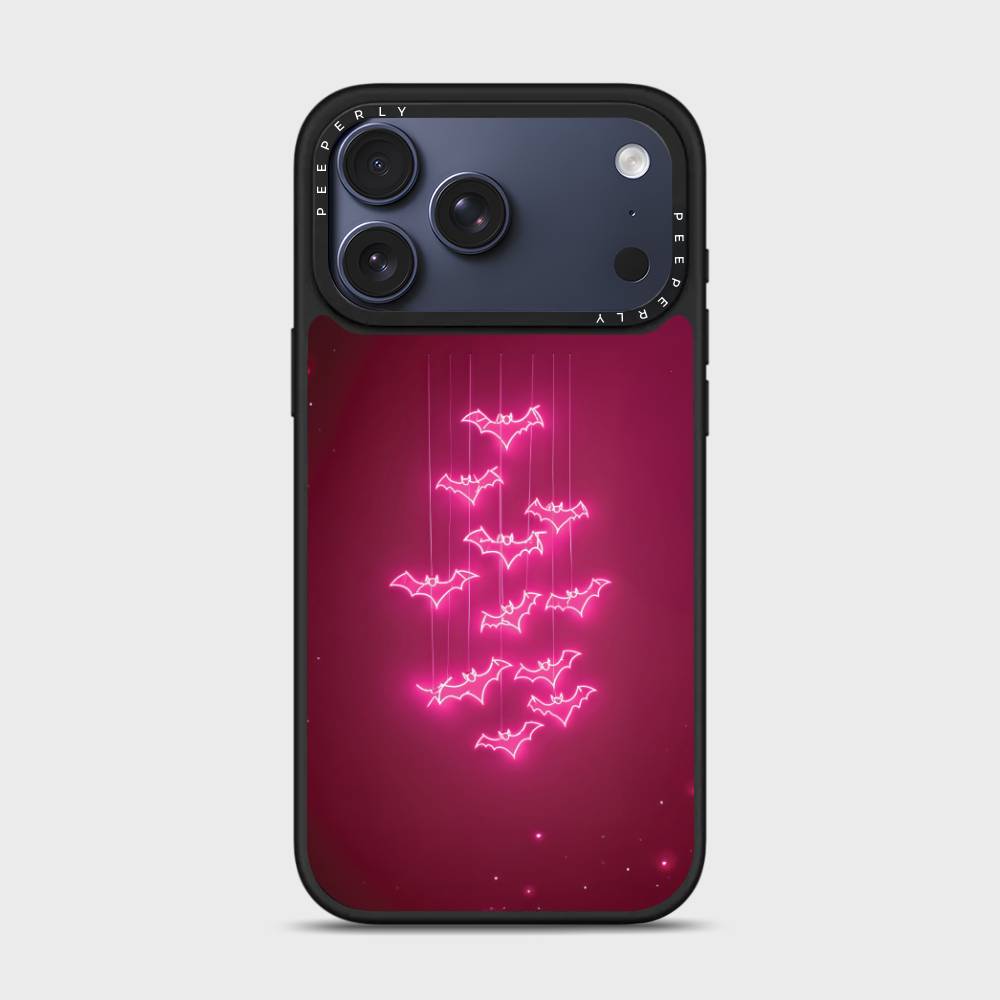 Fuchsia Flight captures the thrill of midnight skies with a playful twist. Neon-bright bats glide downward across a rich fuchsia backdrop, creating a dazzling glow-in-the-dark vibe. Perfect for anyone who loves bold, edgy, and vibrant designs, this case adds a pop of electric energy while keeping your phone protected in style.