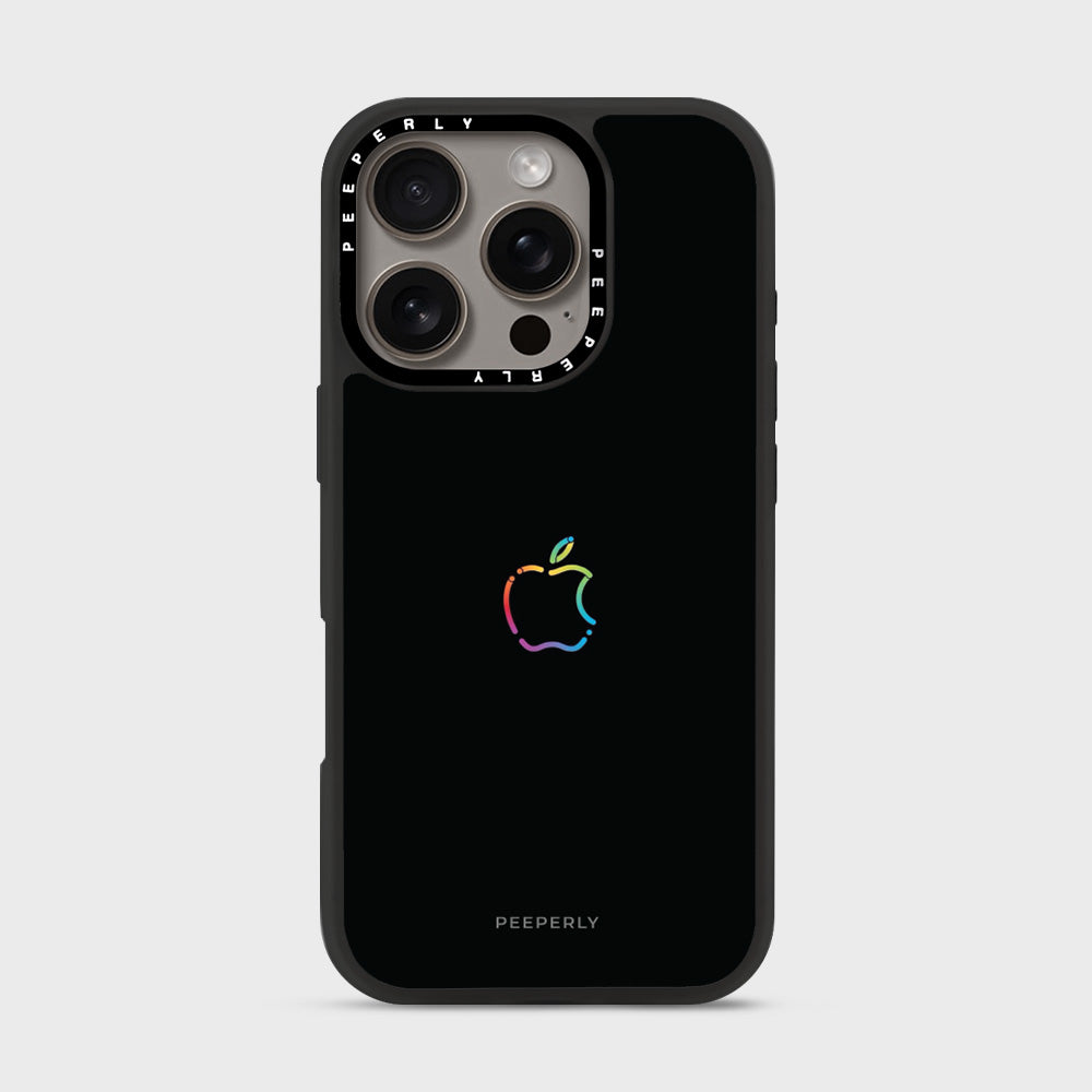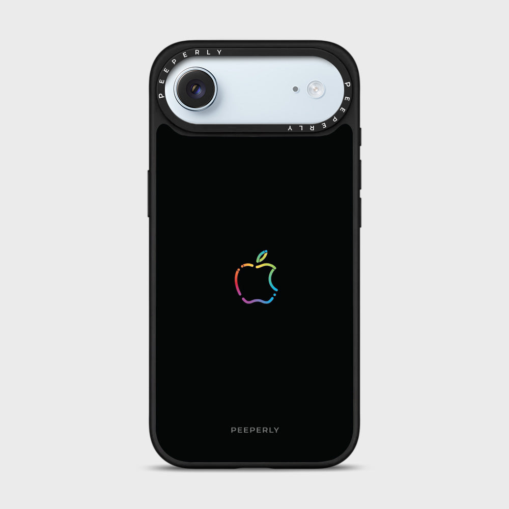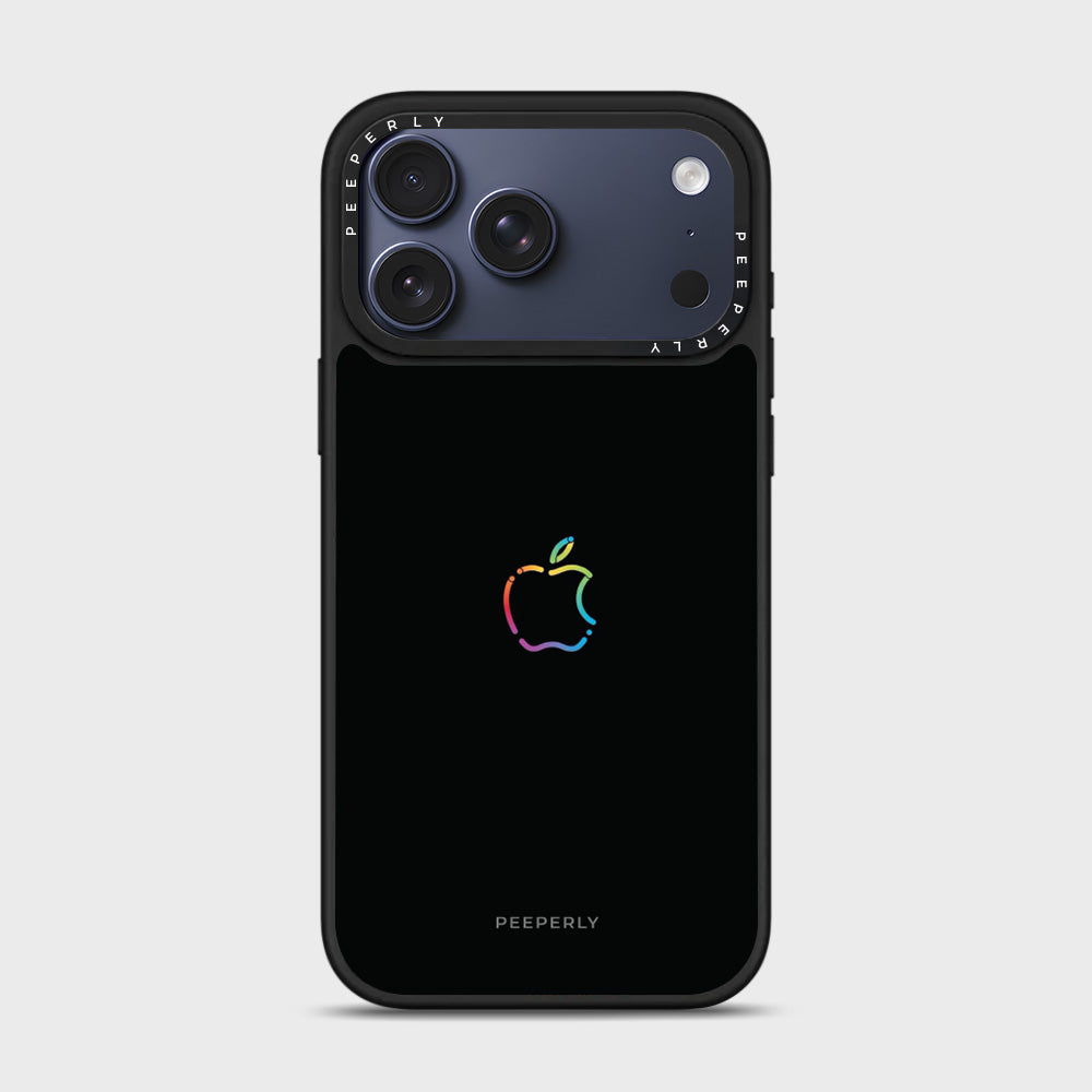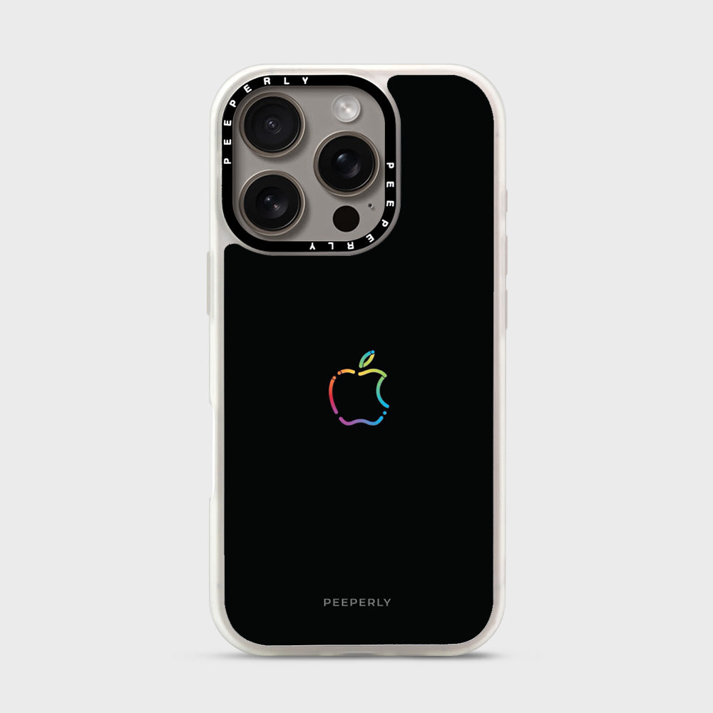 The Prism Outline case celebrates minimalism with a touch of radiant creativity. At its center lies the iconic Apple silhouette — outlined in a shimmering rainbow gradient that catches light from every angle, adding a dynamic, iridescent glow against the deep black backdrop.