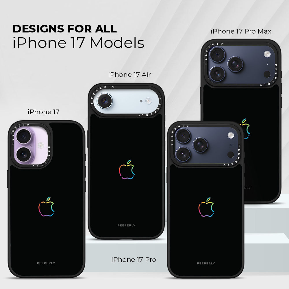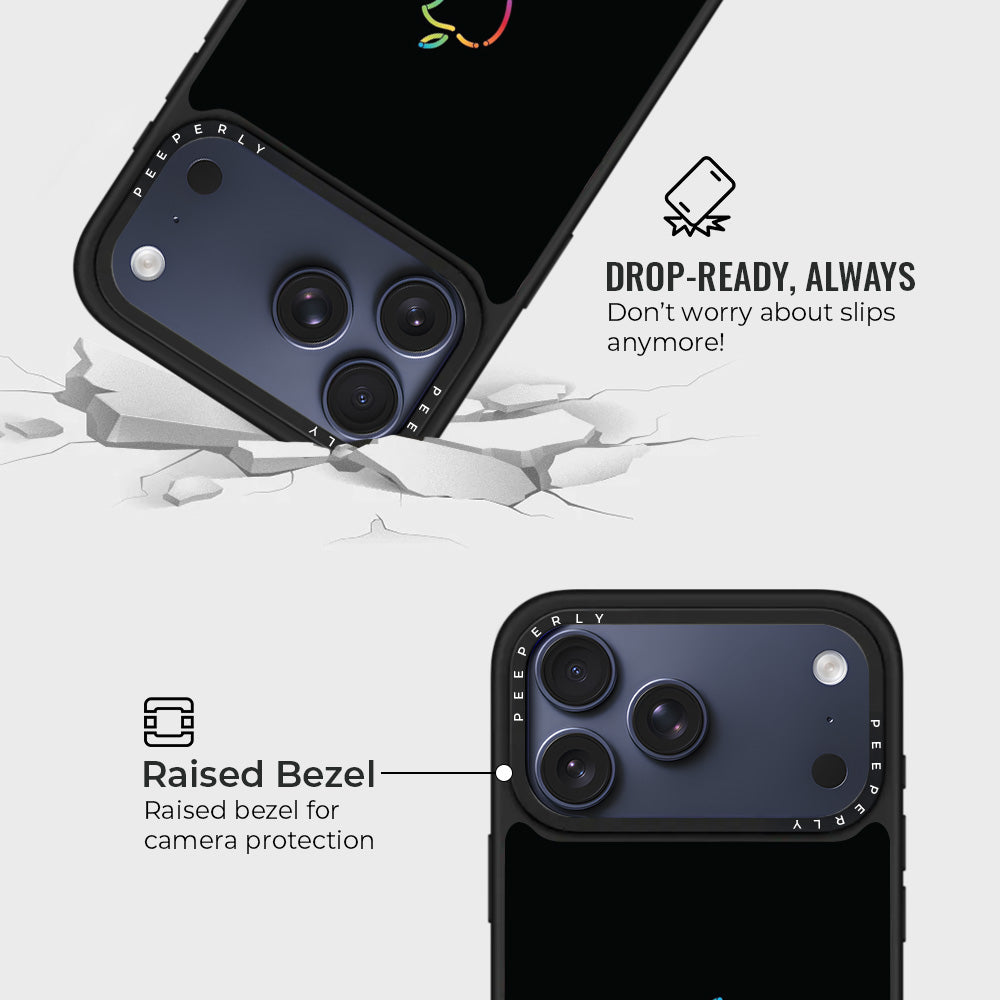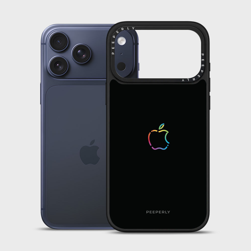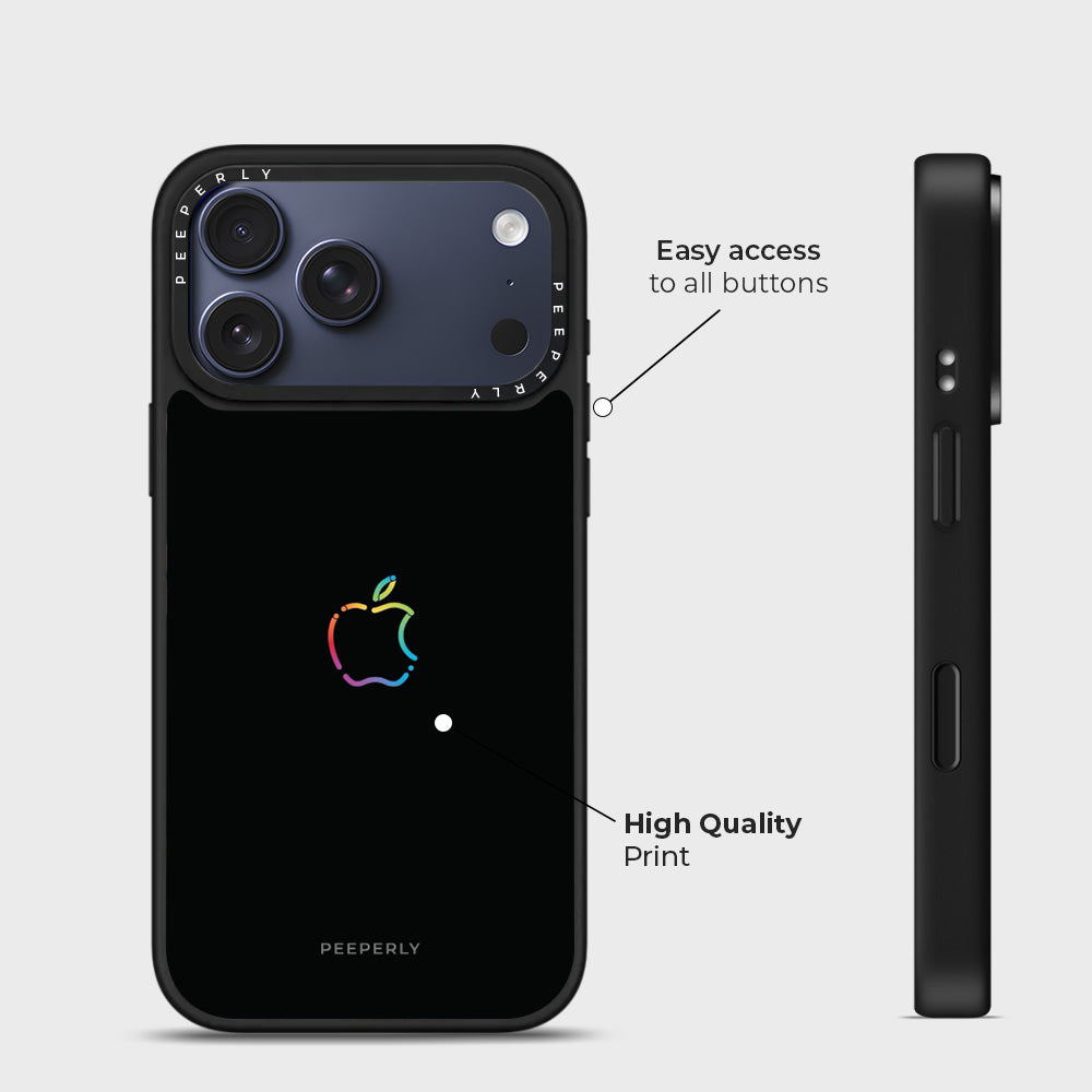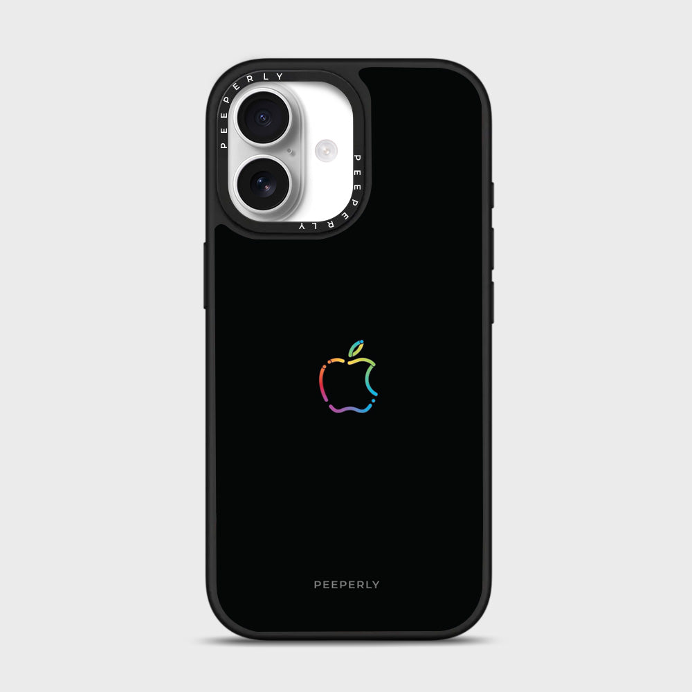 The Prism Outline case celebrates minimalism with a touch of radiant creativity. At its center lies the iconic Apple silhouette — outlined in a shimmering rainbow gradient that catches light from every angle, adding a dynamic, iridescent glow against the deep black backdrop.