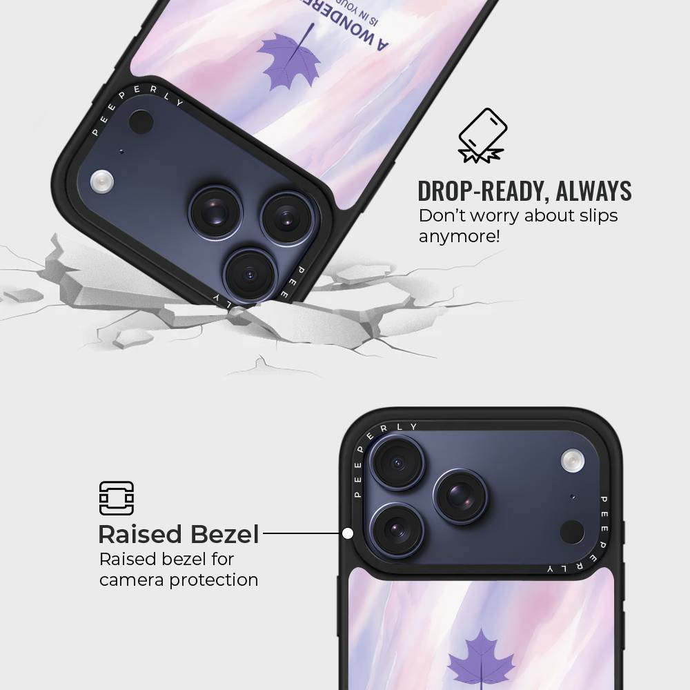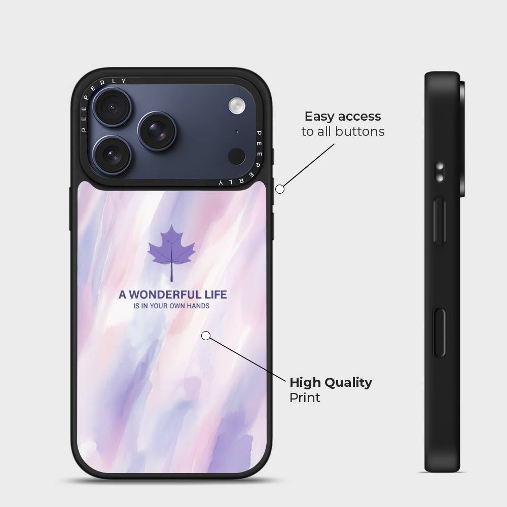 Unleash your potential with the Maple Leaf Case — a perfect fusion of elegance and empowerment. Featuring a soothing watercolor blend of lavender, blush, and sky tones, accented with a minimalist maple leaf, this case inspires calm confidence every time you hold your phone. The central message, “A Wonderful Life Is In Your Own Hands,” serves as a daily nudge toward intentional living, self-belief, and purpose.