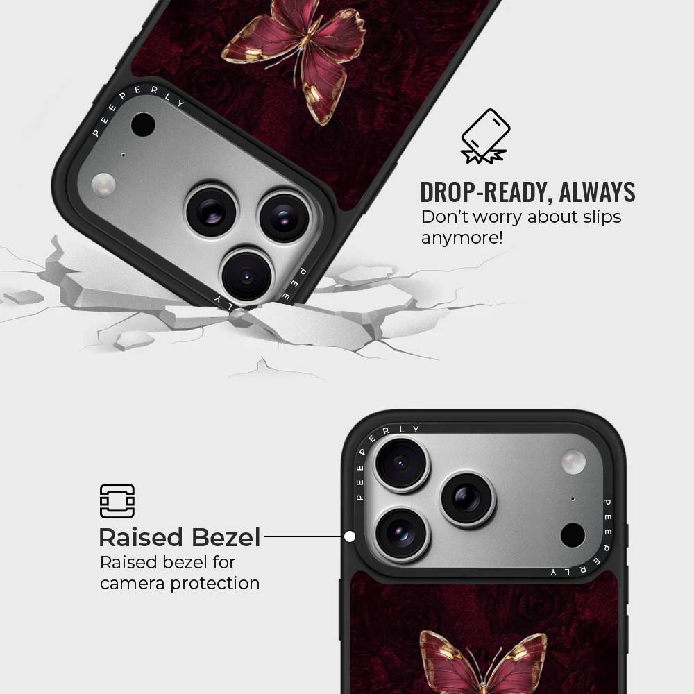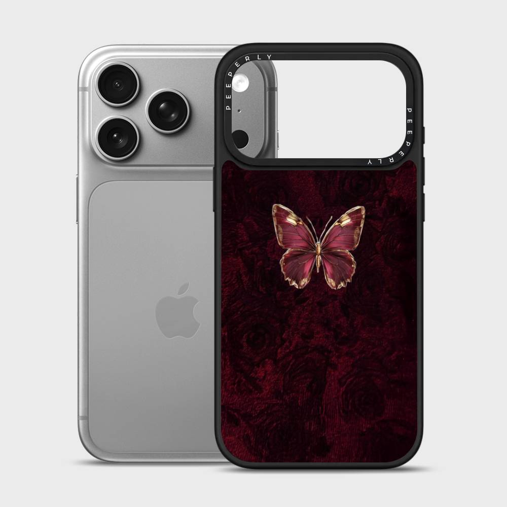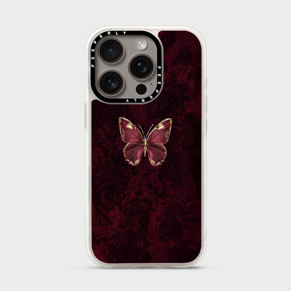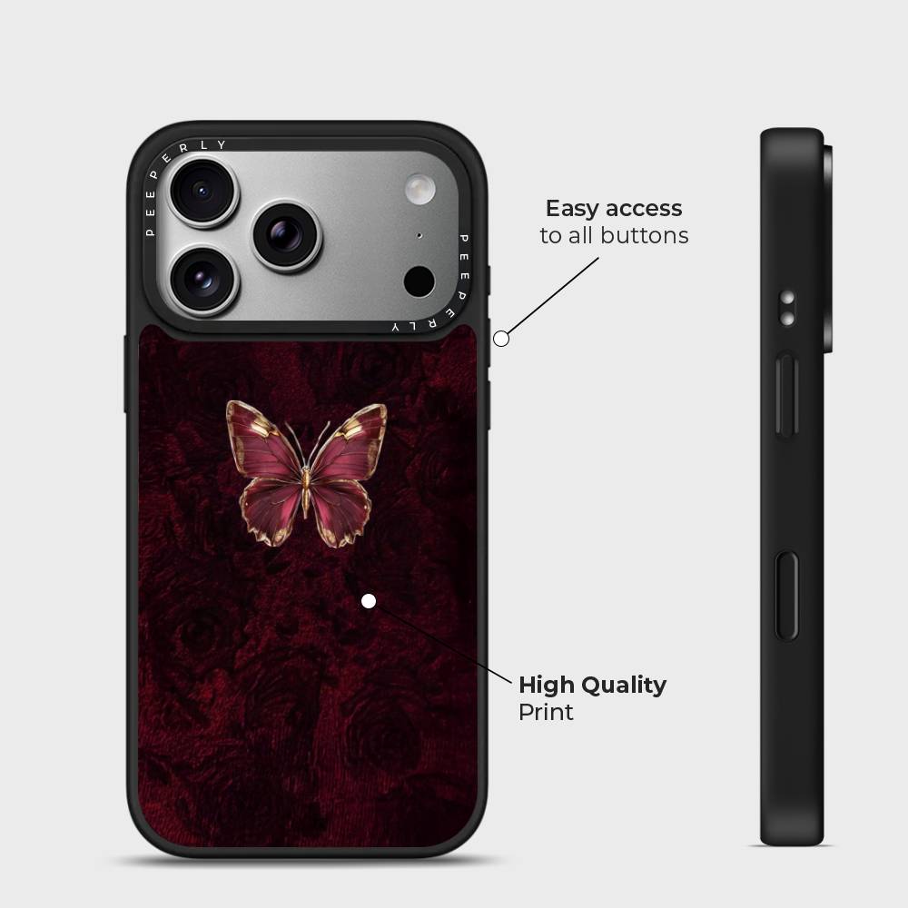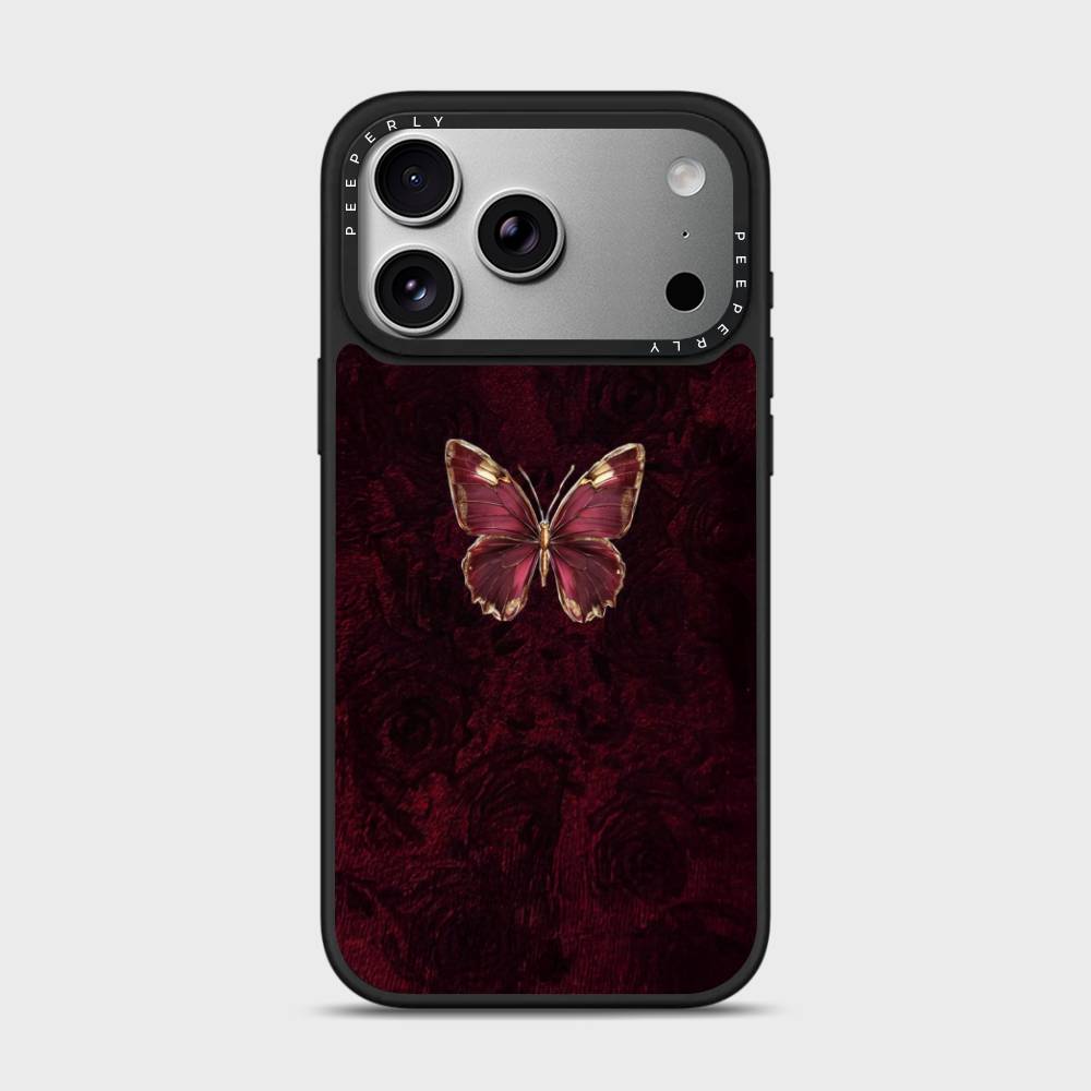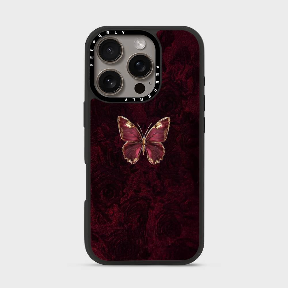Ruby Metamorph symbolizes transformation wrapped in luxury—an elegant butterfly rendered in rich ruby tones with golden accents, emerging against a deep, velvety backdrop. The design evokes rebirth, power, and refinement, blending dramatic beauty with a sense of timeless sophistication.