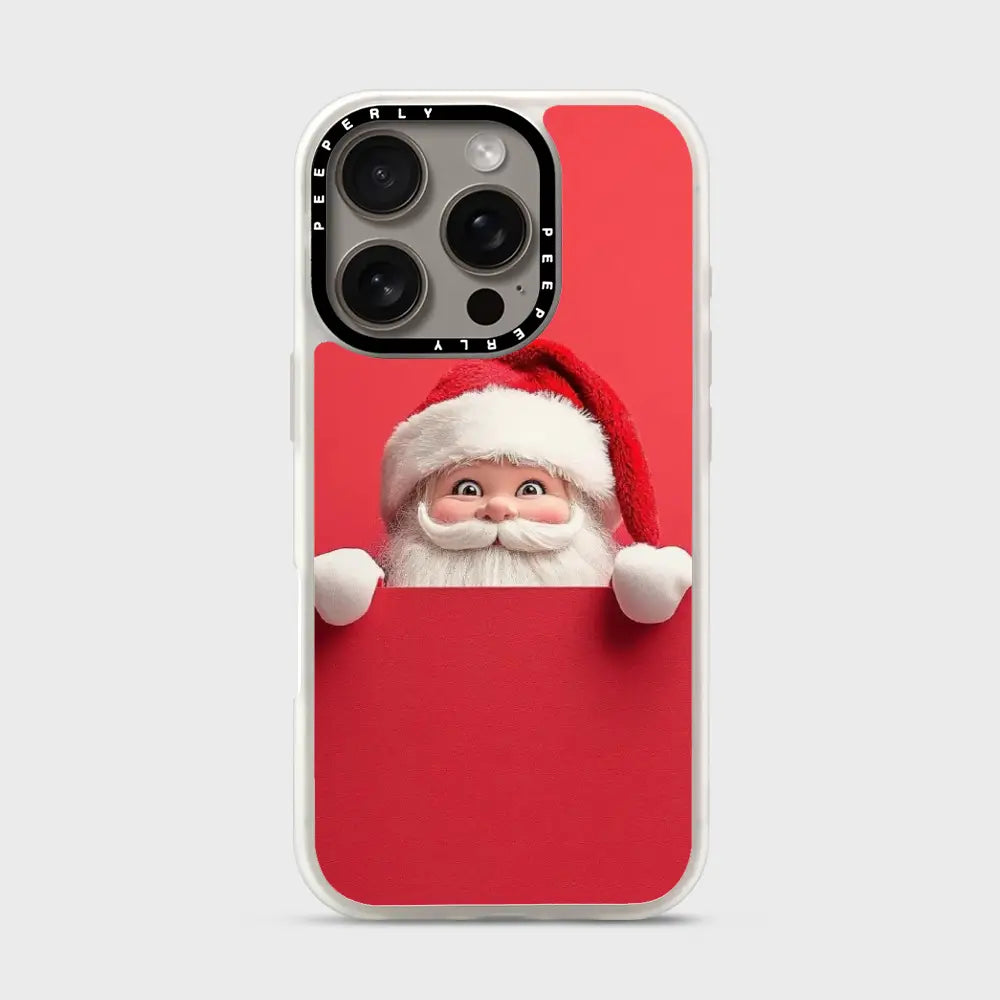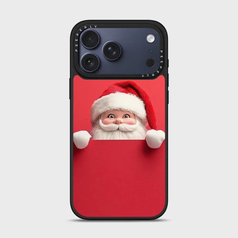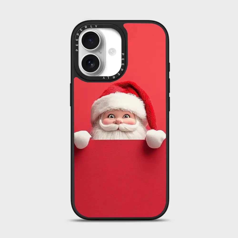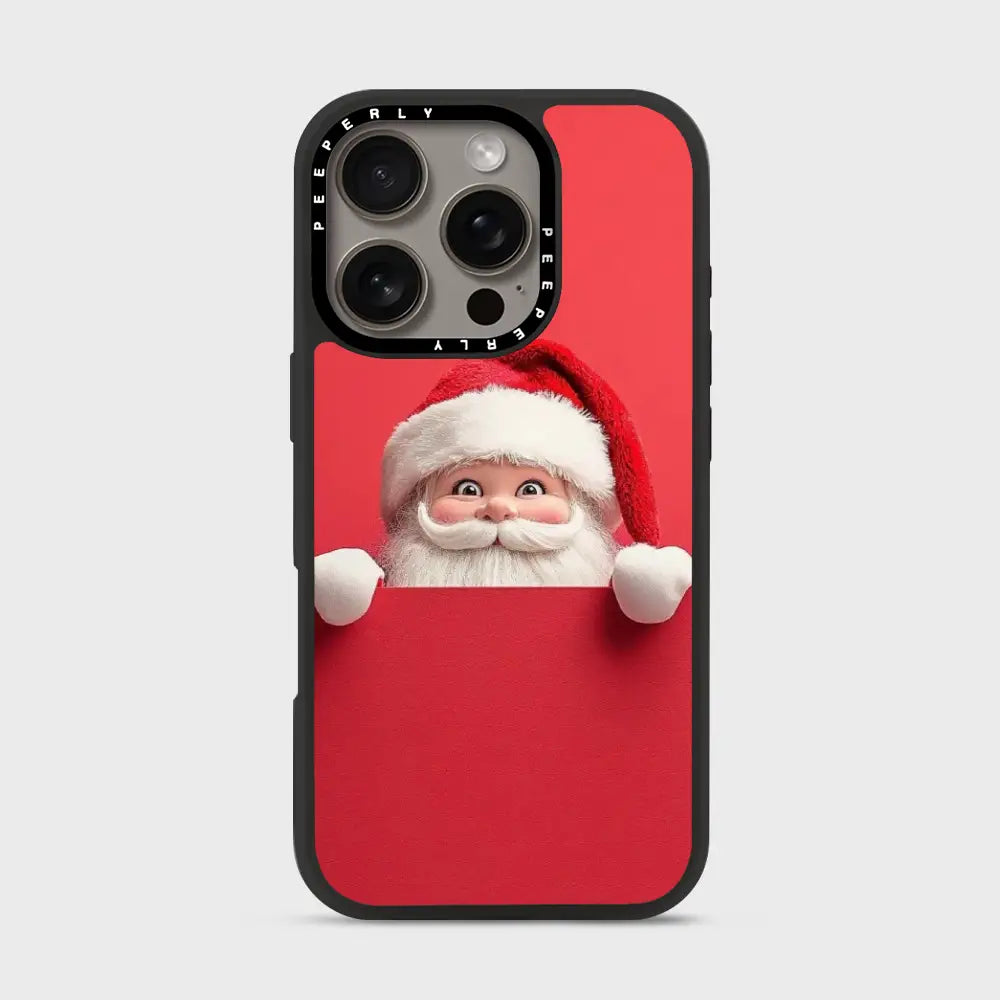 Add a joyful twist to your holiday style with the Santa Surprise phone case. Featuring a playful peek-a-boo Santa design against a rich festive red backdrop, this case captures the magic and fun of the Christmas season.