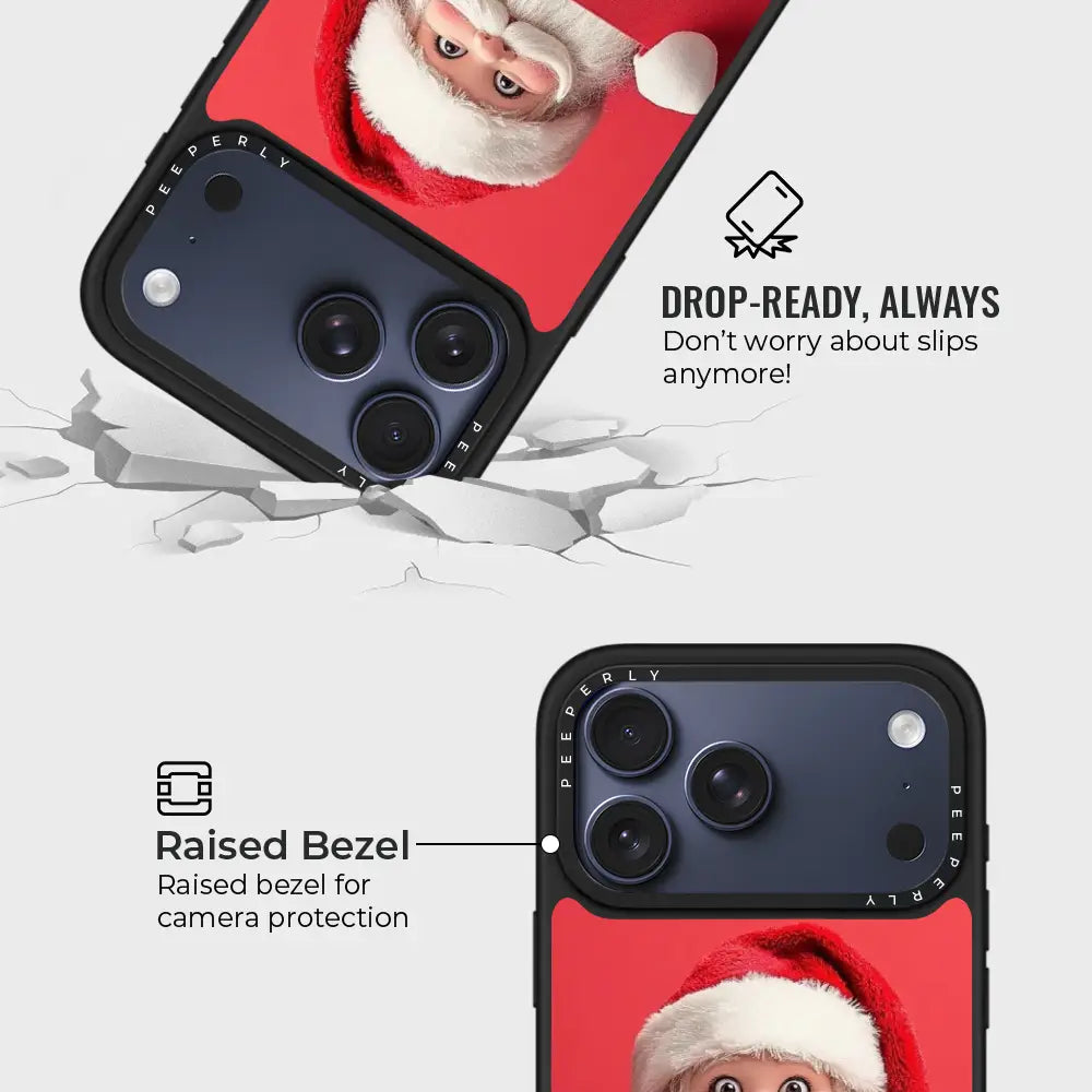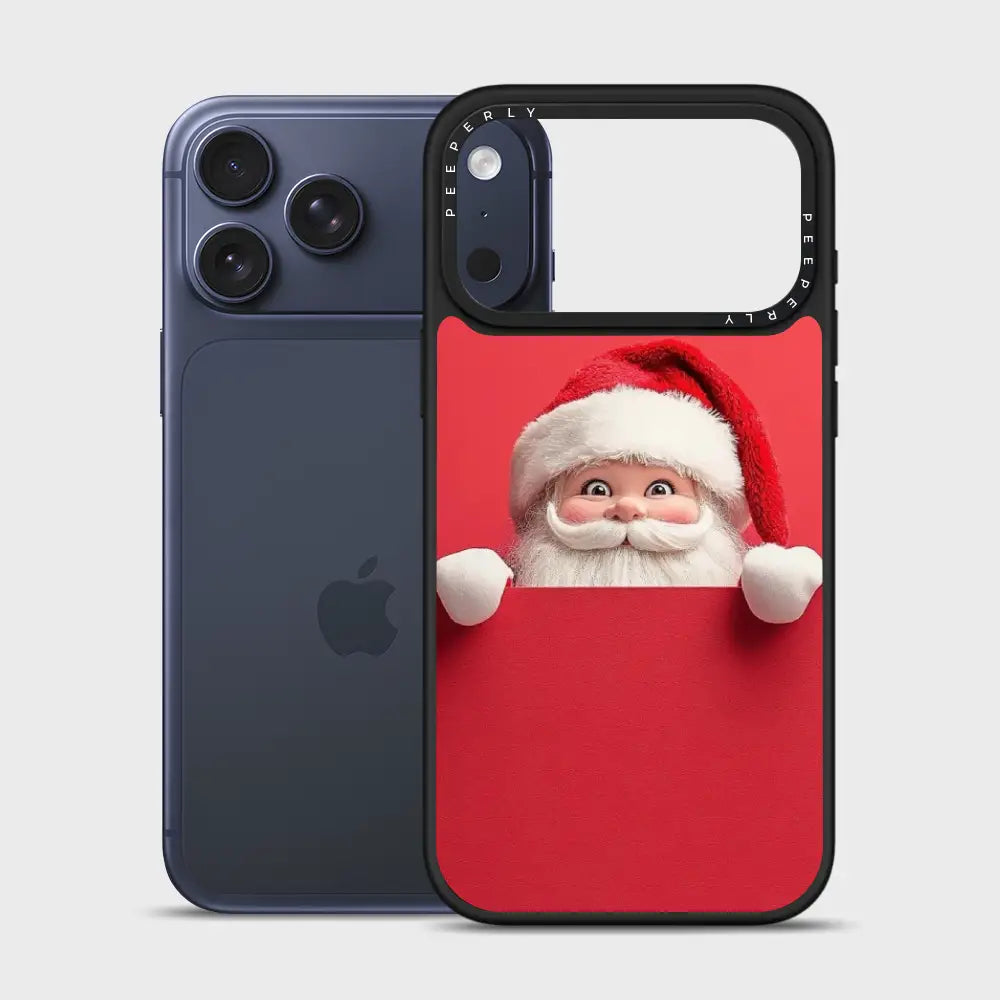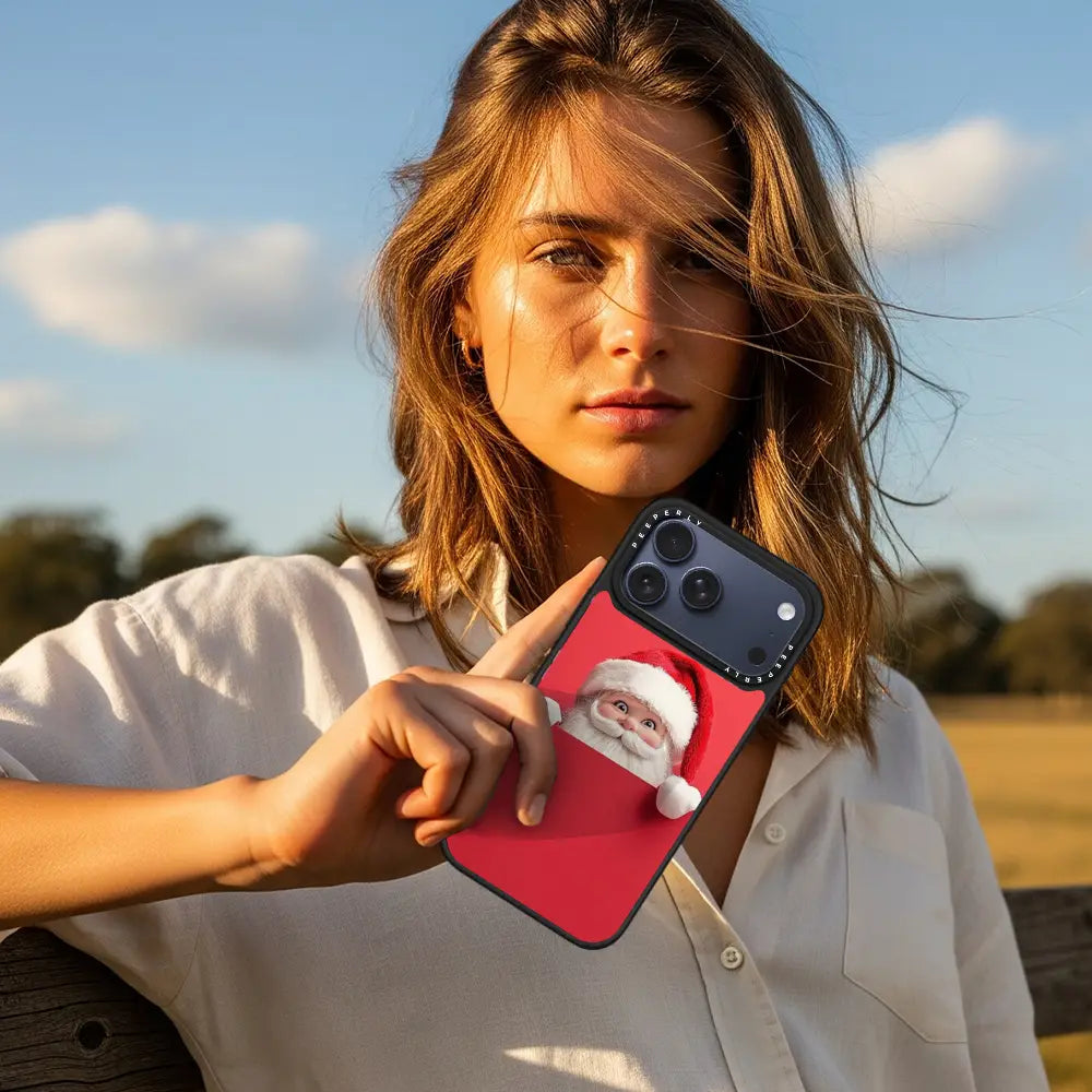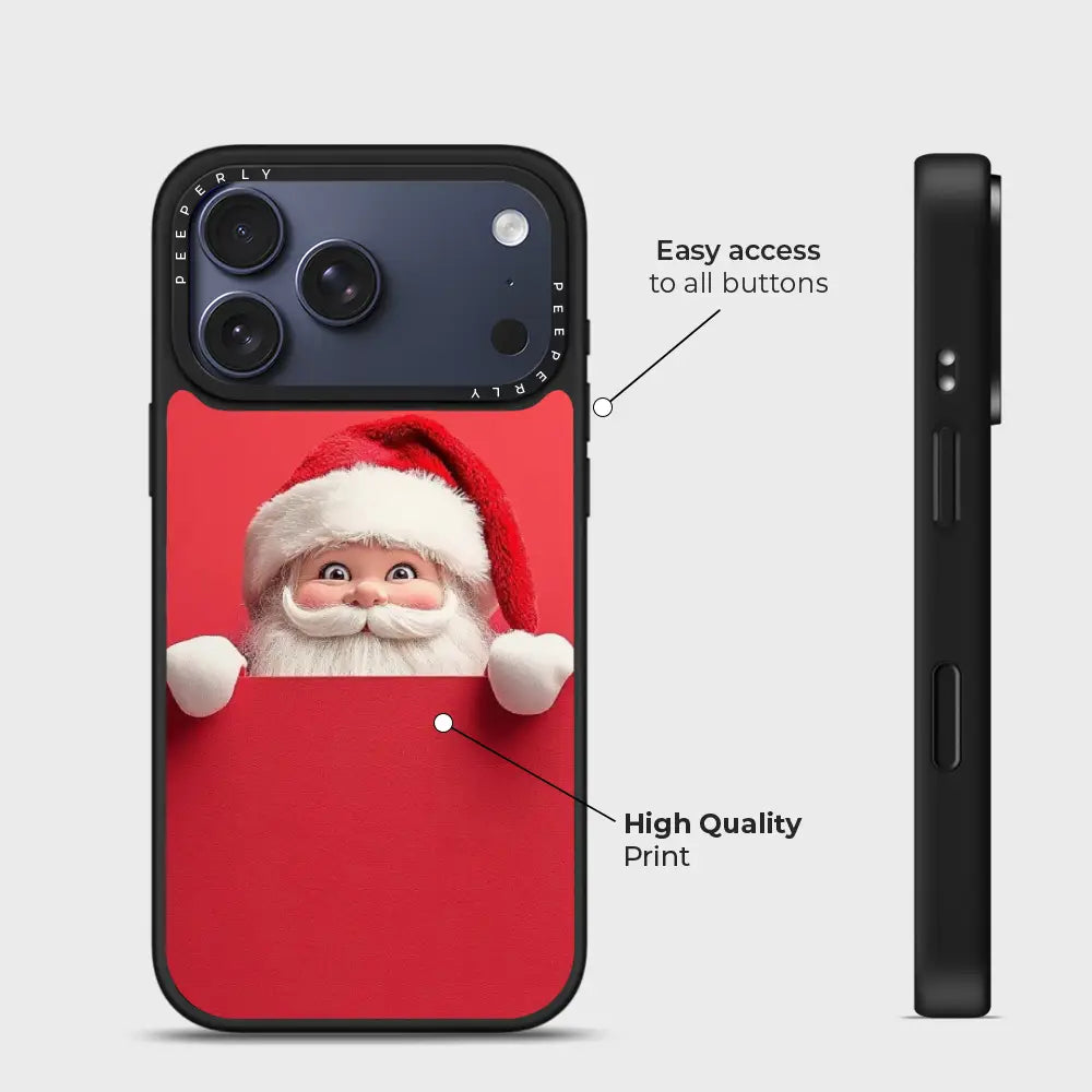 Add a joyful twist to your holiday style with the Santa Surprise phone case. Featuring a playful peek-a-boo Santa design against a rich festive red backdrop, this case captures the magic and fun of the Christmas season.