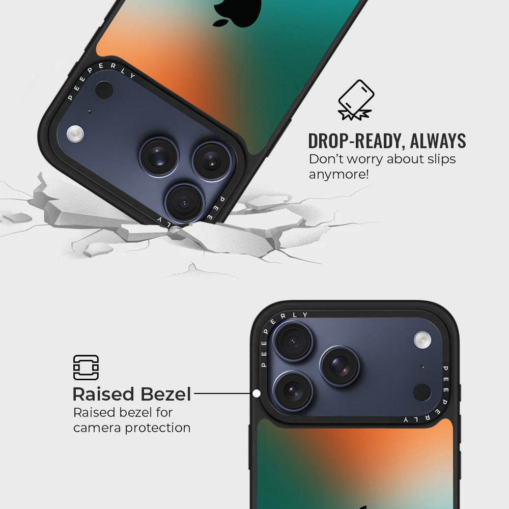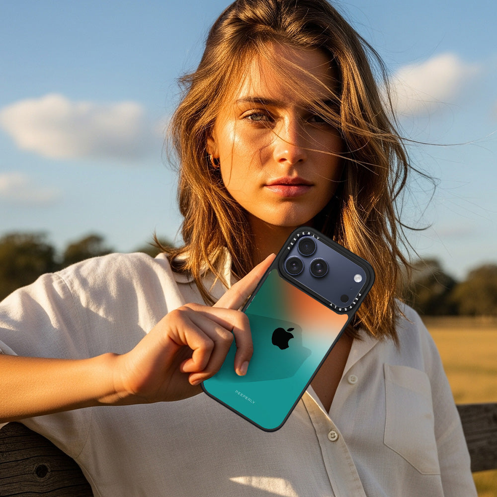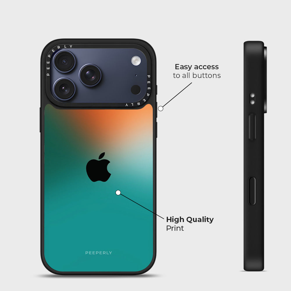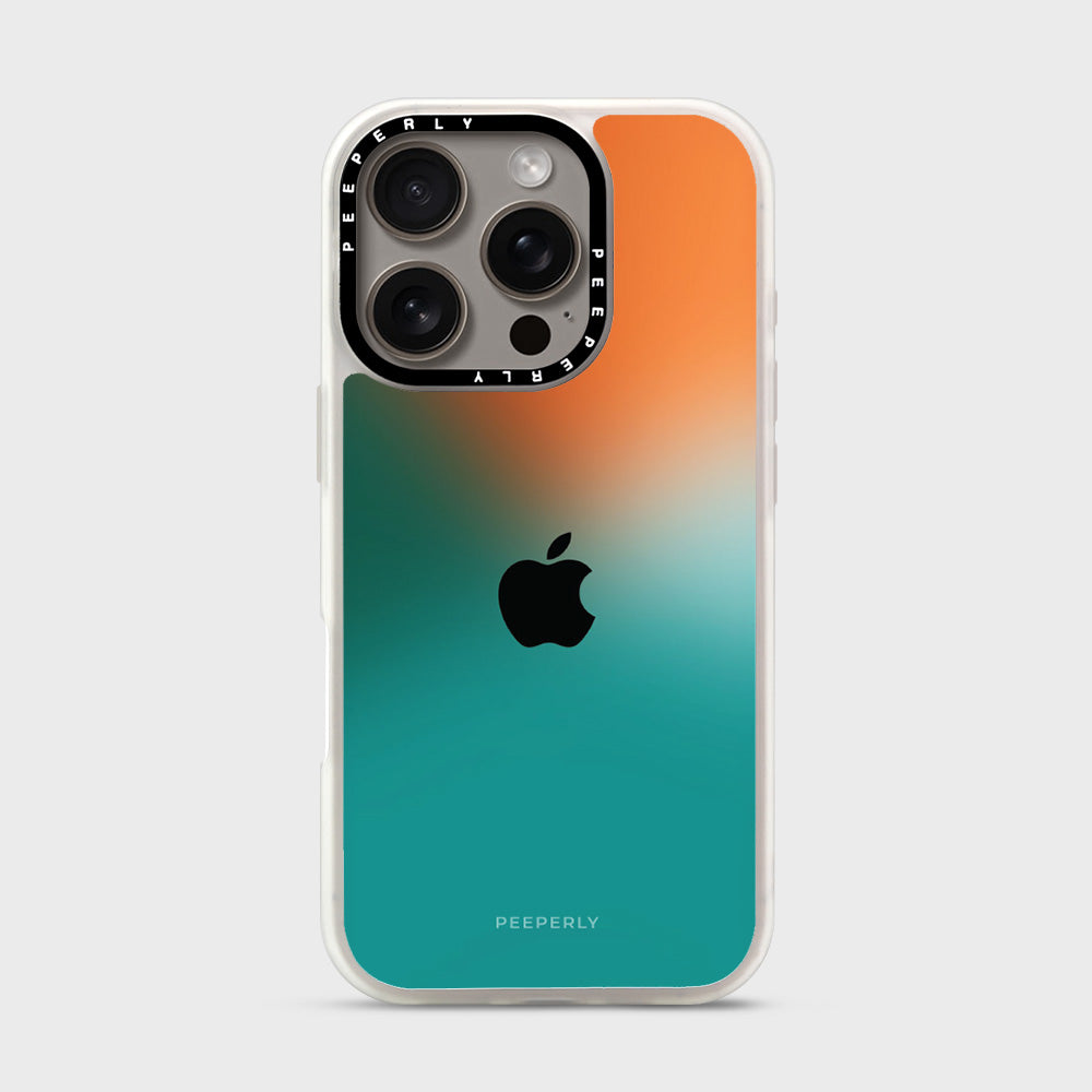 The Solar Verge case captures the magic of a golden sunset melting into tranquil ocean tones. With a seamless gradient that blends radiant orange and soothing teal, this design embodies balance — bold yet calm, energetic yet refined.