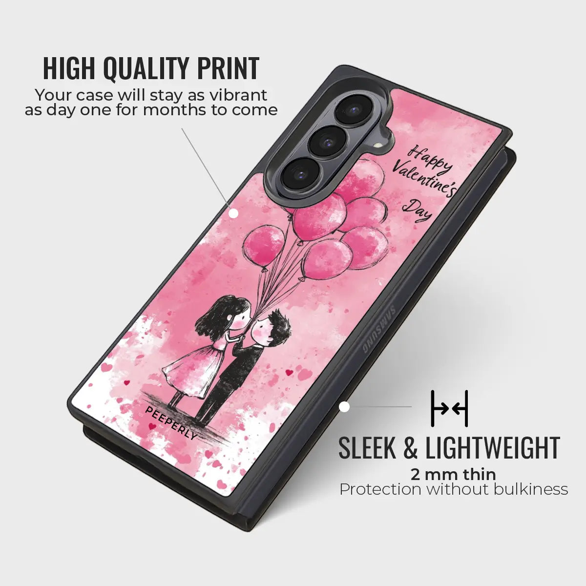 Forever Float is a romantic phone case featuring a delicate illustration of a couple lifted by soft pink heart balloons. The watercolor-style design creates a dreamy, storybook feel that captures love in its most tender moments.