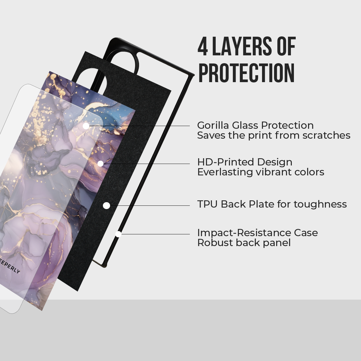 - TPU Back Plate – Tough yet flexible layer for shock absorption.