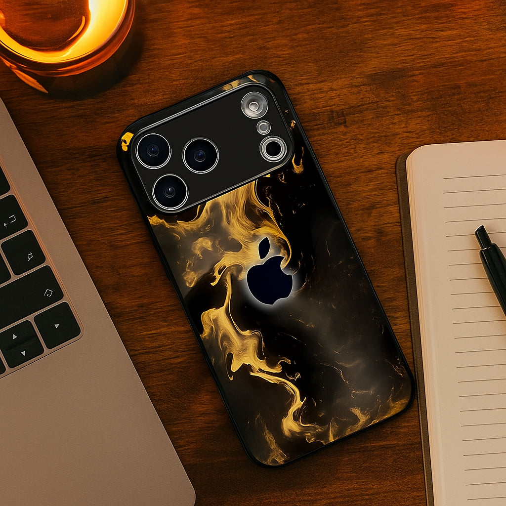 Experience the captivating allure of Golden Eclipse — a design that mirrors the rare beauty of light piercing through darkness. The deep black base is illuminated by molten gold swirls that dance like solar flares across the surface, creating an aura of luxury and mystique.
