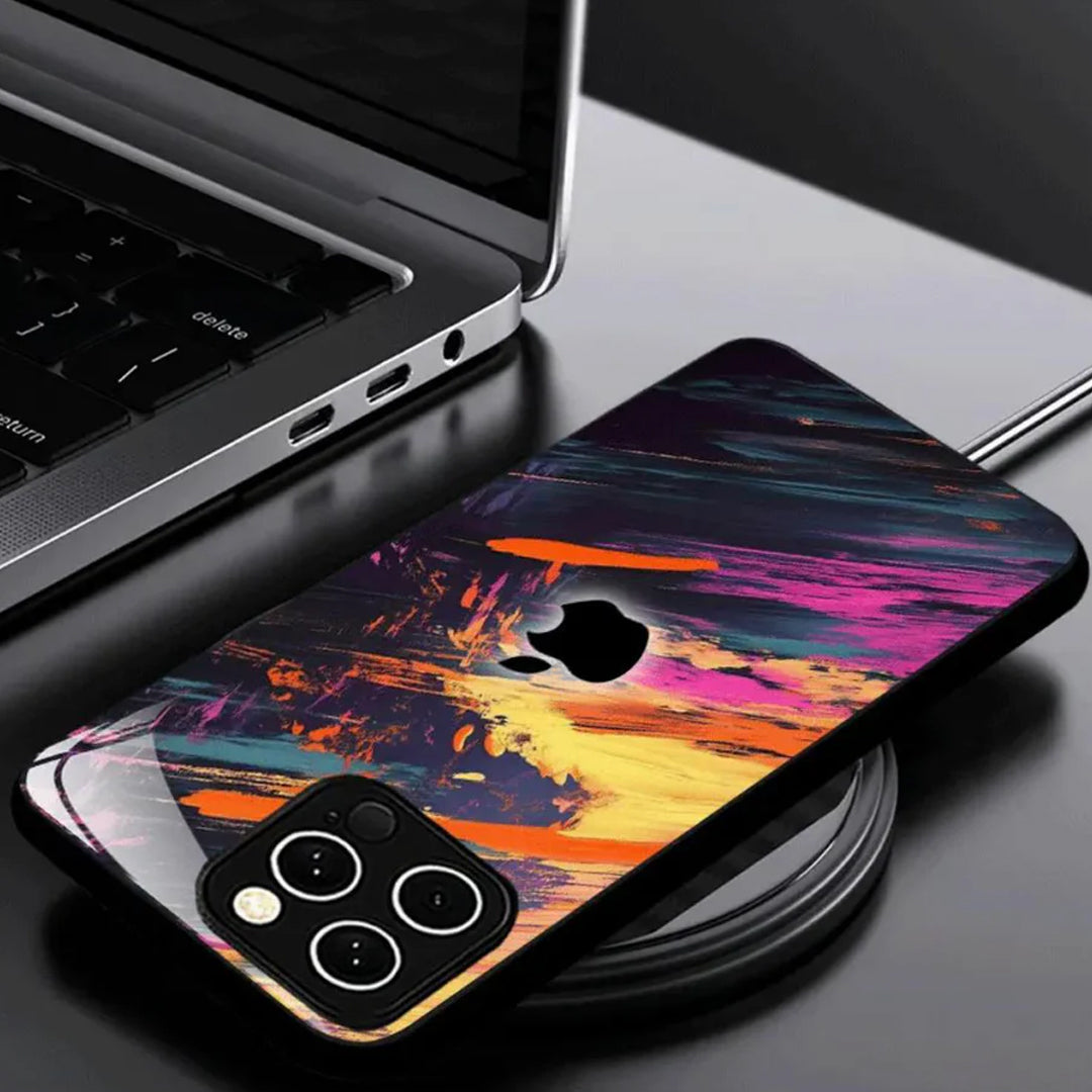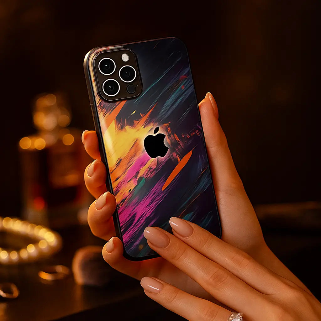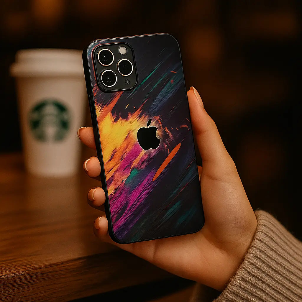 The Prism Rush case is where energy meets artistry — a vivid explosion of neon streaks in fiery orange, fuchsia, violet, and teal cascading across a sleek, black canvas. It captures the pulse of creativity and speed, like a brushstroke frozen in motion.