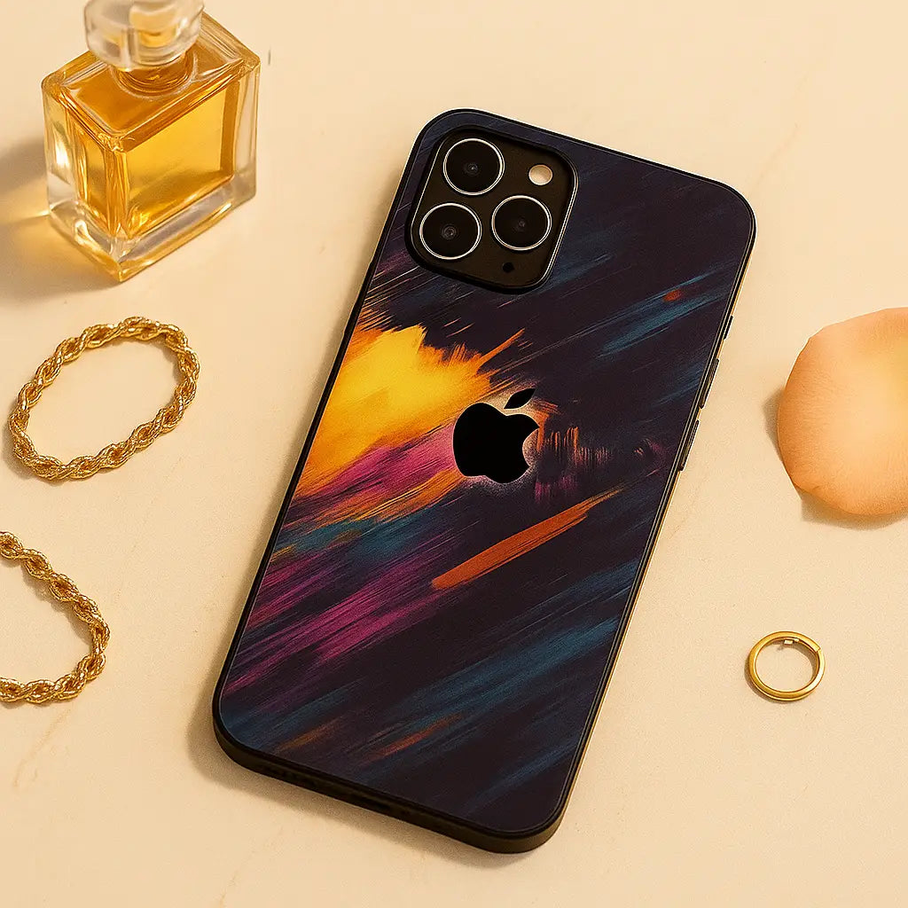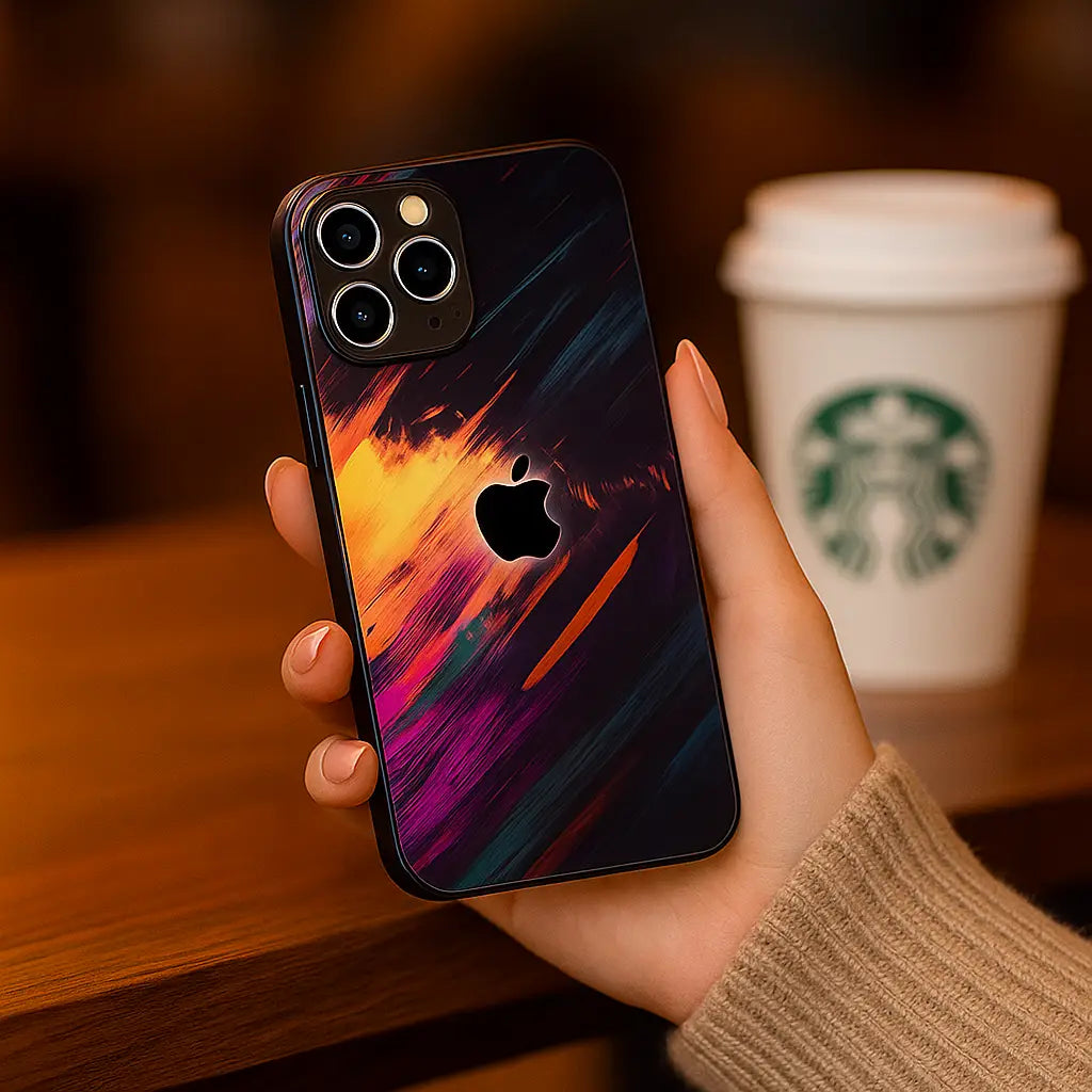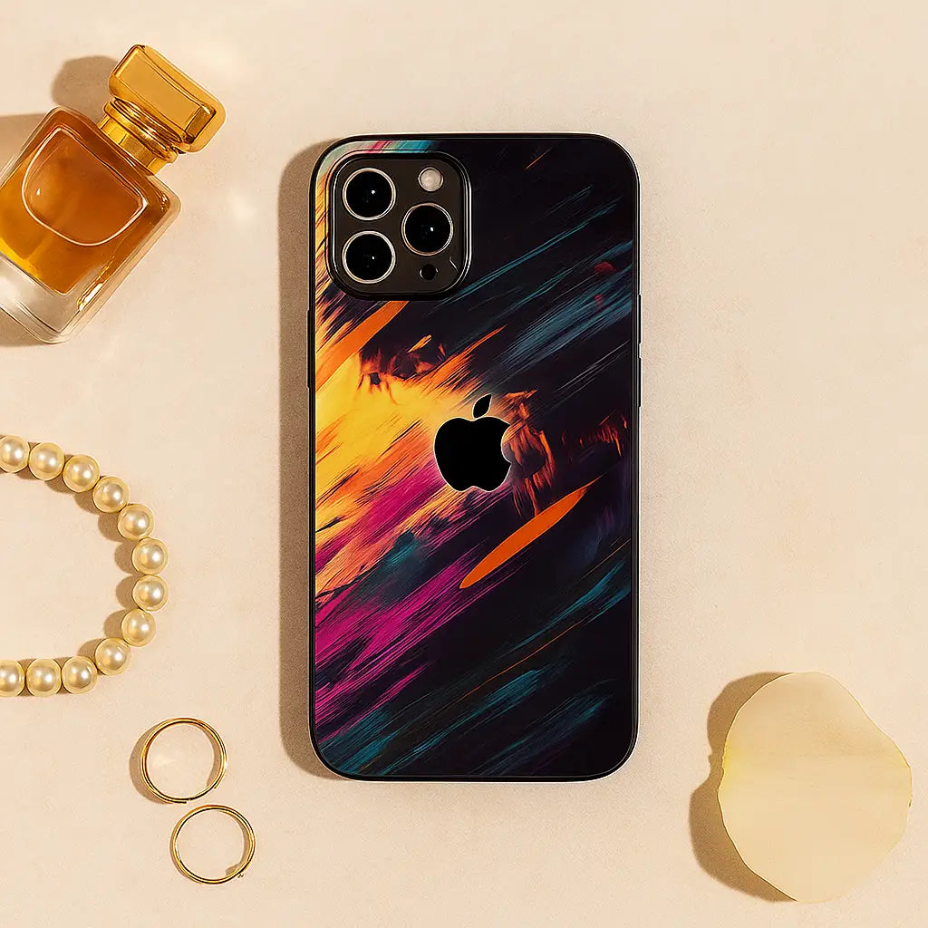 The Prism Rush case is where energy meets artistry — a vivid explosion of neon streaks in fiery orange, fuchsia, violet, and teal cascading across a sleek, black canvas. It captures the pulse of creativity and speed, like a brushstroke frozen in motion.