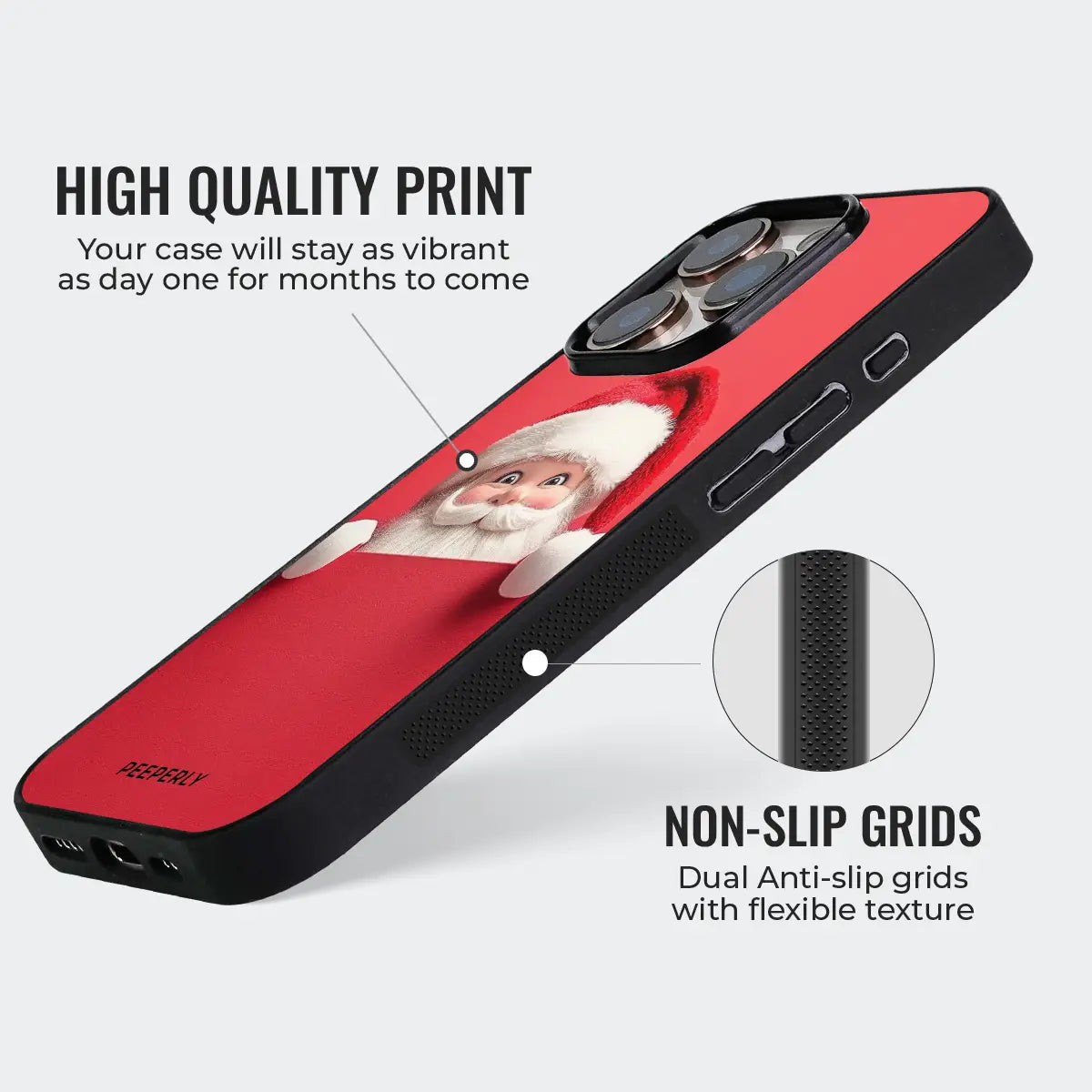Add a joyful twist to your holiday style with the Santa Surprise phone case. Featuring a playful peek-a-boo Santa design against a rich festive red backdrop, this case captures the magic and fun of the Christmas season.