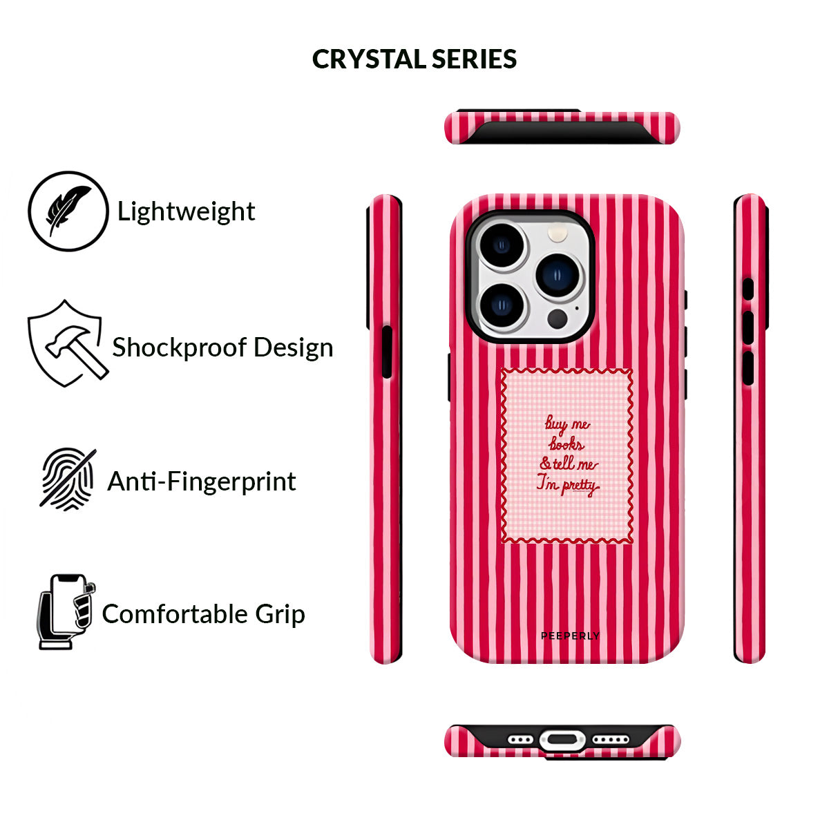 A sweet, cheeky design for the romantics who believe love smells like fresh pages and cozy bookstores. With playful stripes and a flirty quote, this case is perfect for book lovers who adore a little charm, a little sass, and a lot of self-love. Cozy, cute, and irresistibly crush-worthy.