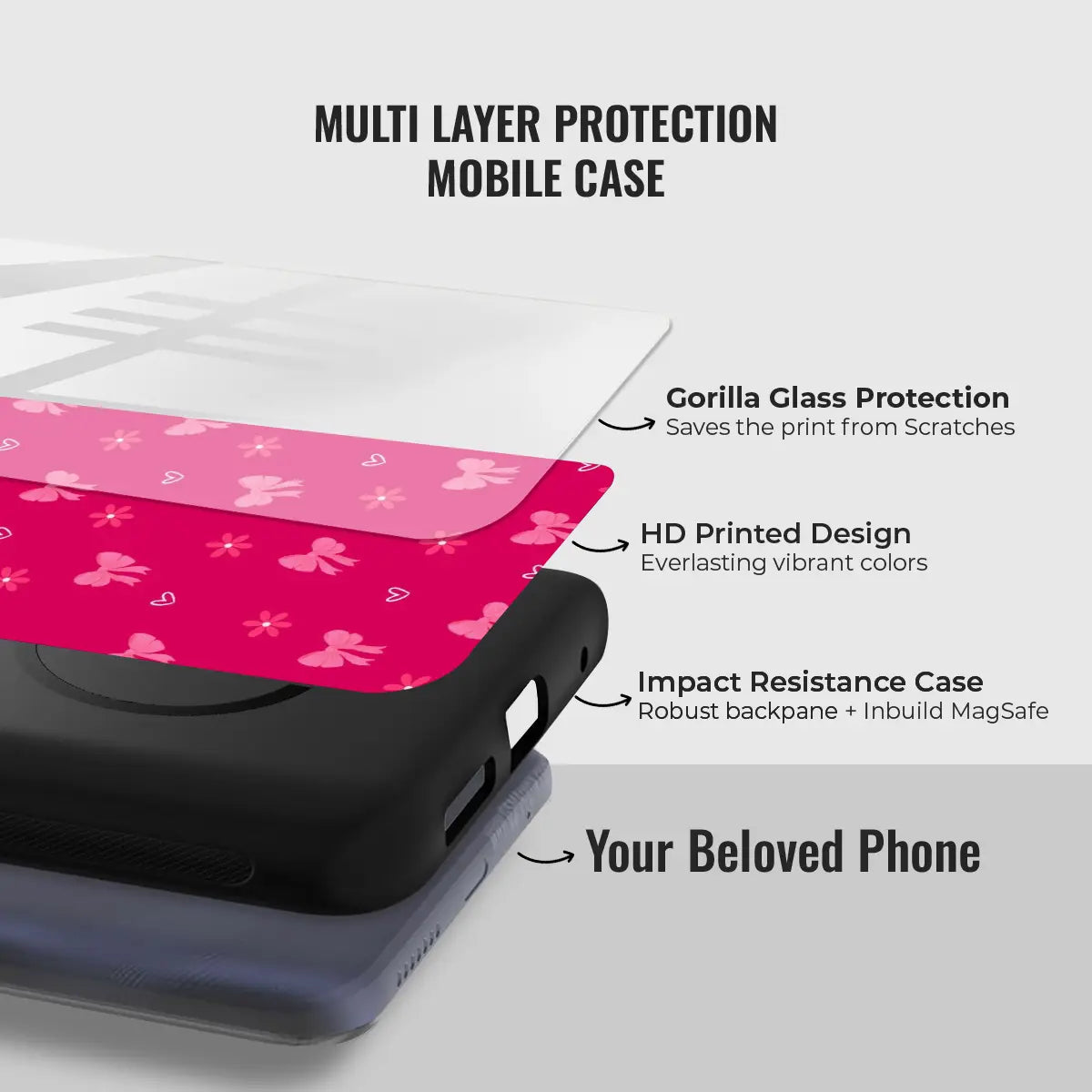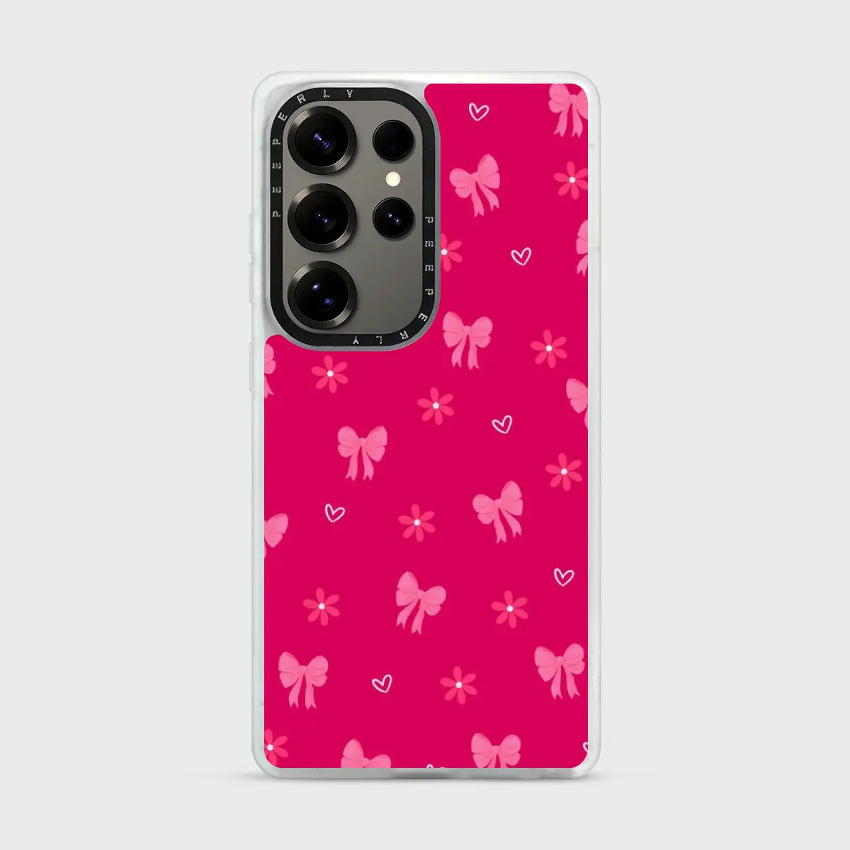 Bow Crush is a playful phone case featuring bright pink tones decorated with charming bow and heart details. The cheerful pattern adds a fun, flirty vibe while keeping the look cute and stylish. Finished with a smooth, durable design for everyday protection, Bow Crush is perfect for anyone who loves bold color and sweet, feminine charm.