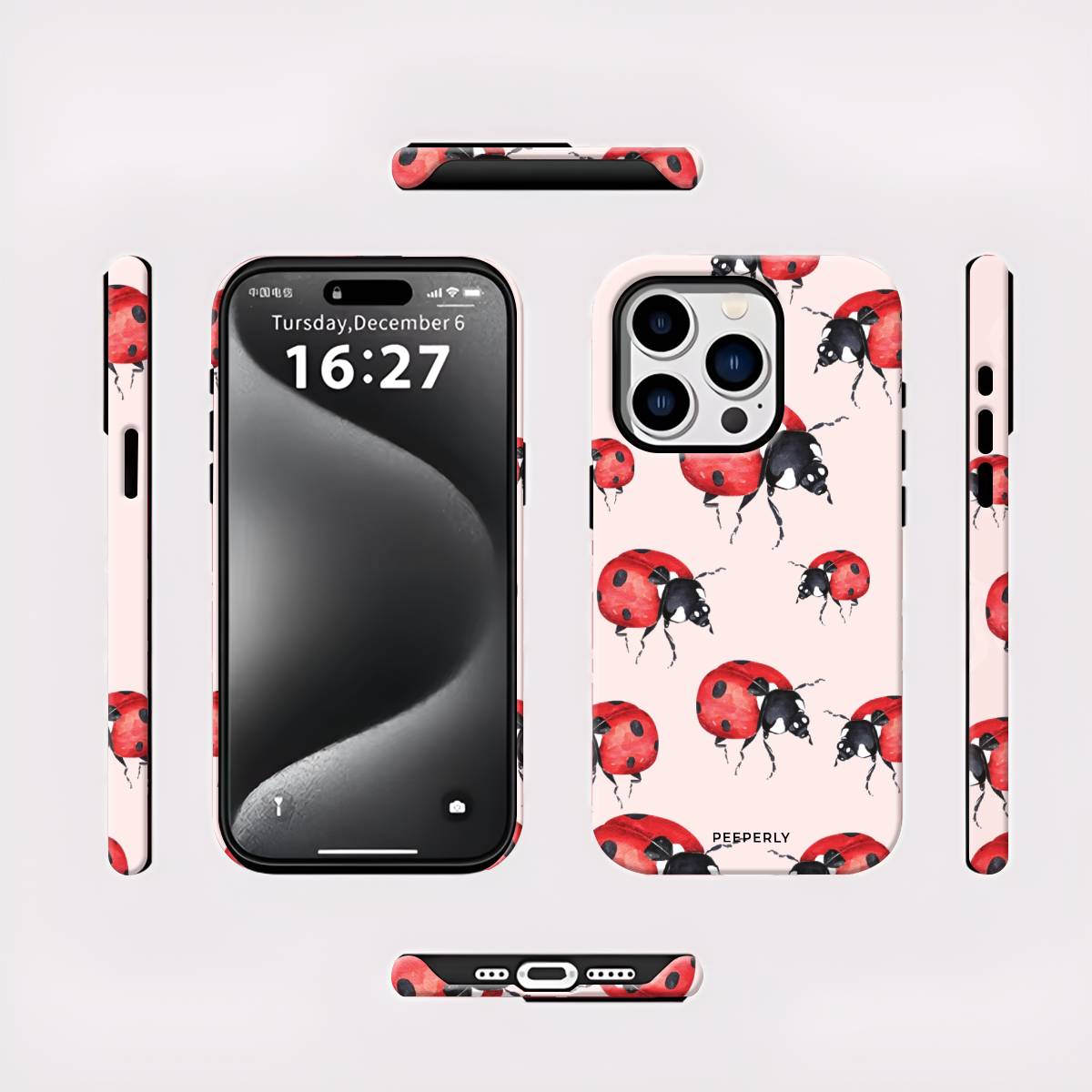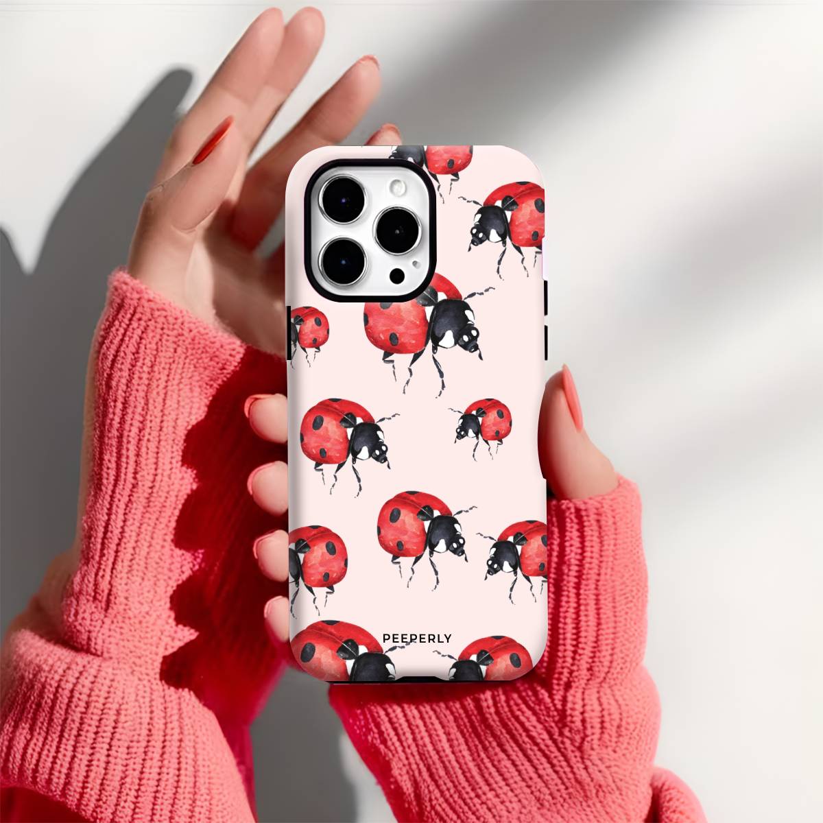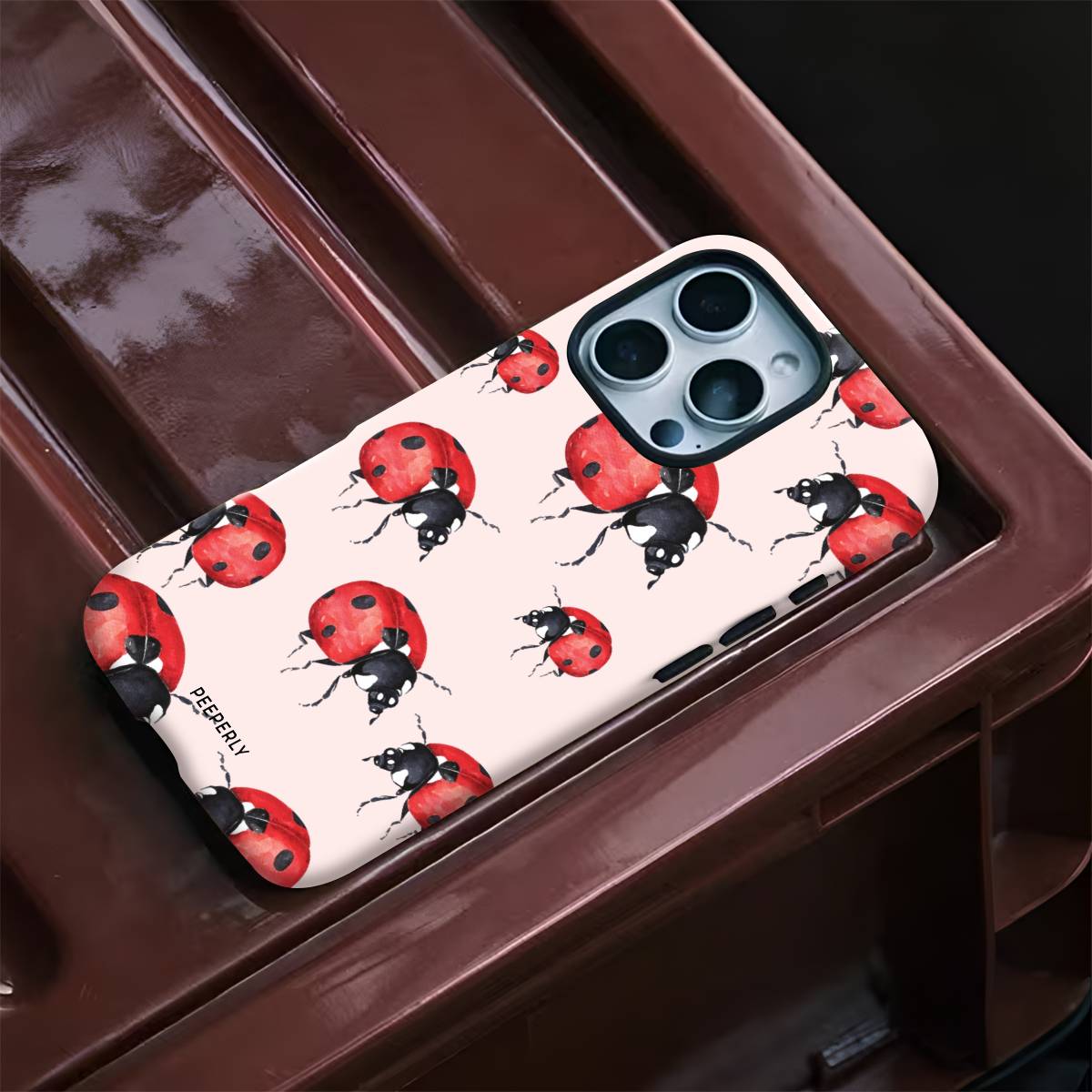 Playful, quirky, and irresistibly cute—Buggy Bites brings a touch of luck and charm to your everyday style. Featuring adorable ladybug motifs on a soft, soothing backdrop, this case celebrates nature’s tiniest love symbols with a fun, modern twist.