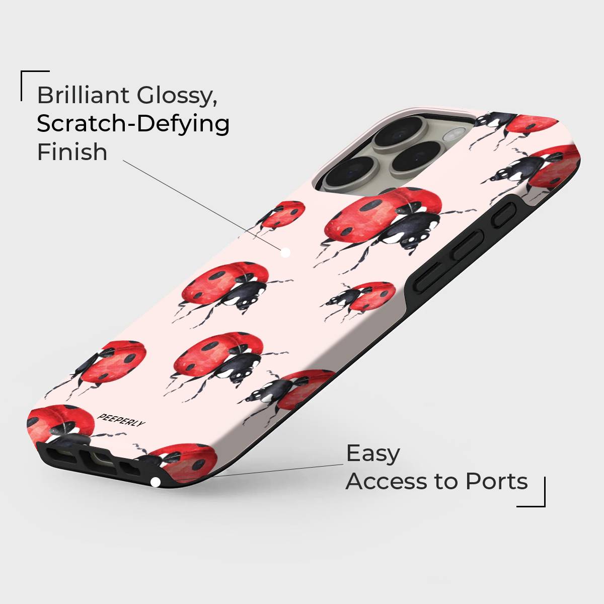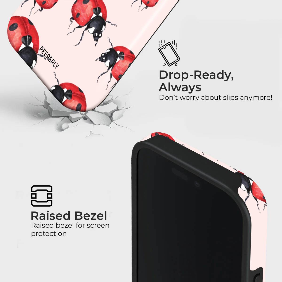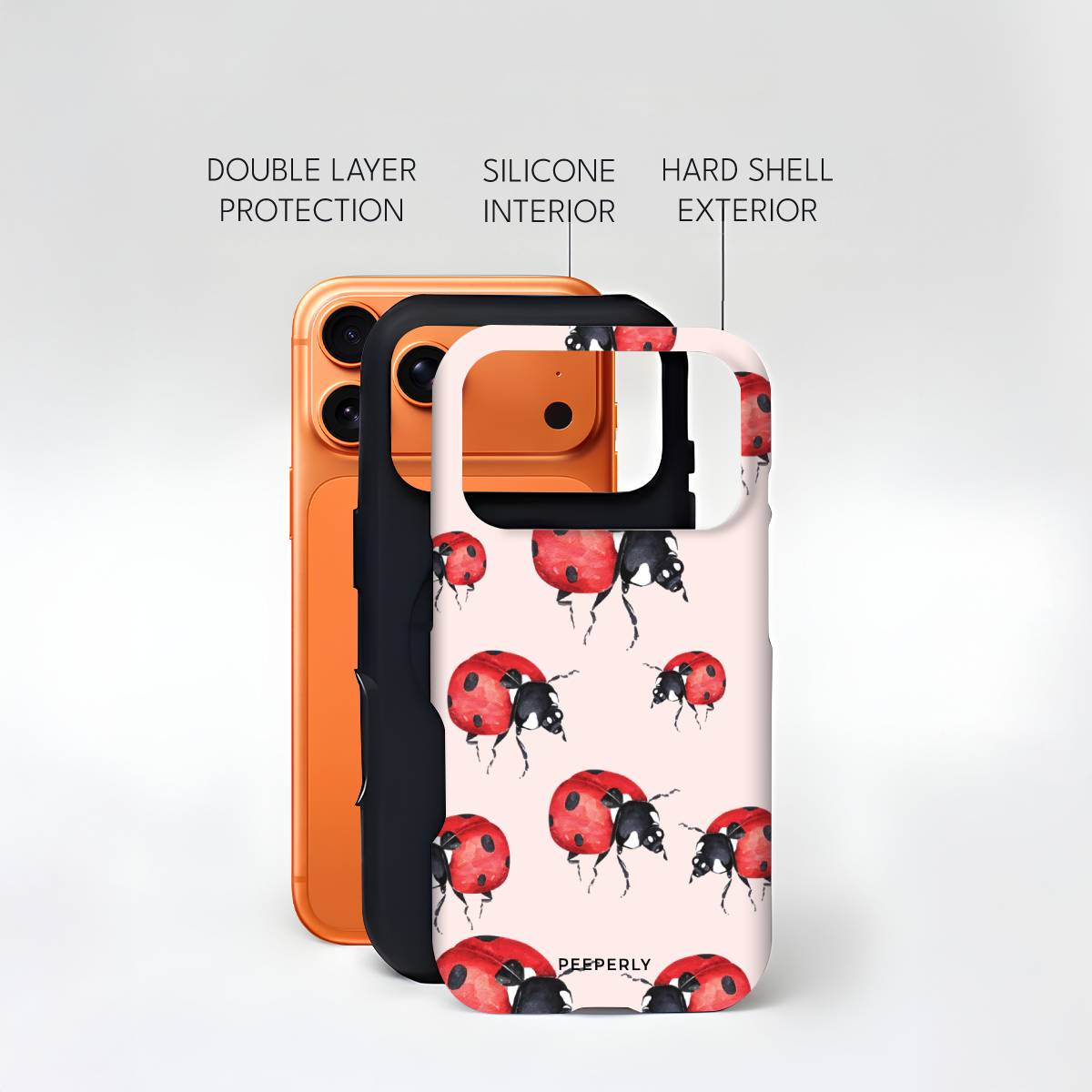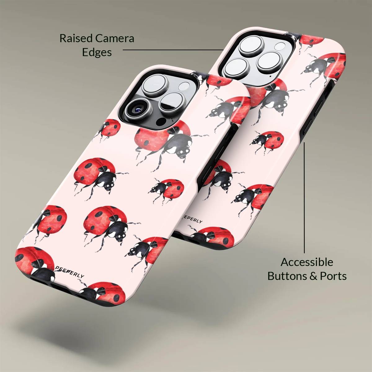 Playful, quirky, and irresistibly cute—Buggy Bites brings a touch of luck and charm to your everyday style. Featuring adorable ladybug motifs on a soft, soothing backdrop, this case celebrates nature’s tiniest love symbols with a fun, modern twist.
