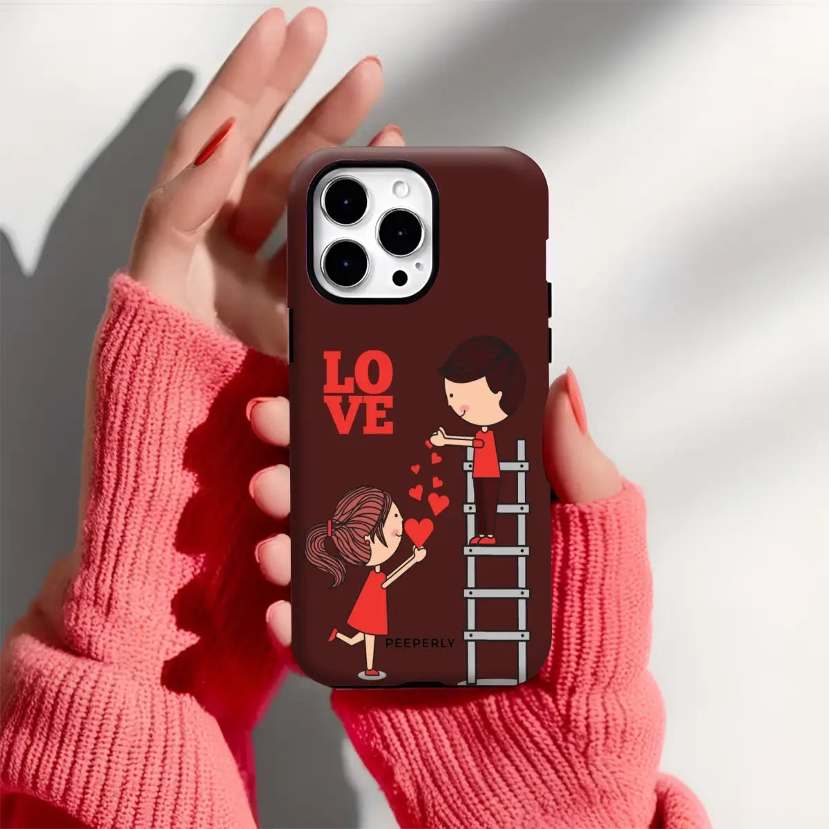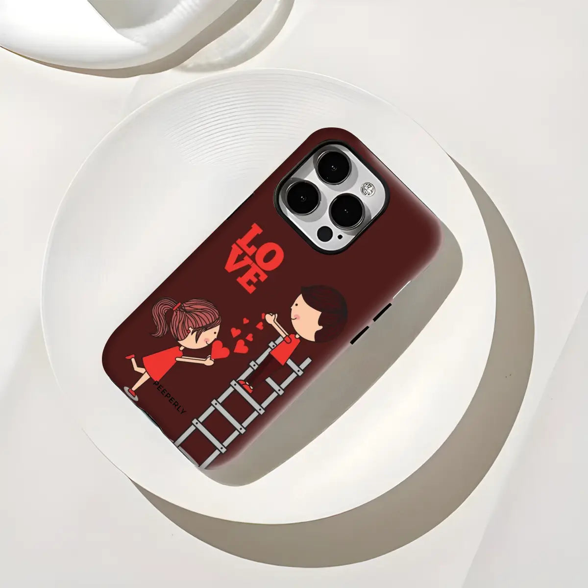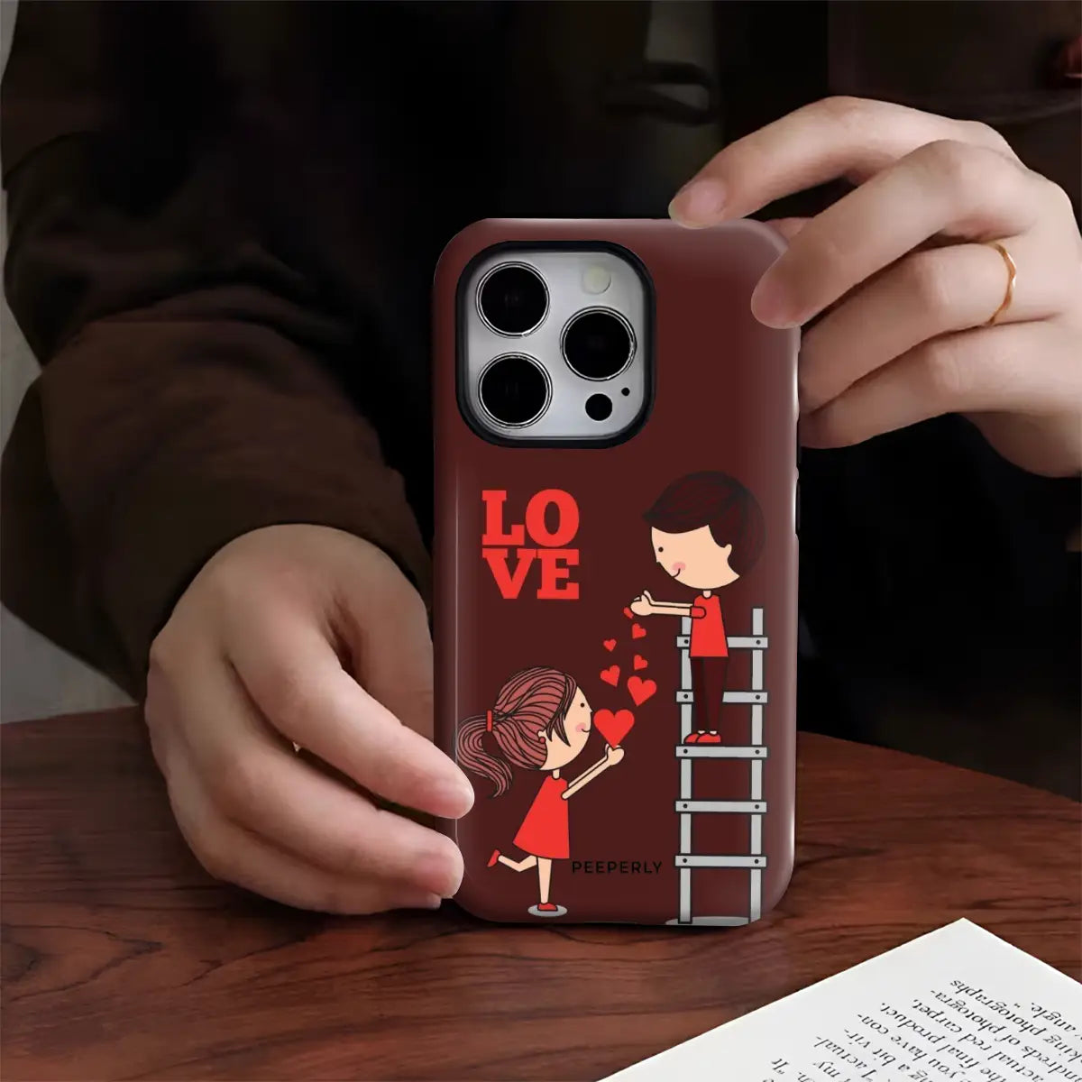 A charming illustration of two hearts meeting halfway, Ladder of Love captures the innocence of affection and the joy of giving. With playful characters exchanging floating hearts, this design symbolizes effort, connection, and love that grows step by step—sweet, simple, and full of warmth.