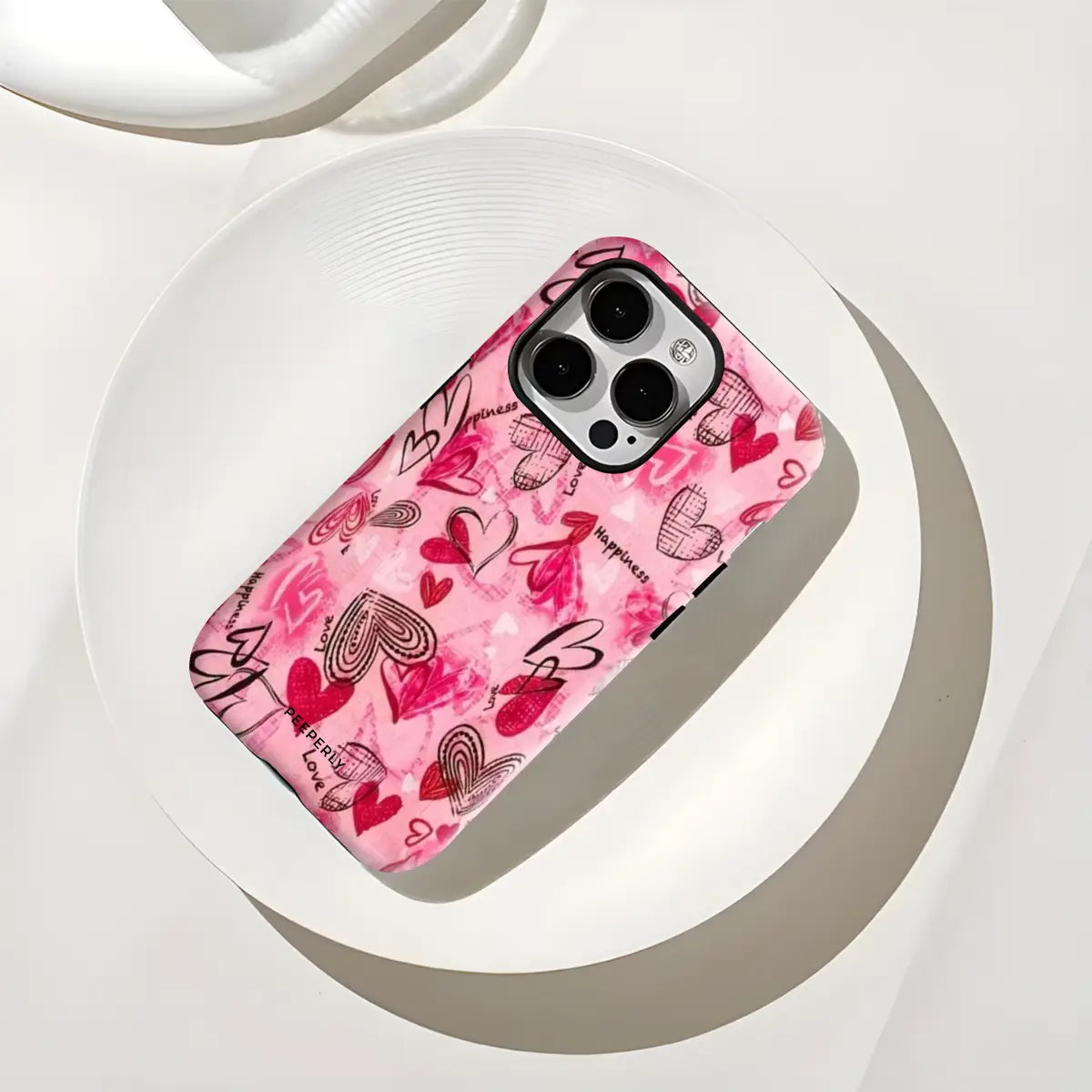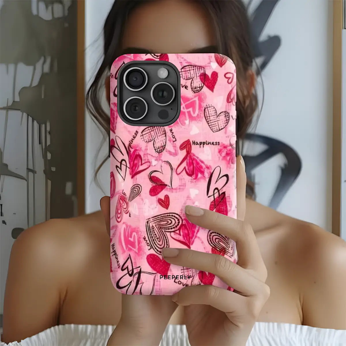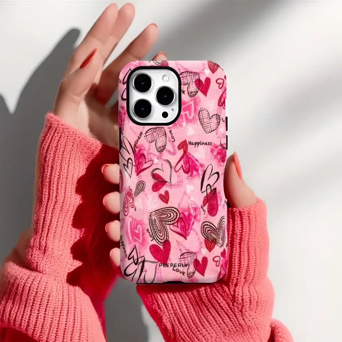 A playful collage of hand-drawn hearts, sweet words, and blush-pink textures that feels spontaneous and full of emotion. This design captures the joy of messy love notes, doodled feelings, and carefree romance—perfect for hearts that like to show their soft, expressive side.