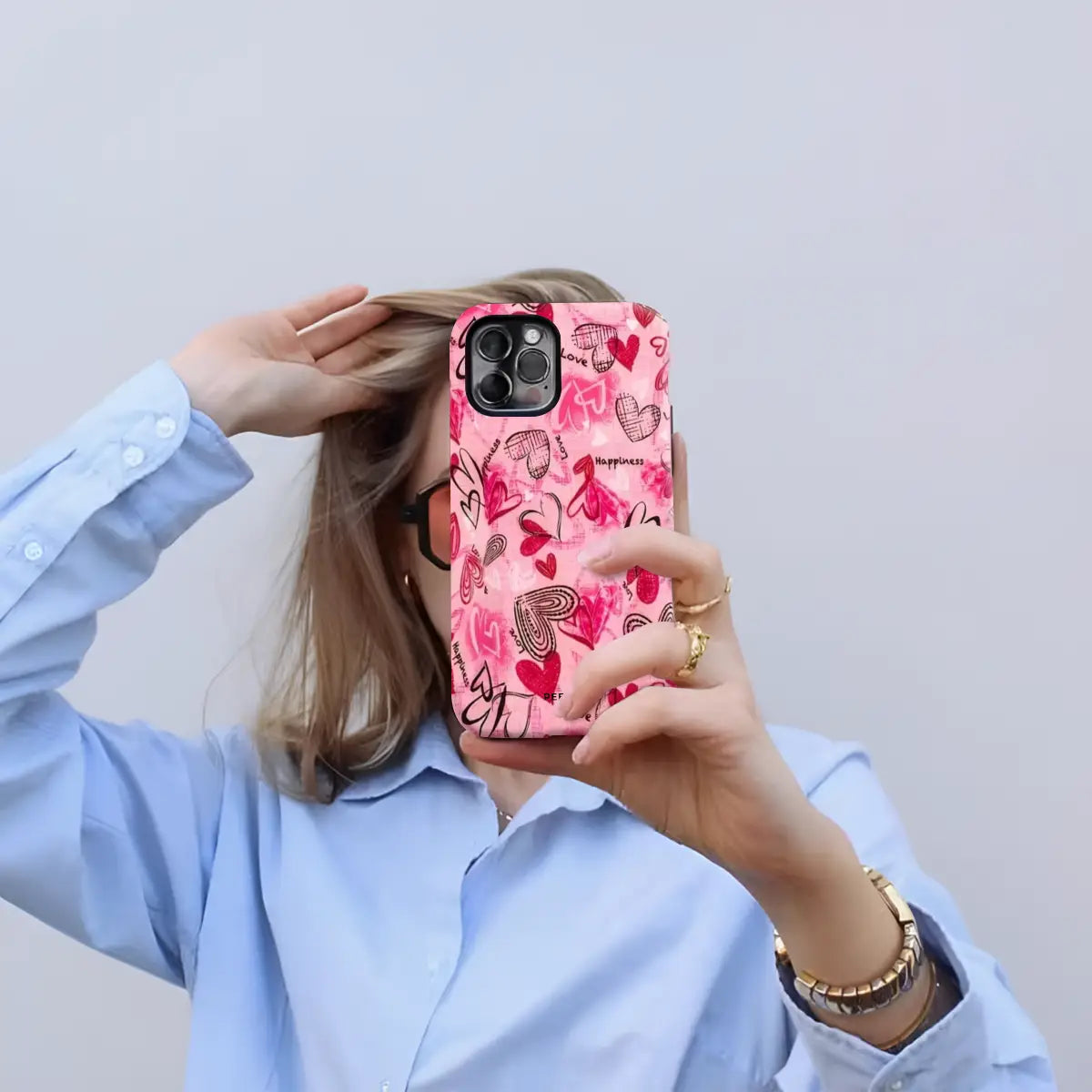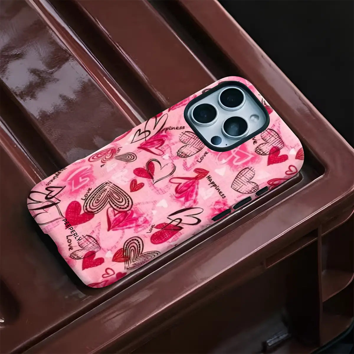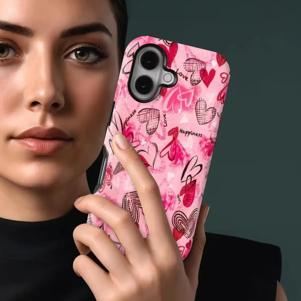A playful collage of hand-drawn hearts, sweet words, and blush-pink textures that feels spontaneous and full of emotion. This design captures the joy of messy love notes, doodled feelings, and carefree romance—perfect for hearts that like to show their soft, expressive side.