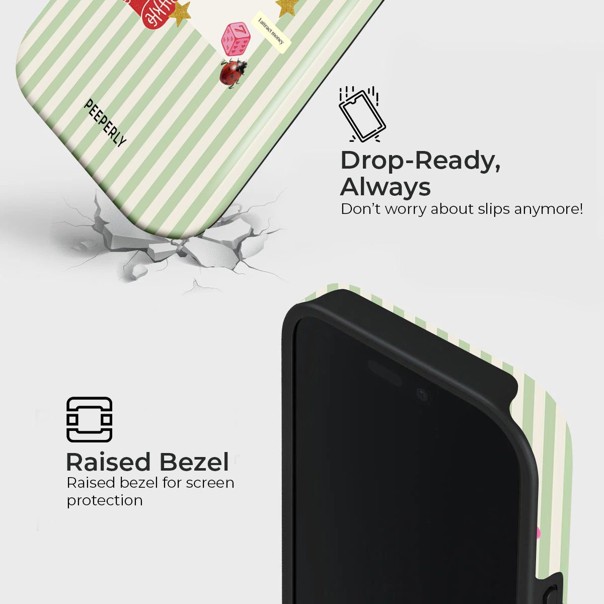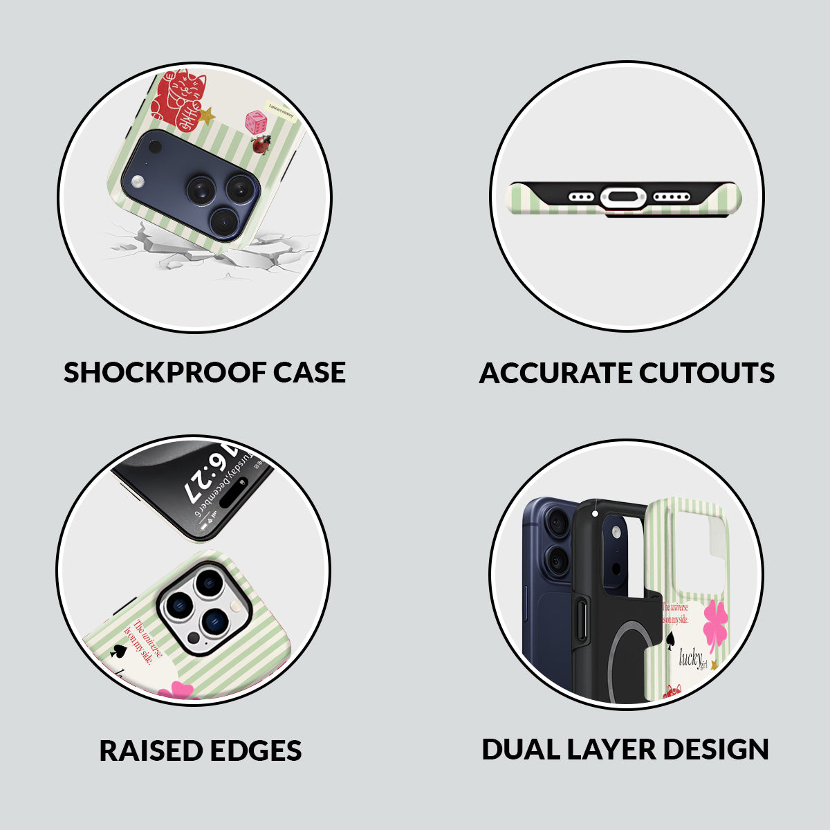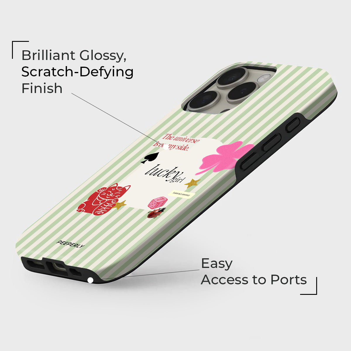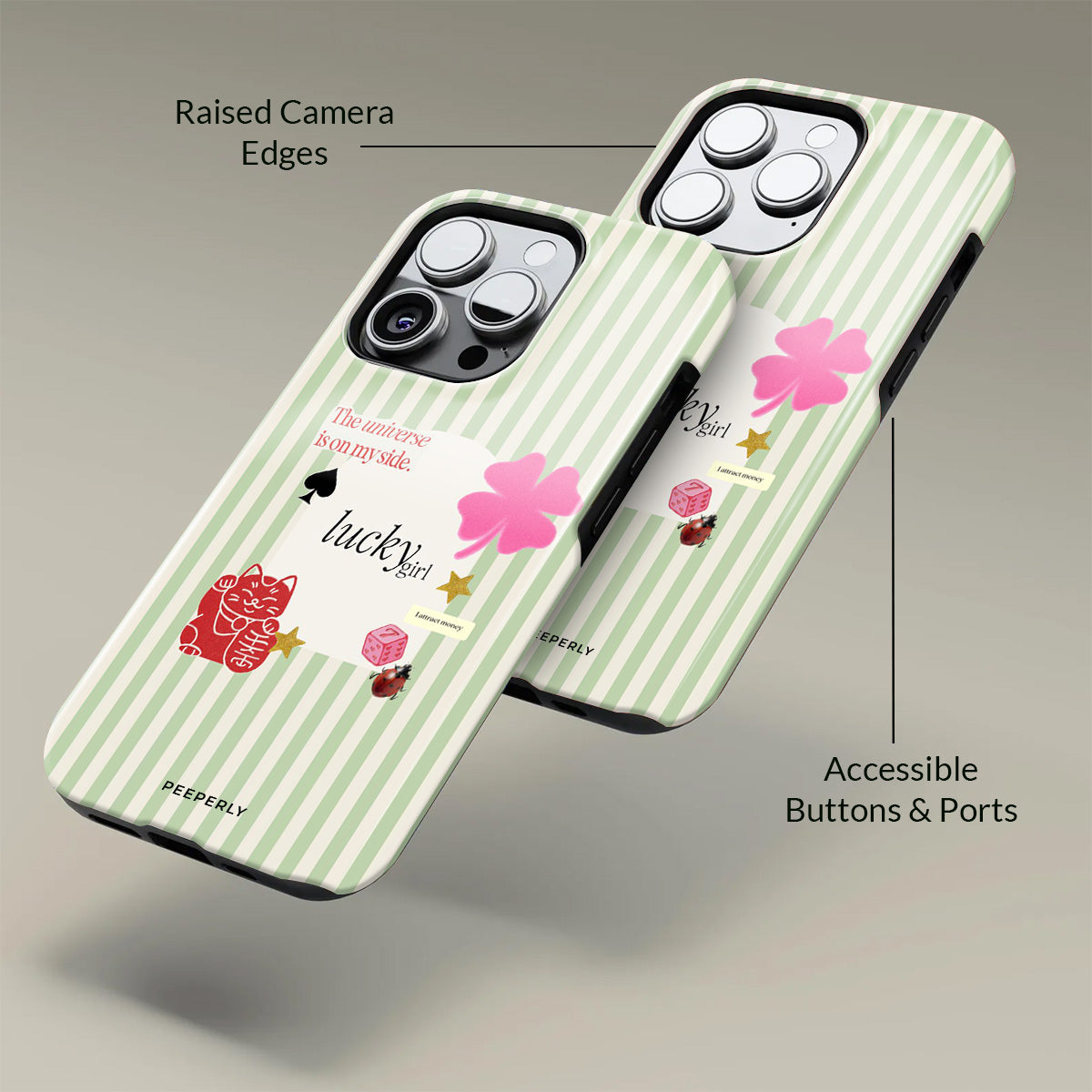 A charming blend of soft stripes and playful symbols that celebrate everyday luck. From clovers to lucky icons, this design is all about small joys, positive signs, and feel-good moments—perfect for carrying a little fortune with you wherever you go.