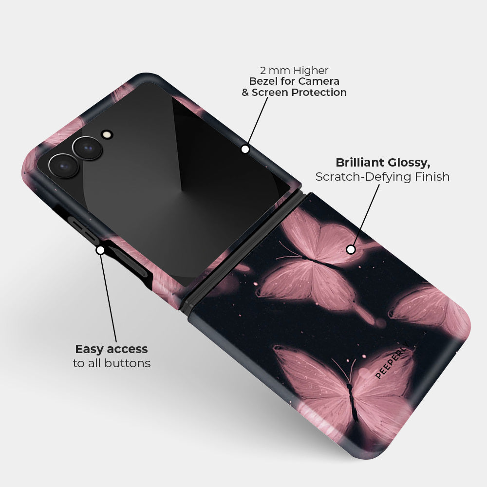 Moonlit Butterflies is a sleek, elegant phone case featuring soft blush butterflies drifting across a deep, midnight background. The contrast of delicate wings against dark tones creates a dreamy, almost celestial feel.